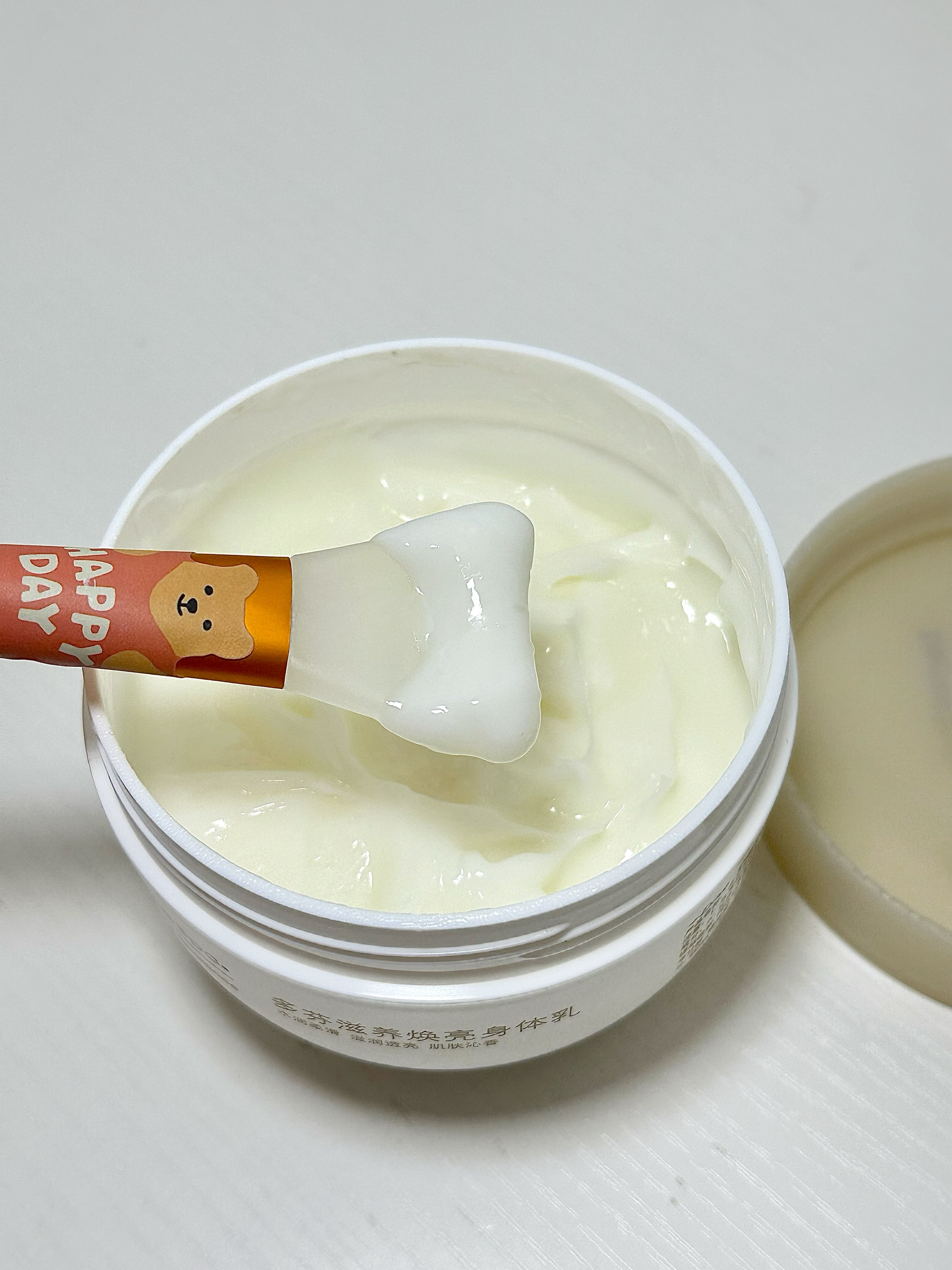 用了将近一半才敢来给你们分享✋ 它是轻薄的乳霜质地 很好推开 比较滋润的那种🧚🏻♀️ 但一点也不会粘腻 吸收蛮快的✅ - 我洗完澡涂抹完全身🛀 感觉皮肤又嫩又滑 整个房间都是甜甜的奶香味 真的hin治愈💞 - 配方也很温和 添加了沙棘果油🫘和亲肤的植物油🧴 保湿力度在线 沙漠大干皮也可以放心使用👋 300ml大容量 便宜大碗 所见即所得嗷🤗
