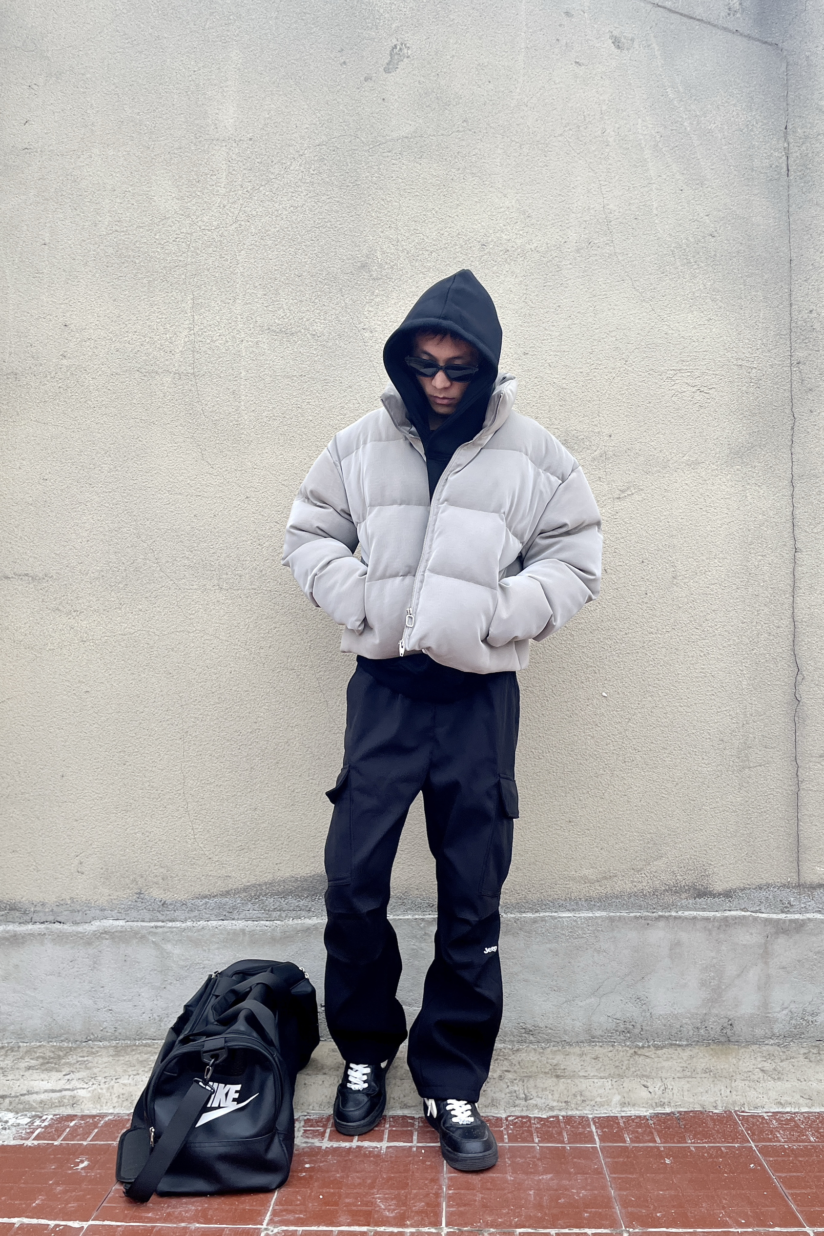 今天上衣内搭一款黑色短款卫衣, 外套选择了一件灰色麂皮感短款羽绒服。 裤子选择了JEEP的一条黑色加绒加厚款的 山系户外伞兵裤, 宽松的版型,堆积感的设计, 上身效果非常棒,质感也是非常好, 很百搭且性价比真的很高, 整体搭配比较能凸显身高比例 喜欢的兄弟们可以冲起来了