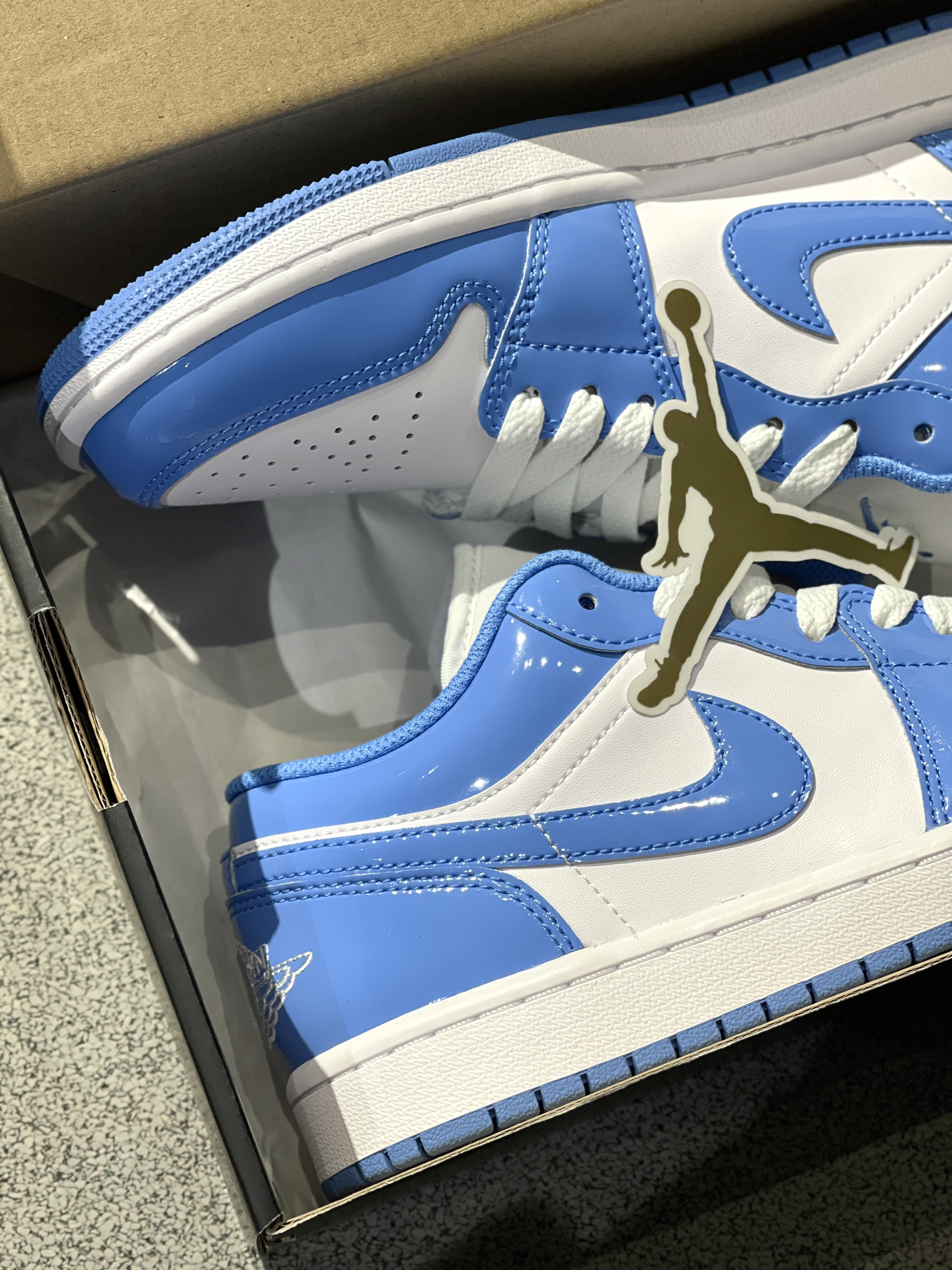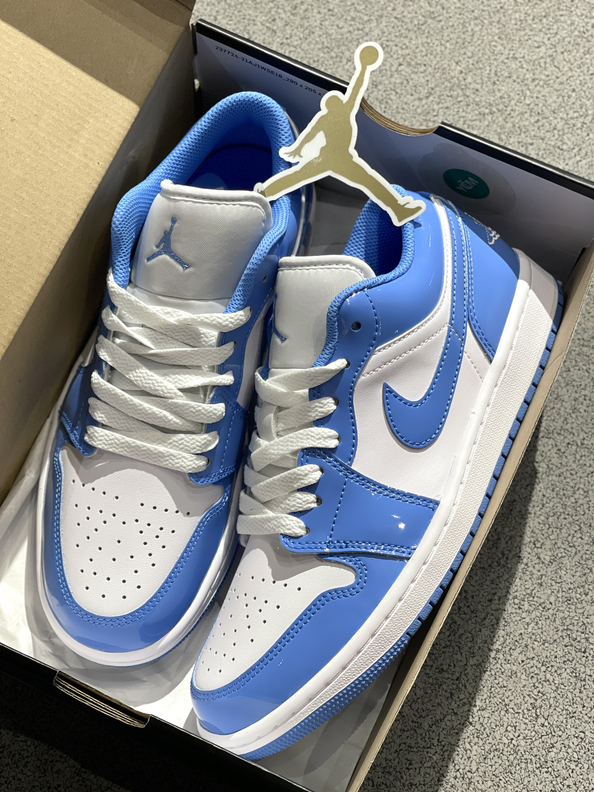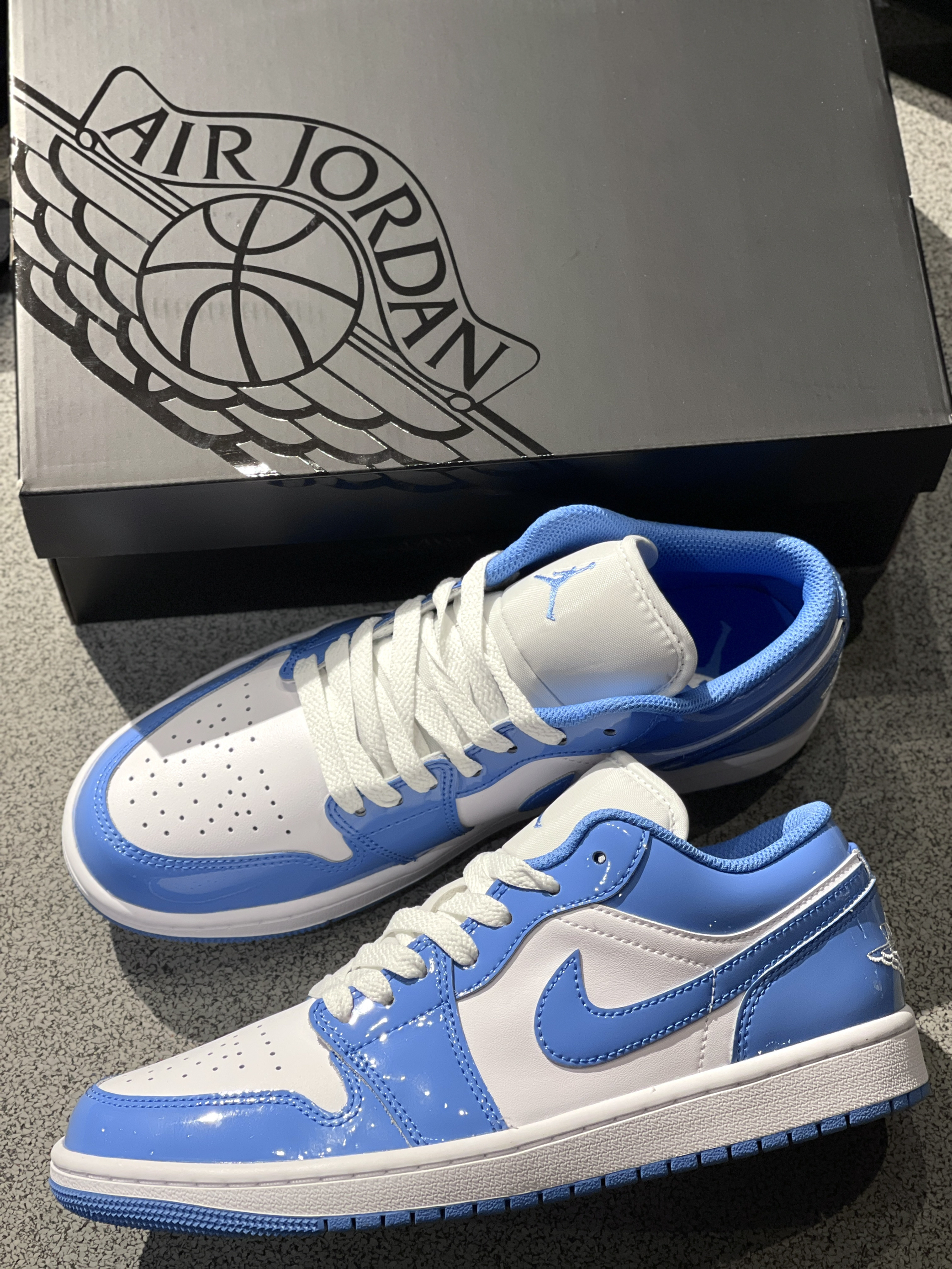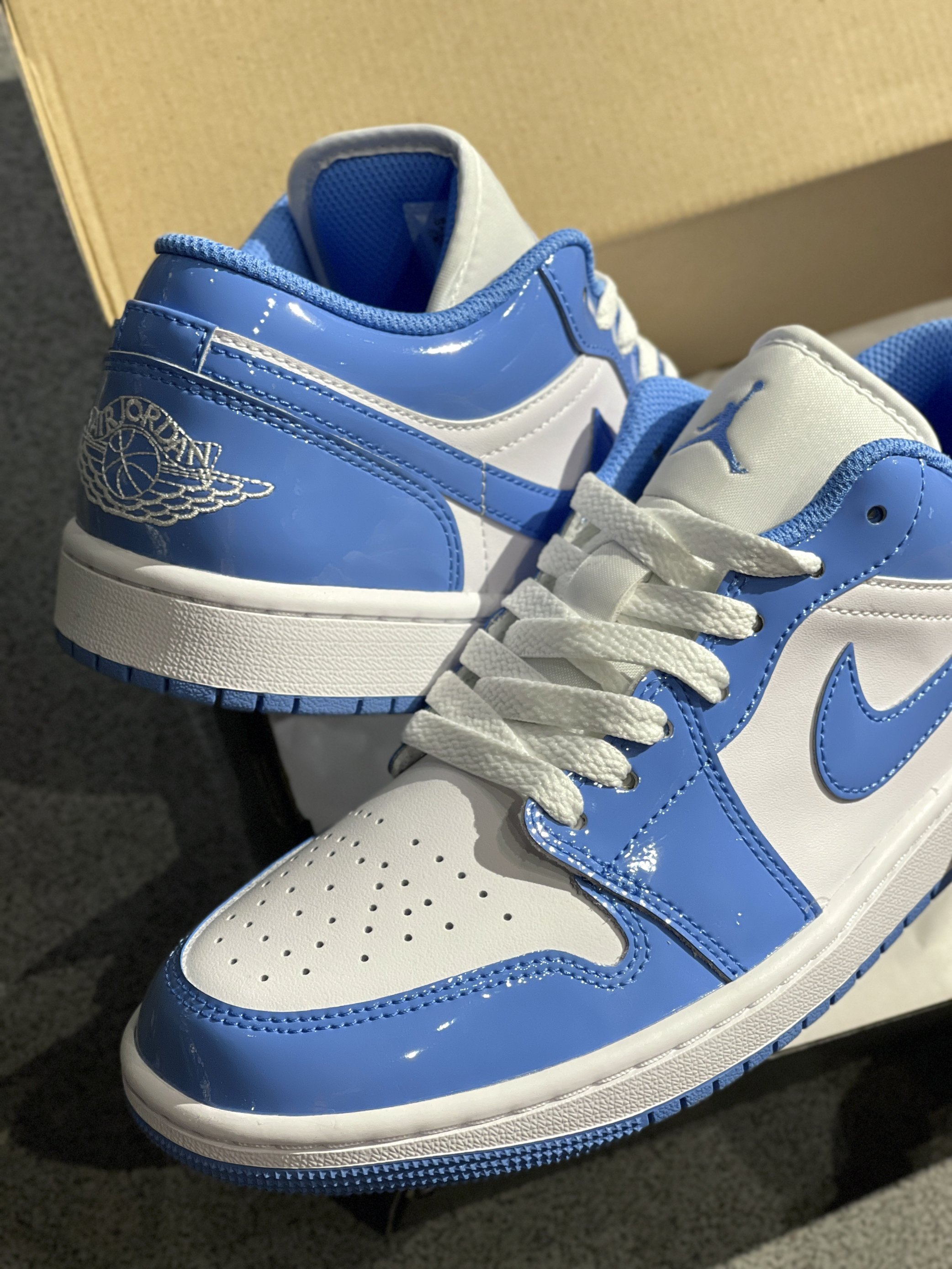自穿党的福利期!放以前哪敢想呀!🤪 Jordan|Air Jordan 1 Low "Legend Blue" 复古篮球鞋“蓝色”🌊,开箱是熟悉的那抹蓝色!经典的aj1低帮鞋型,只不过皮质有所不同,一言难尽的漆皮!穿起来嘎嘎帅,可以说是性价比拉满~😍
