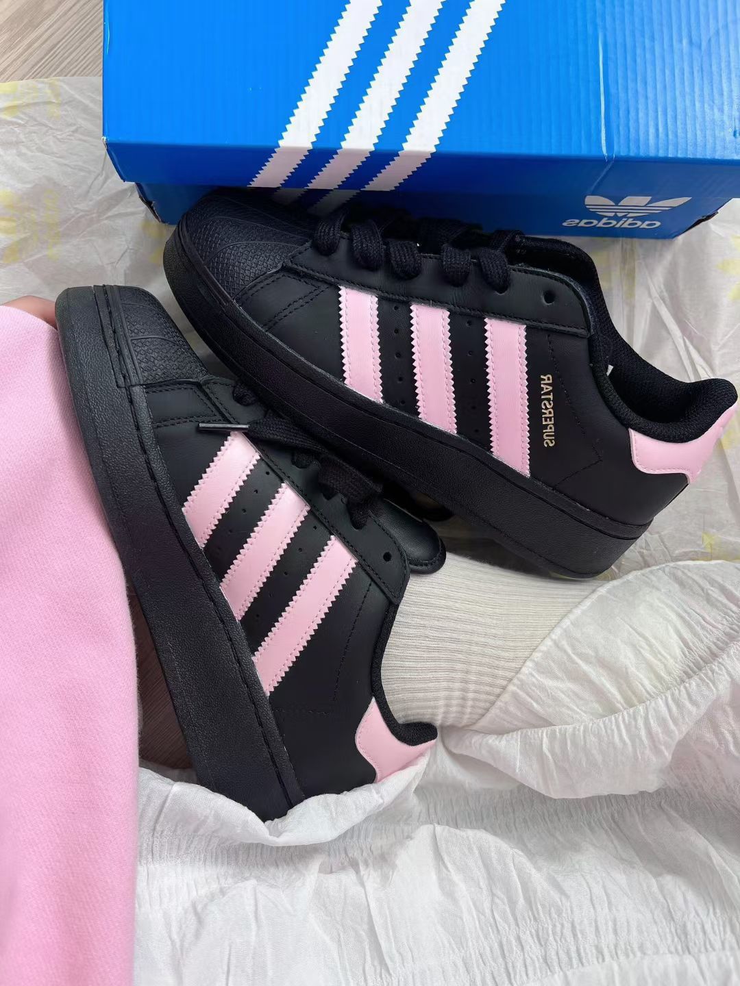 本篇笔记关联了【定制球鞋】 adidas Originals Superstar 板鞋 防踢减震防滑耐磨百搭潮流时尚合成革贝壳头 大童/薄雾派对等商品,为用户提供真实的使用体验和购买参考。