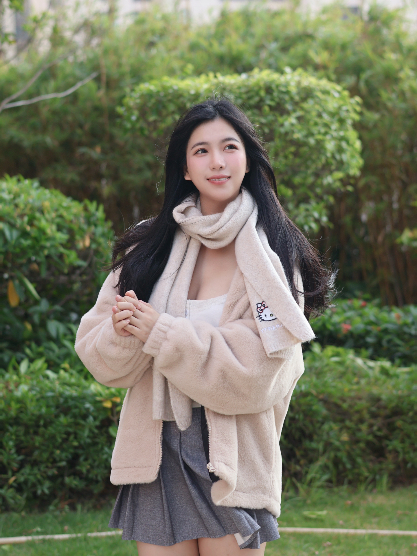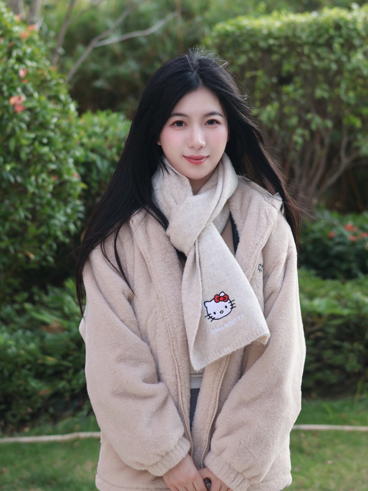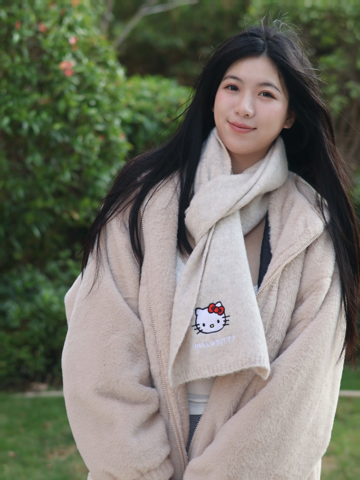 米黄色国巾碰上Hello Kitty又韩又可爱 软糯糯的保暖亲肤!带上很减龄 这个冬天有三丽鸥kitty 围巾温暖我 太幸福啦~