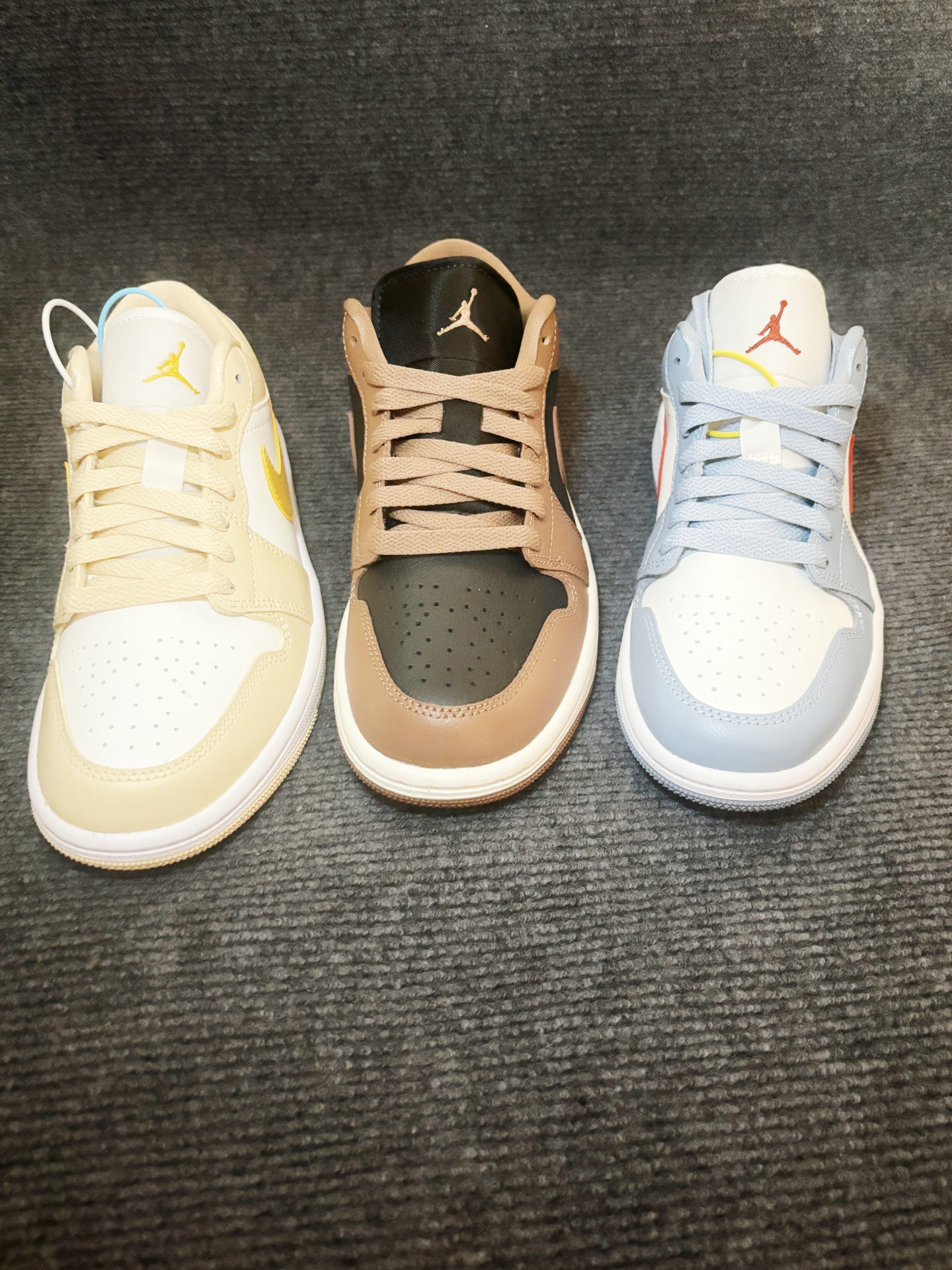 AJ1 蓝白配色 米黄配色 棕色配色 这三款都属于不容易撞鞋的小众款☁️ 价格方面也十分感人 500以内的预算就能买入🔥 脚感偏硬,搭配起来非常的百搭 但也有好的搭配✨ 更能显示出魅力 #性价比AJ1分享 #高性价比AJ分享 #好物分享平价AJ #板鞋才是万金油 #超百搭复古板鞋 #分享神仙运动板鞋休闲鞋 #今夏实战鞋天花板