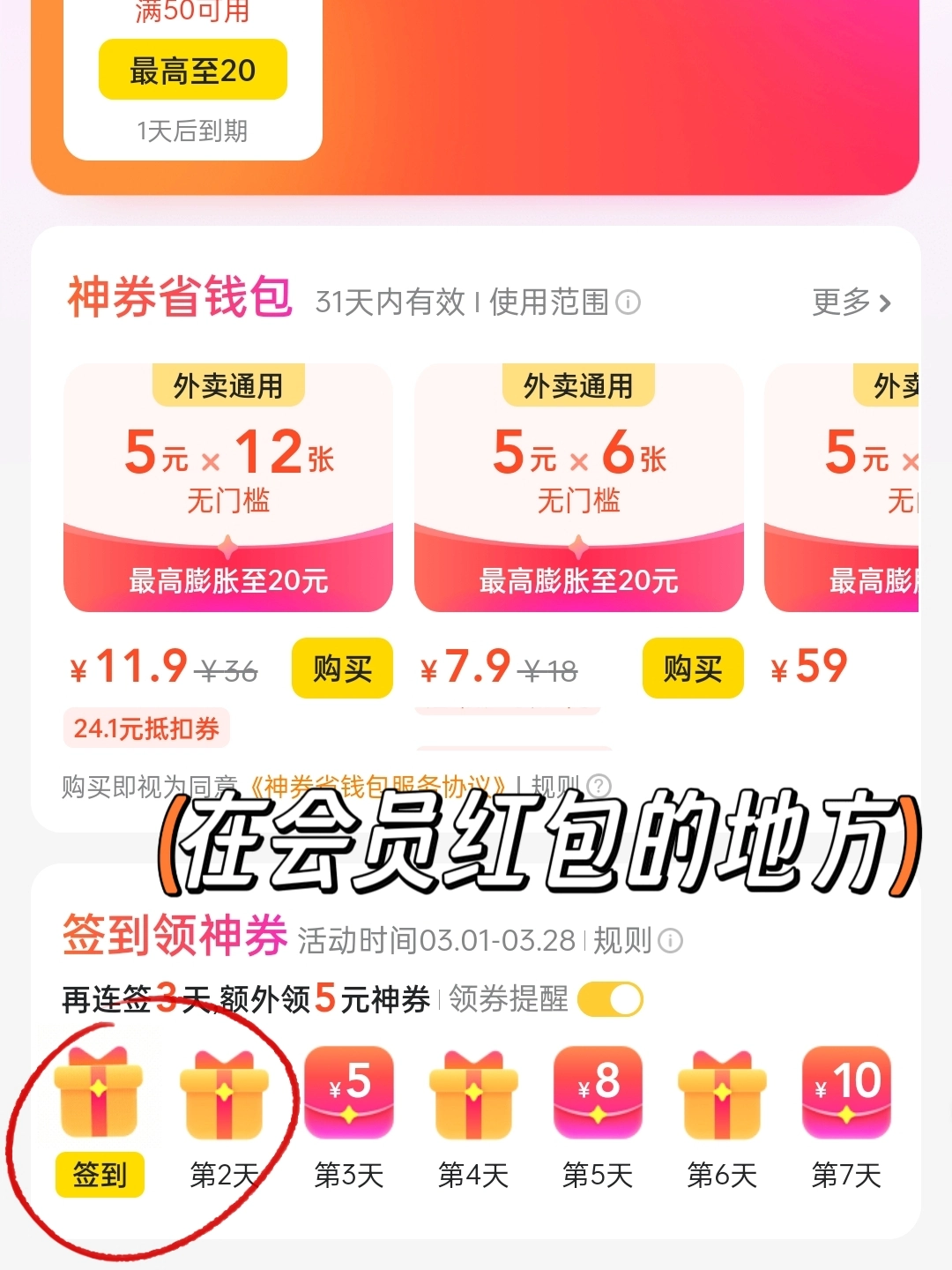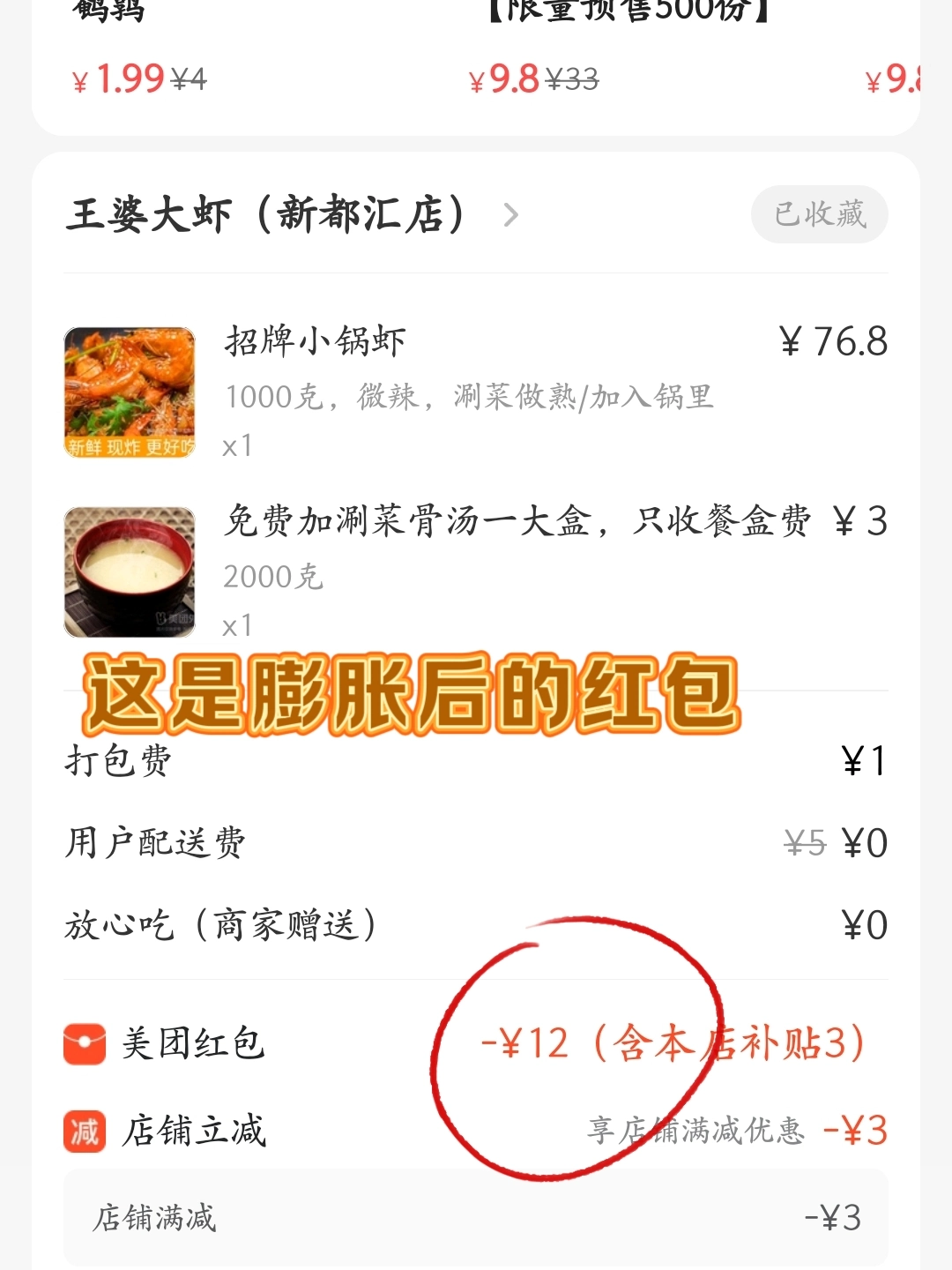 #是谁还在原价吃喝 美团外卖里面的膨胀红包你会用了吗? 😌首页有一个会员,点进去可以每日签到,签到的红包也是很多的哦! 😋在买东西的时候还可以选择膨胀专区 这样五块钱的红包就可以膨胀到更多了 😍比如我今天点的王婆大虾最后便宜了12元呢 图源网络,侵删!
