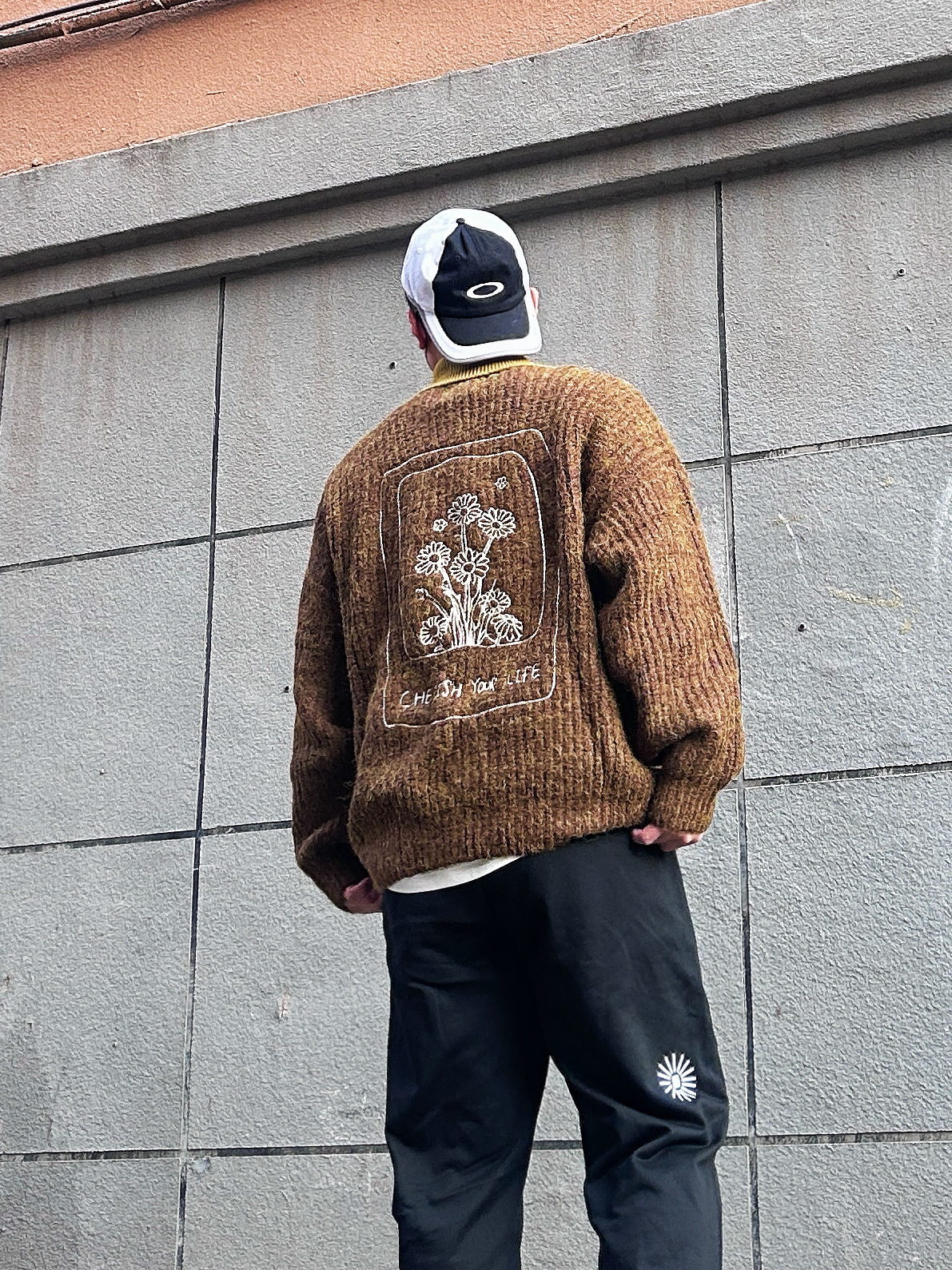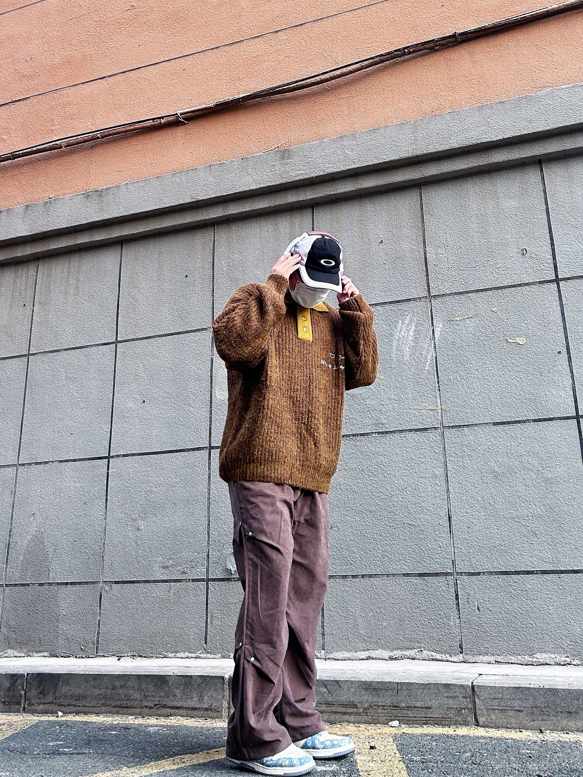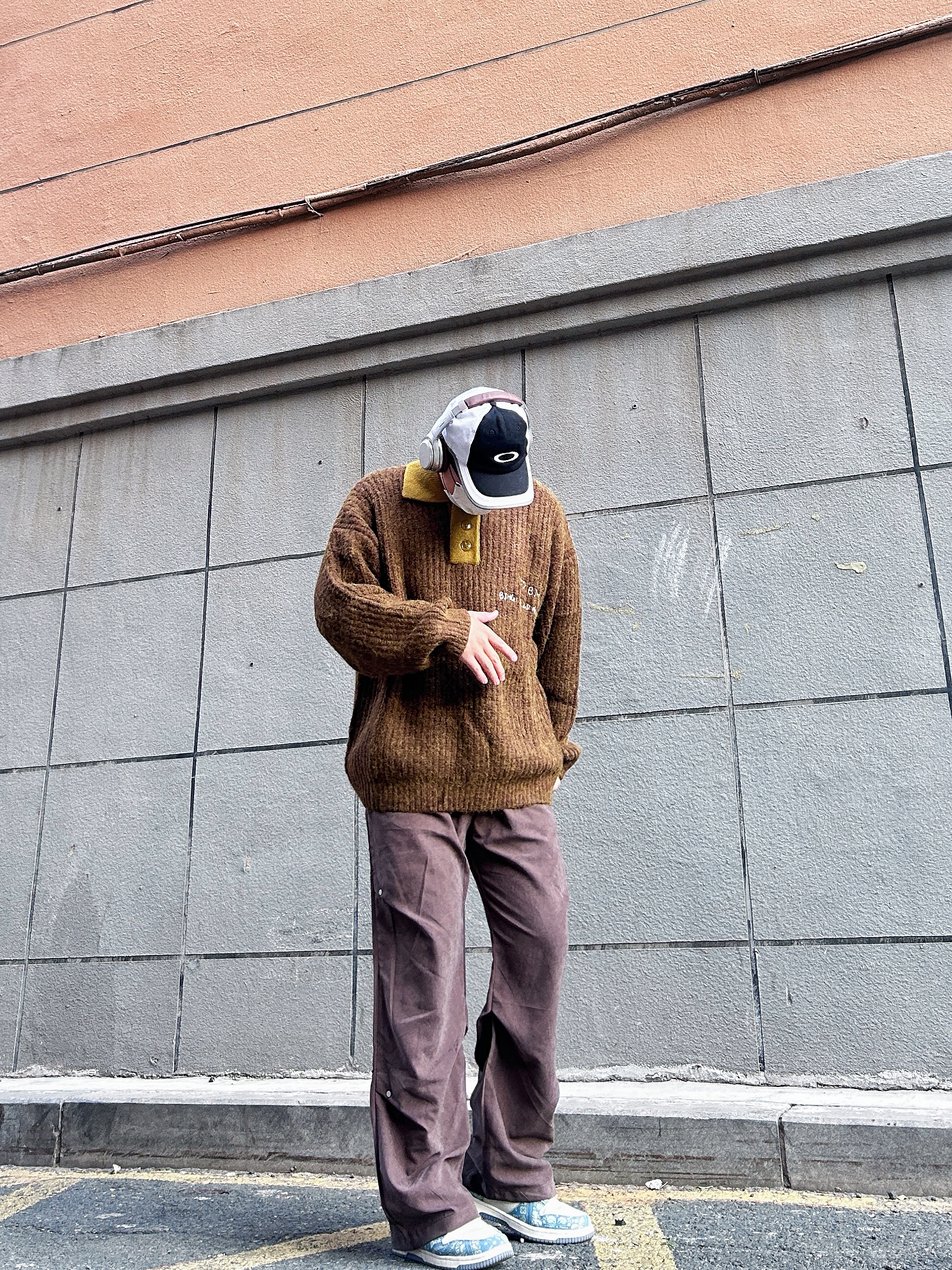 有种学院风的感觉 BJHG 178/80 上身L码 咖色的针织夹克外套 - 整体毛线针织的很柔软 穿起来很舒服,不扎身子 而且还是衬衫的领口设计,显得很有学院风 背后还有一个Logo的印花设计 出门搭配一条伞兵🪂工装裤 美式的学院风穿搭感 - 上脚一双腰果花的板鞋 可以给整体的穿搭增加沉淀感 出门通勤都可以穿 女生也可以选择小码 男女情侣同款噢 学生党的性价比推荐