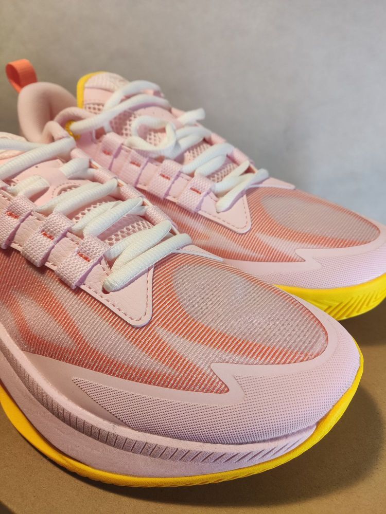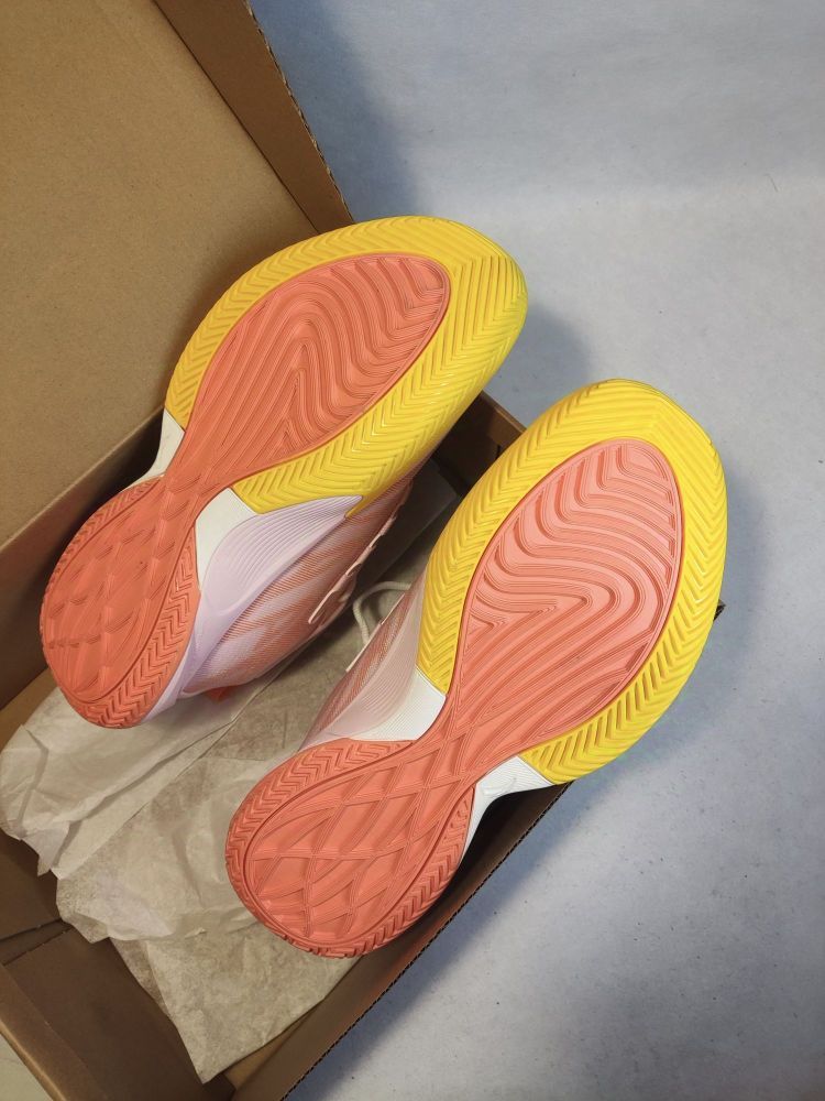 👀TD版本跟普版外观上颜值上还是很像的,水蜜桃配色还是很骚气的。 👟鞋面梭织织物加上热熔加强,鞋面强度和包裹还是不错。 👟中底减配,脚感没有瞬息一代那么弹,而且缓震极限也不高。🤔 👟鞋底纹路类似瞬息一代,防滑不错,耐磨不算差,还行。 👟中底内置了抗扭片,抗扭非常不错💪🏻 👟尺码正常,宽脚要试穿或选大半码到一码 💰二开性价比还可以。 👬总结,一双适合轻体重后卫、学生党的入门团队鞋。