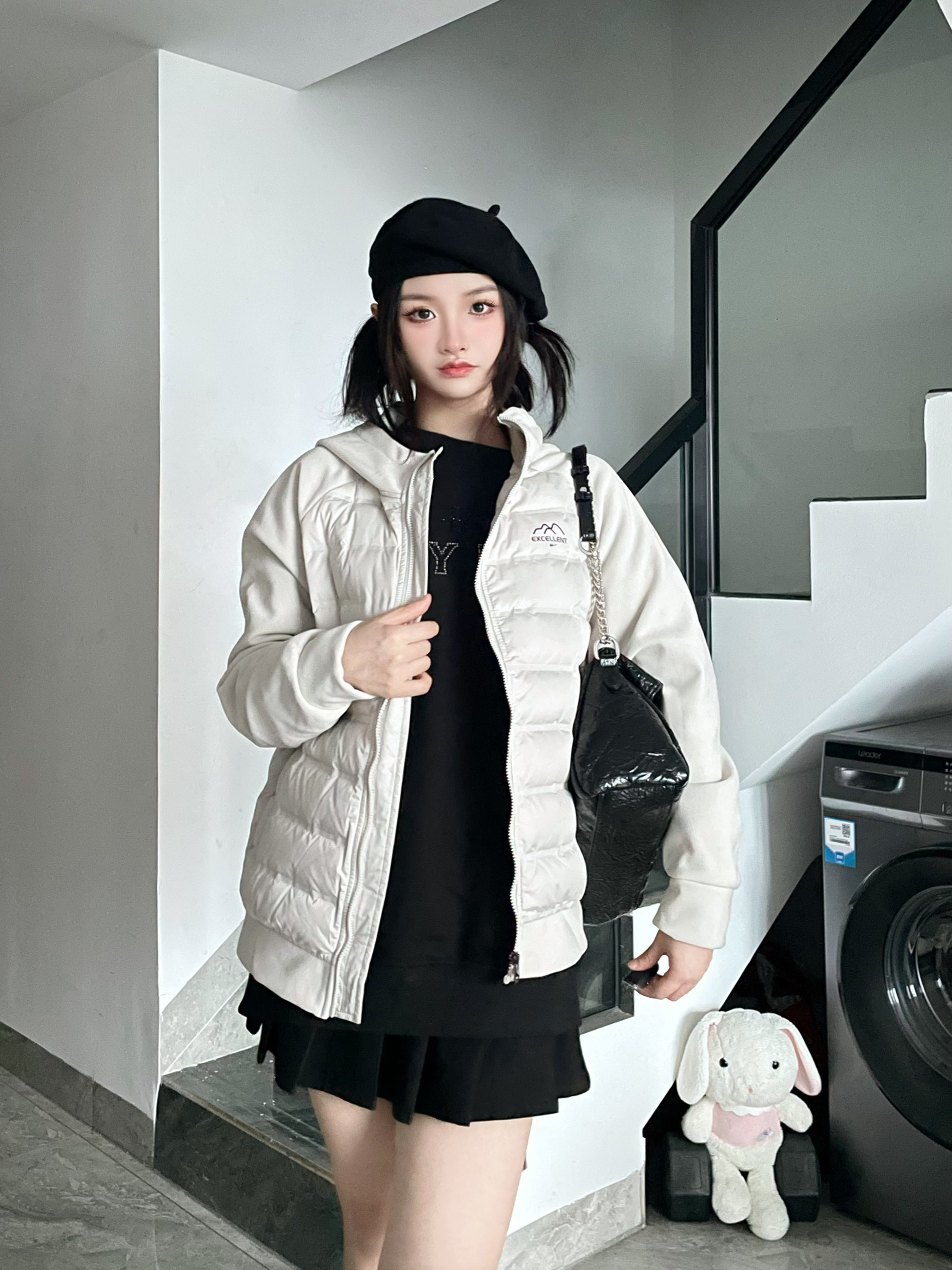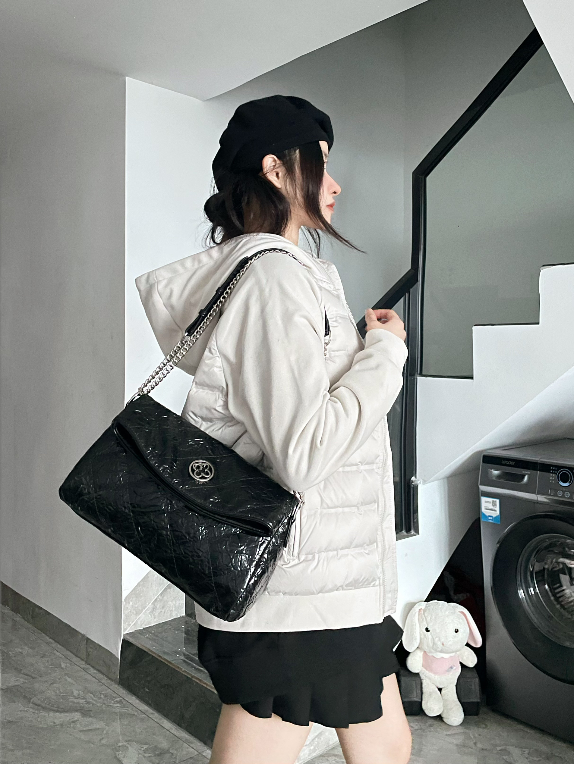 一套简简单单的黑白配色Look 薄绒羽绒服上身好轻便👀 搭一身黑色内搭干干净净滴 背上个实用的百搭链条包⛓️ 甜酷女孩不费力出街噜!