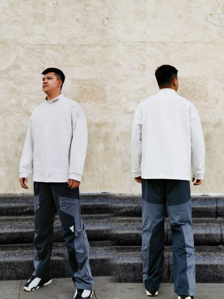 鞋子:Nike AJ 13 熊猫 外套:adidas P JKT6 GALI 拒水防泼夹克 卫衣:adidas 套头立领卫衣 裤子:adidas FUSTL P WV PT4工装裤