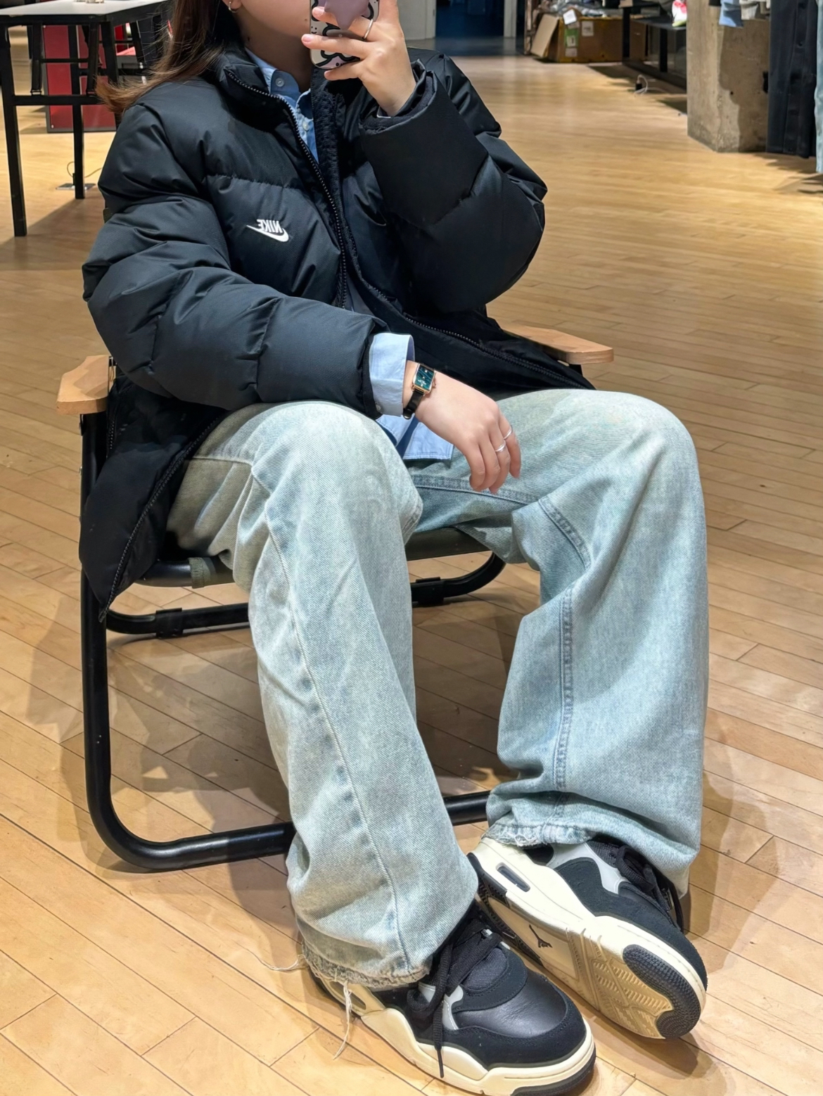 这双AJ4有很多AJ4的特征都没有这个配色还是蛮好看的很百搭鞋子的质感很不错 鞋内填充很足穿着包裹性好穿着脚感很舒适比较适合秋冬鞋子不偏码