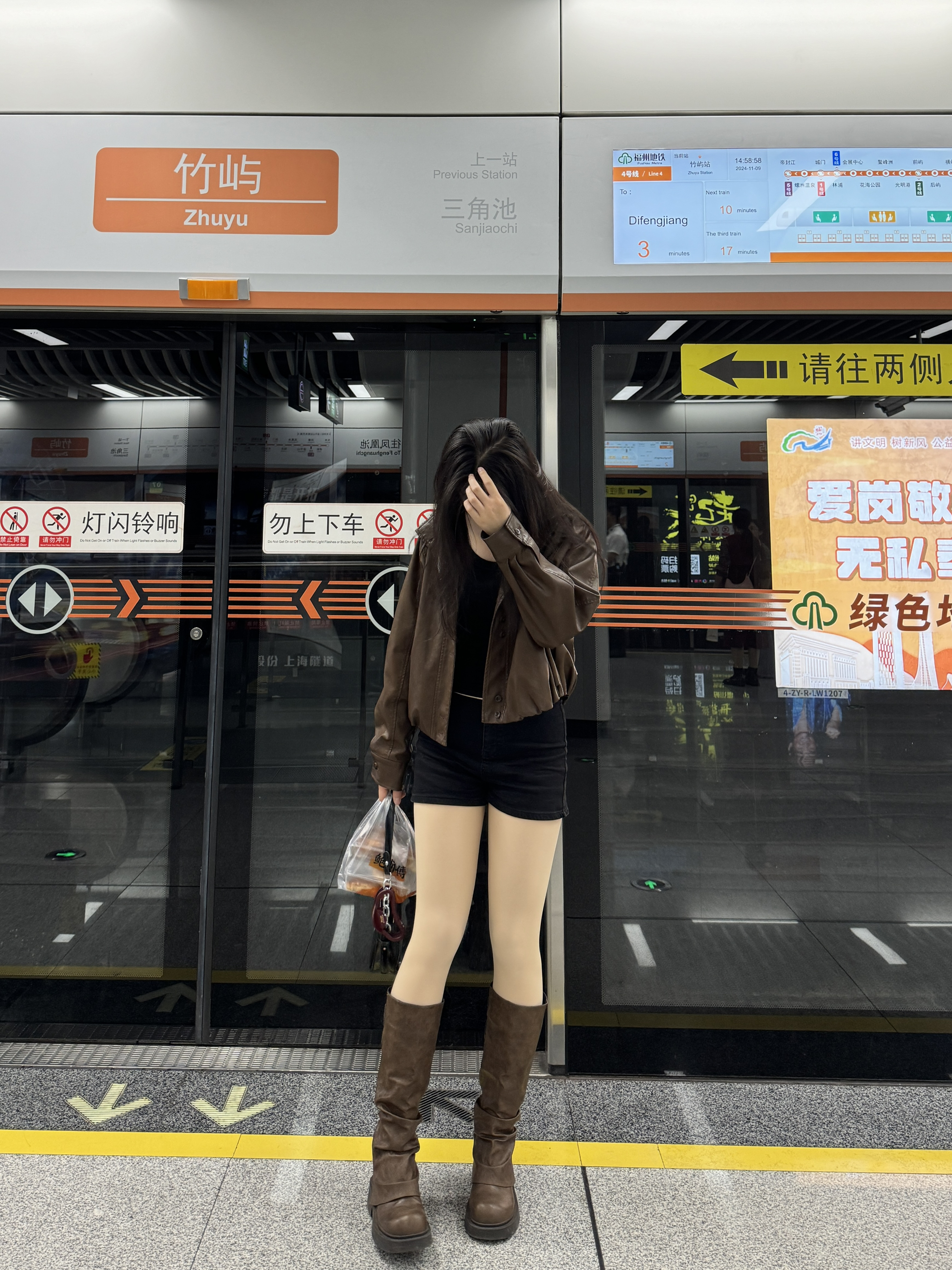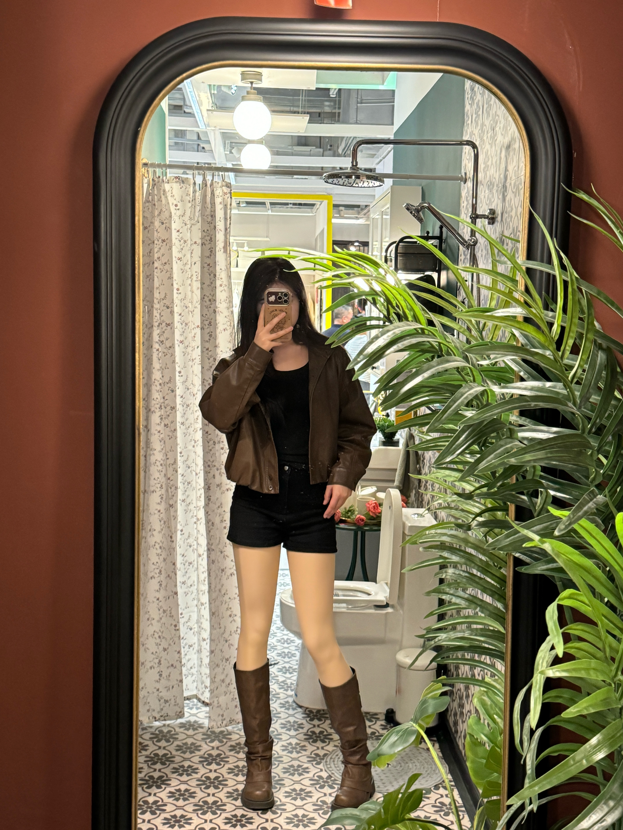 皮衣配长靴 真的太适合秋冬天啦 美拉德配色和秋天依然超绝配! 再穿一条加绒的光腿神器 不得不说 一点也不冷呀🥶