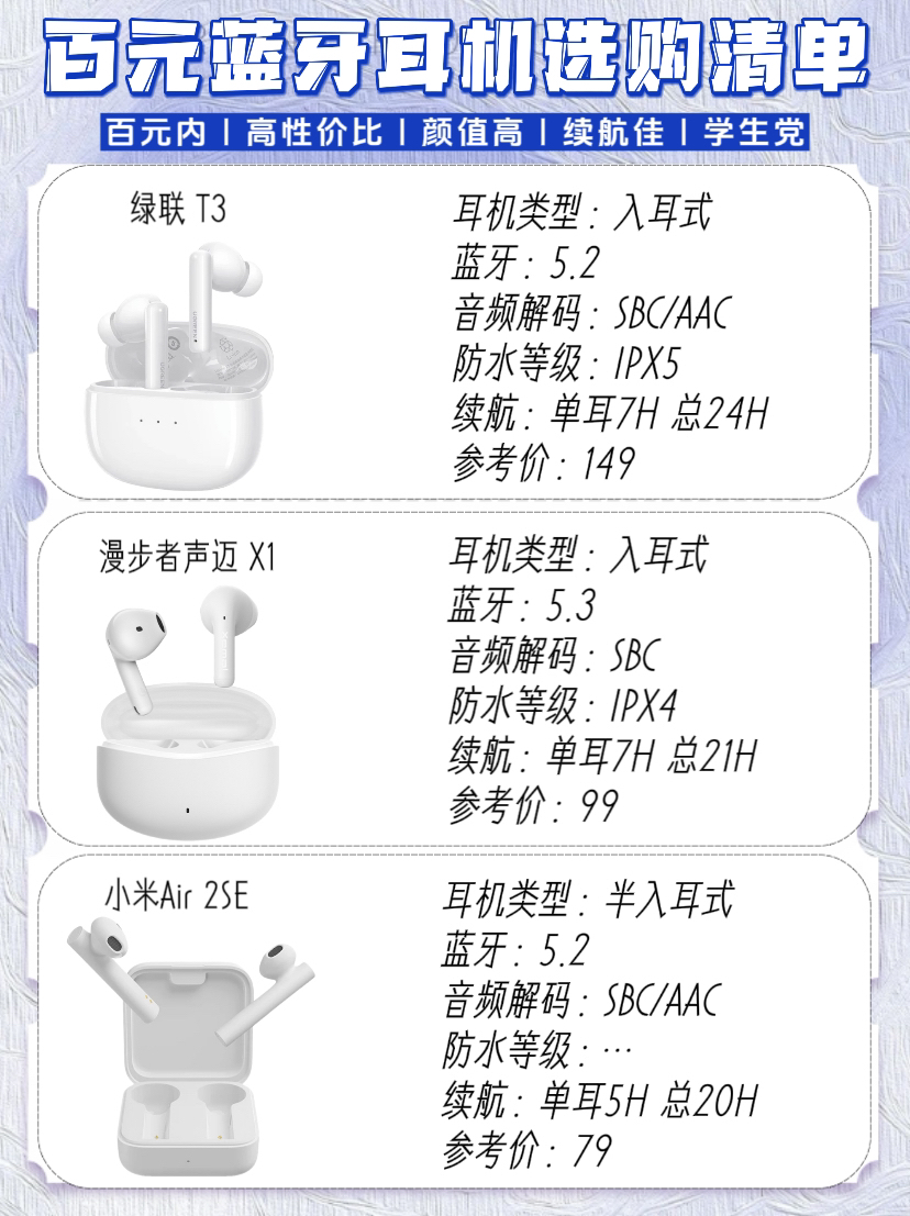 🎧本期给大家分享9款百元价位段的蓝牙耳机! 🎧性价比拉满了。 🎧特别适合学生党入手!
