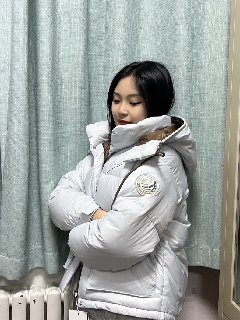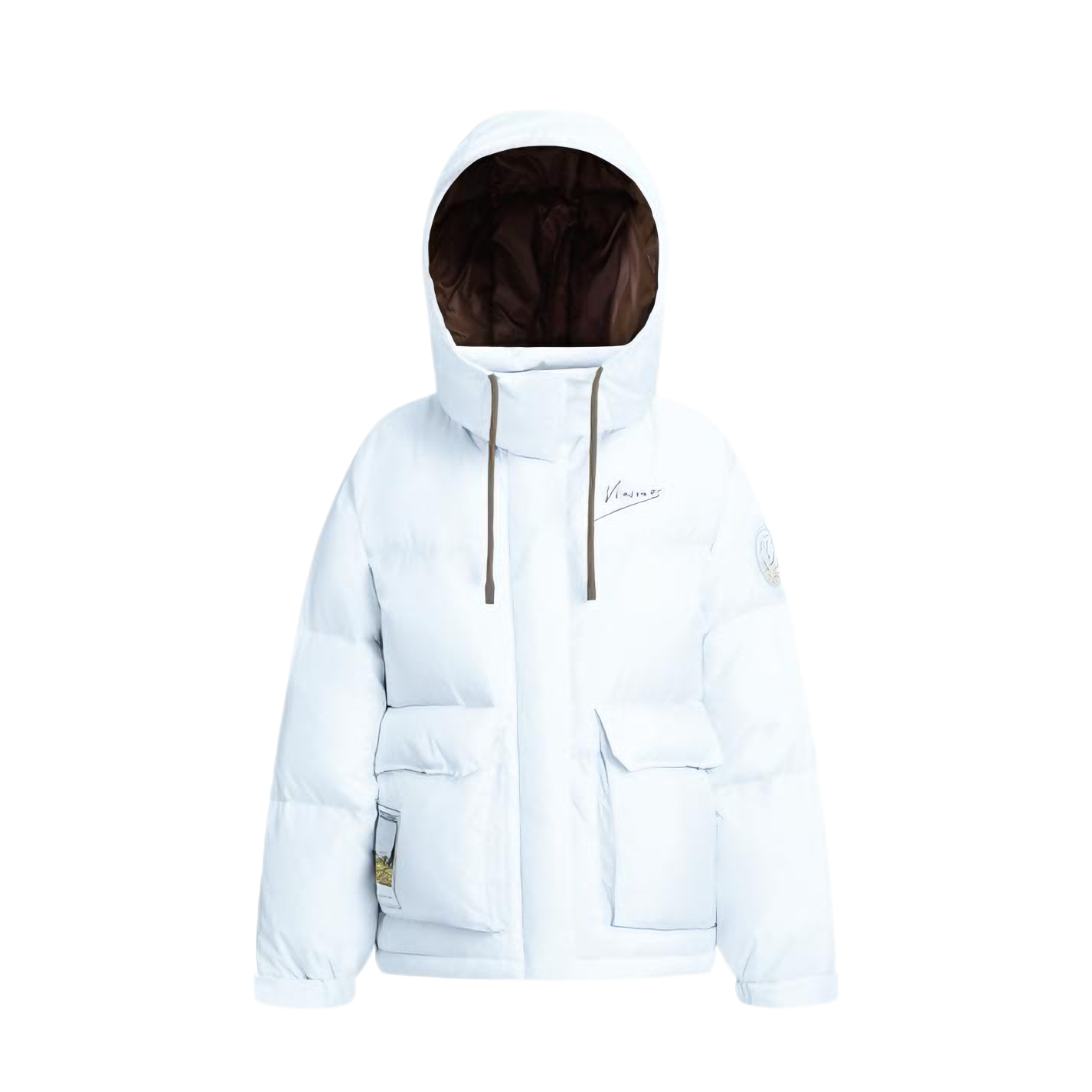 梵高标志的小Logo依旧日好看,细节处充满了很多艺术气息 衣服与普通的白色不同🥅 淡蓝色和褐色内衬呼应 很衬皮肤亮 里面随便搭配一件卫衣就好看 即使在东北穿它出门也很保暖 对小个子也友好 真的爱了🏂@阿音音阿