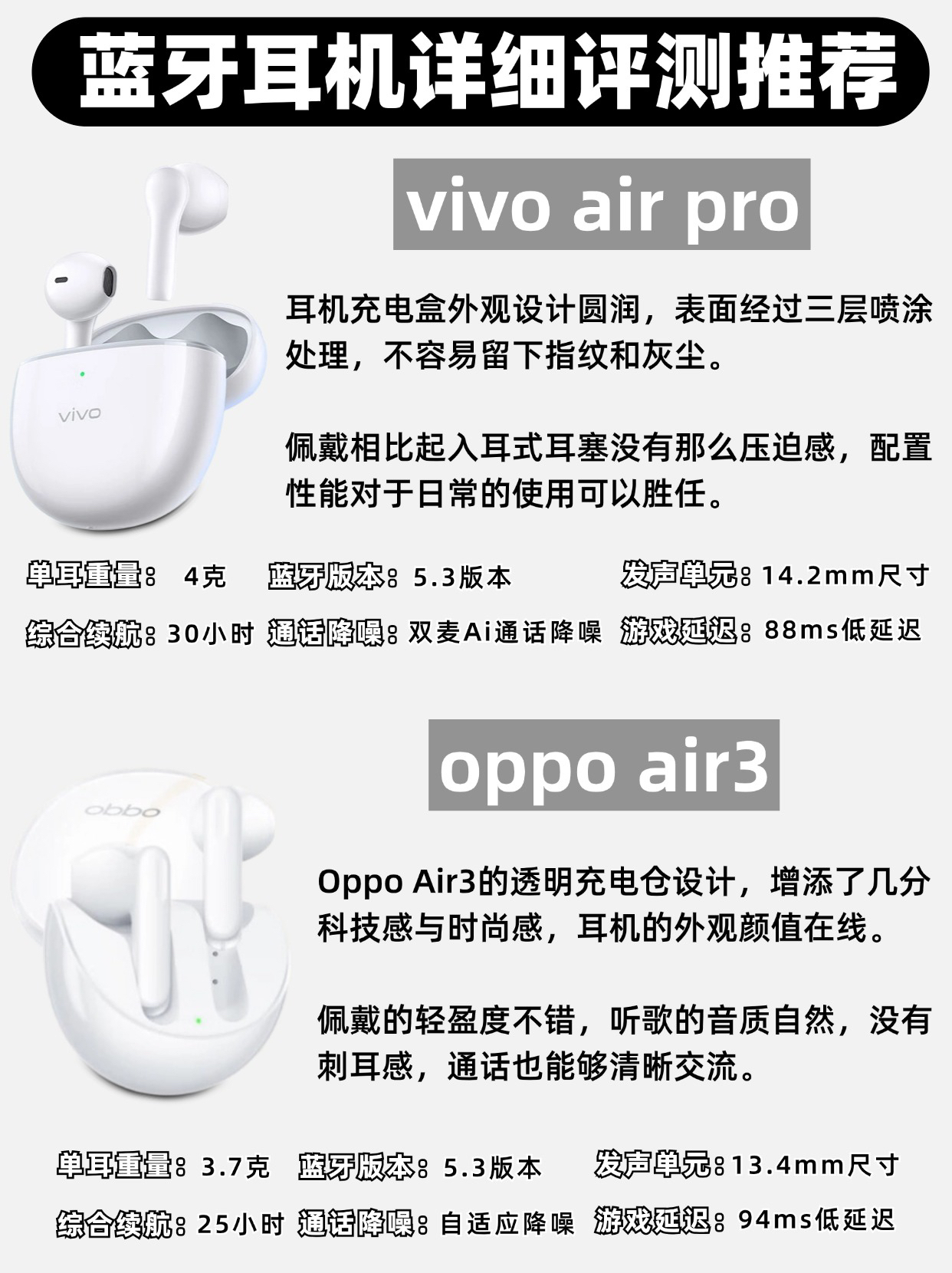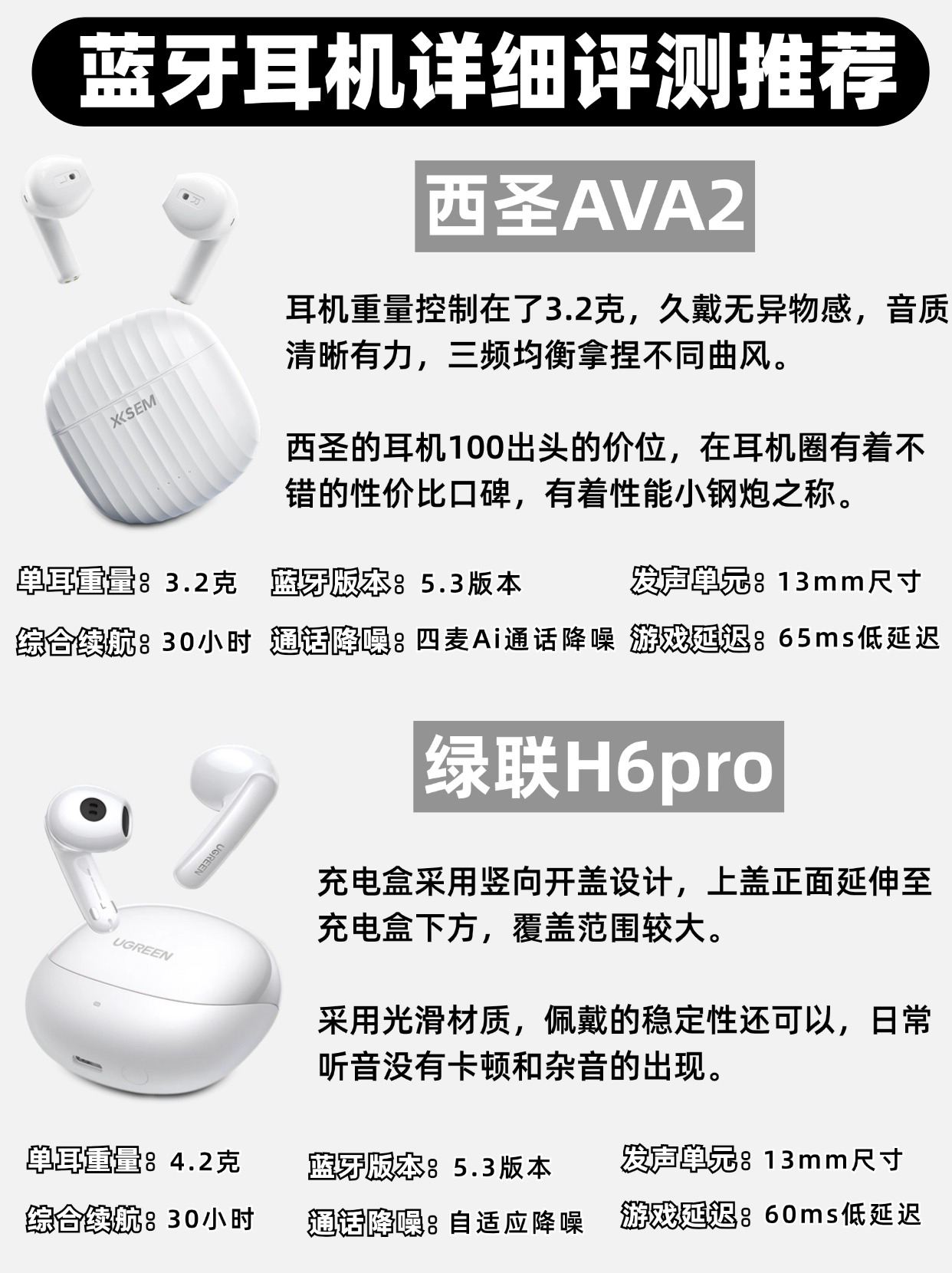 现在无论是为了娱乐、工作学习📖 蓝牙耳机已经成为不可或缺的一部分了🌟 如果你还在犹豫如何选择蓝牙耳机😫 📌那么这篇测评和选购指南或许能帮助你找到最适合的那一款 100-300💰蓝牙耳机自用评测分享~ 🔎西圣AVA2—129¥ 🔎vivo air pro—229¥ 🔎绿联H6pro—199¥ 🔎漫步者lolli3—159¥ 🔎oppo air pro—159¥