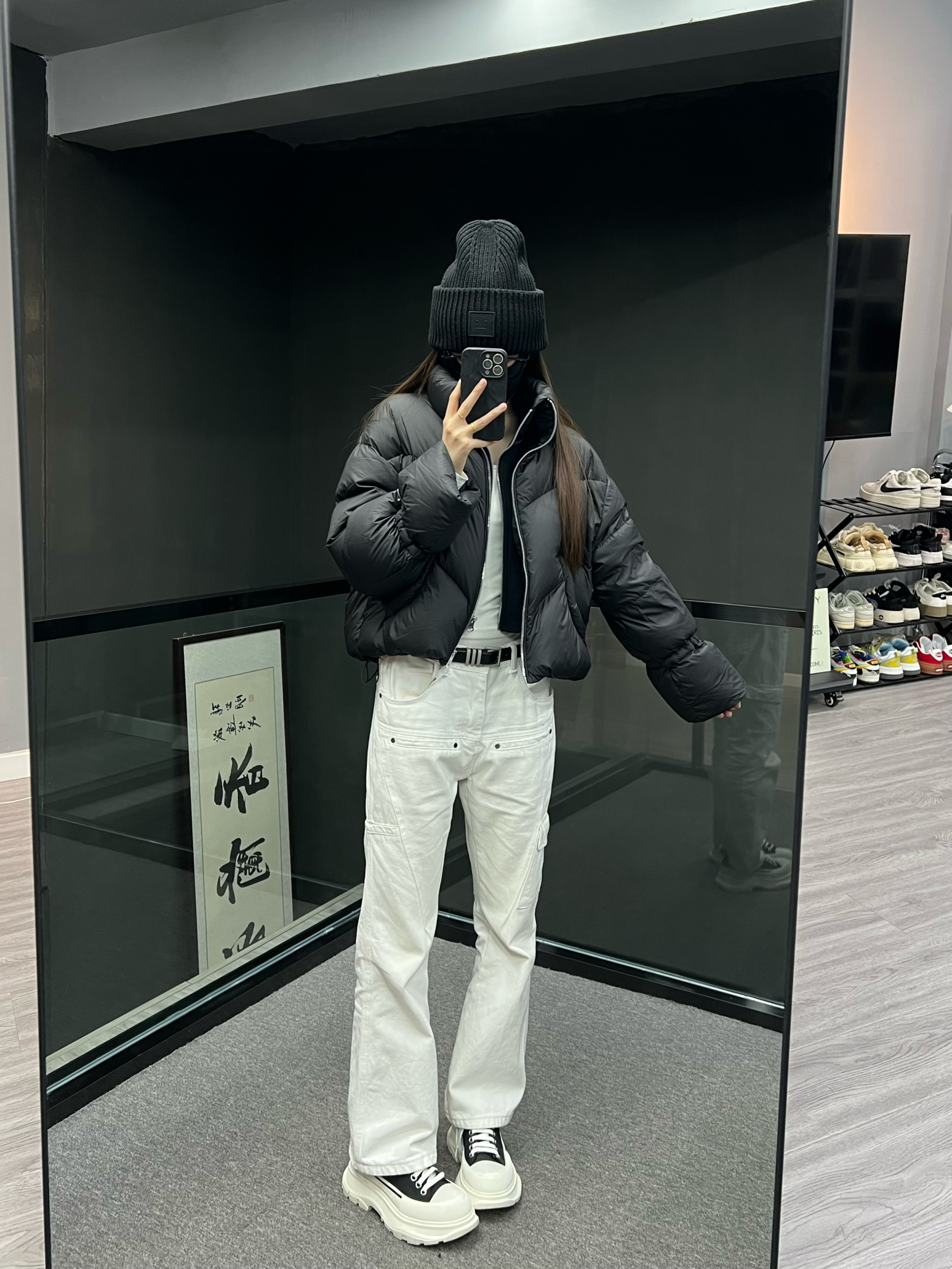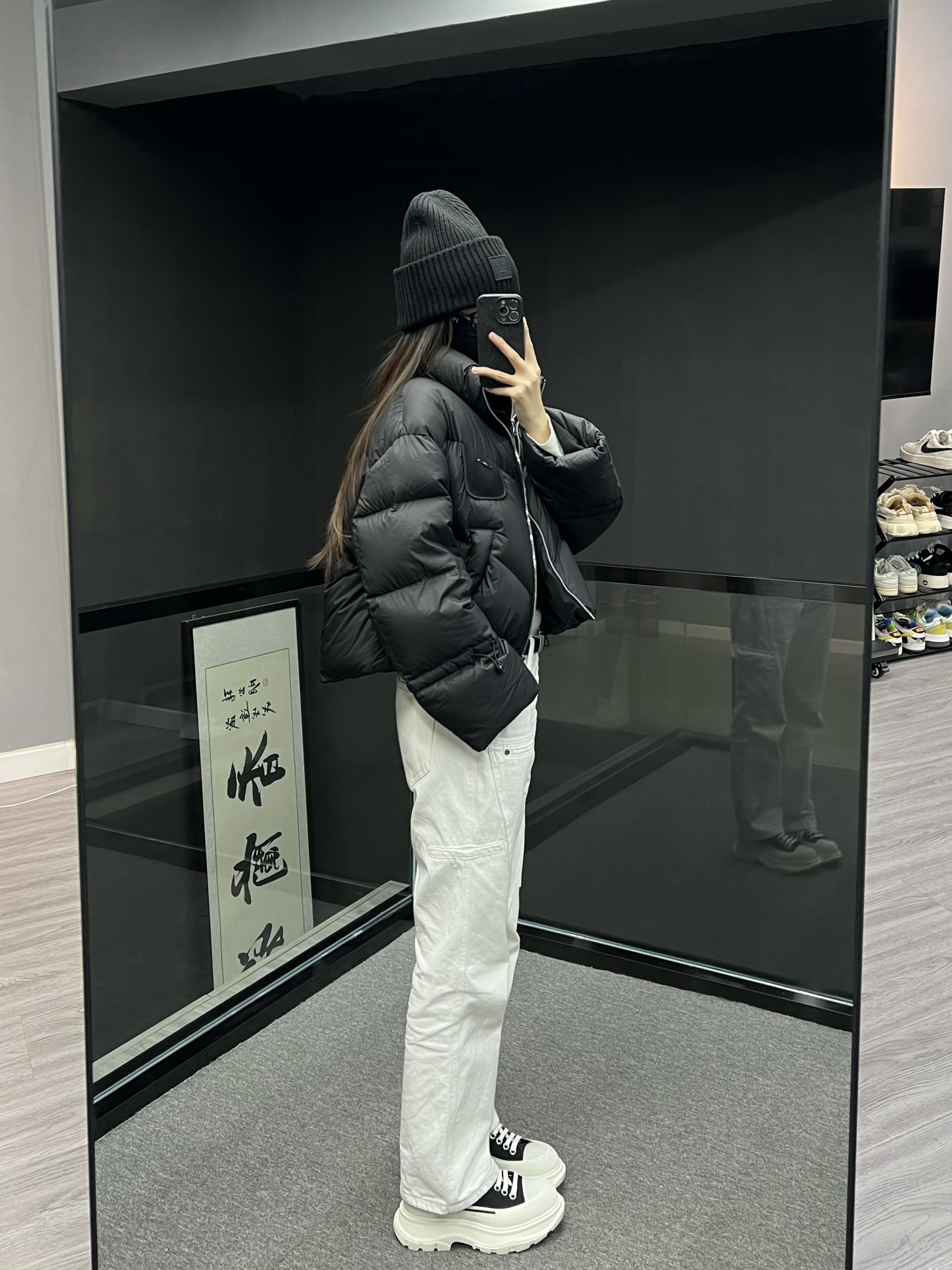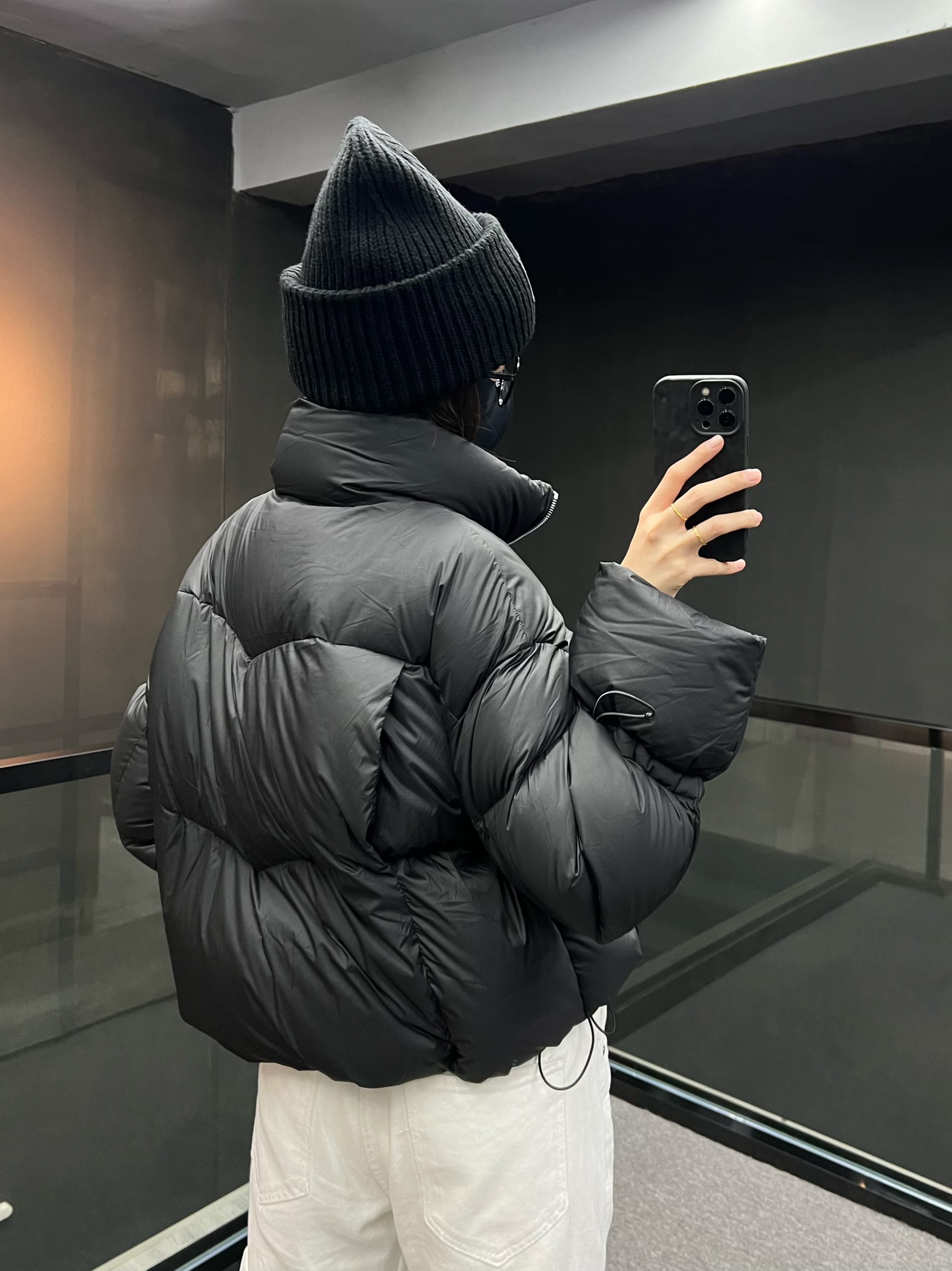 短款羽绒服➕直筒裤的搭配嘎嘎显腿长~ 小短款版型上身很显比例 泡芙面料摸起来软绵绵嘟 又轻又软 不臃肿的羽绒服 太绝了😮 袖子和下摆🉑️抽绳 不钻风~ 黑色的怎么搭都不会出错 时髦保暖两不误!