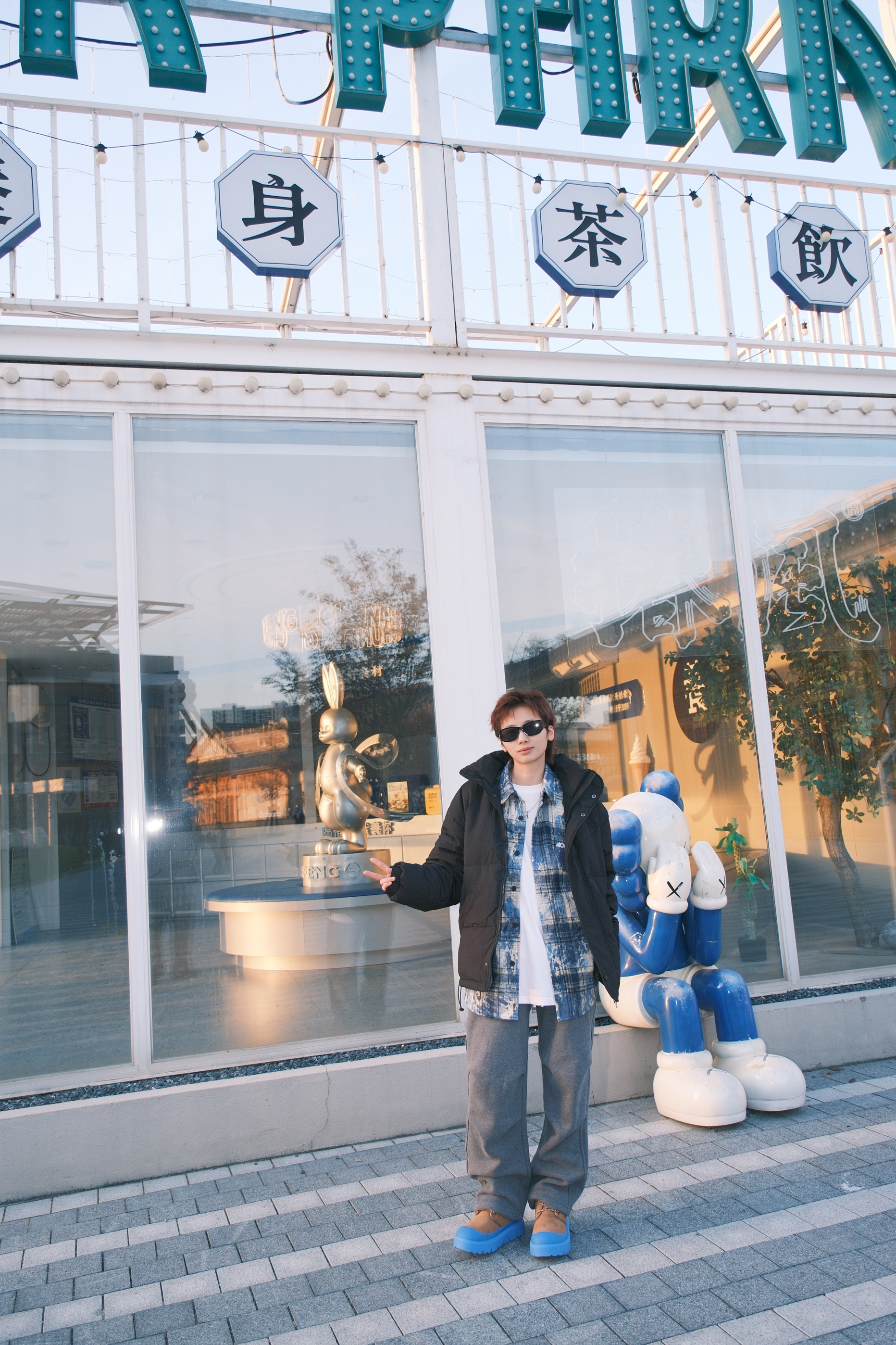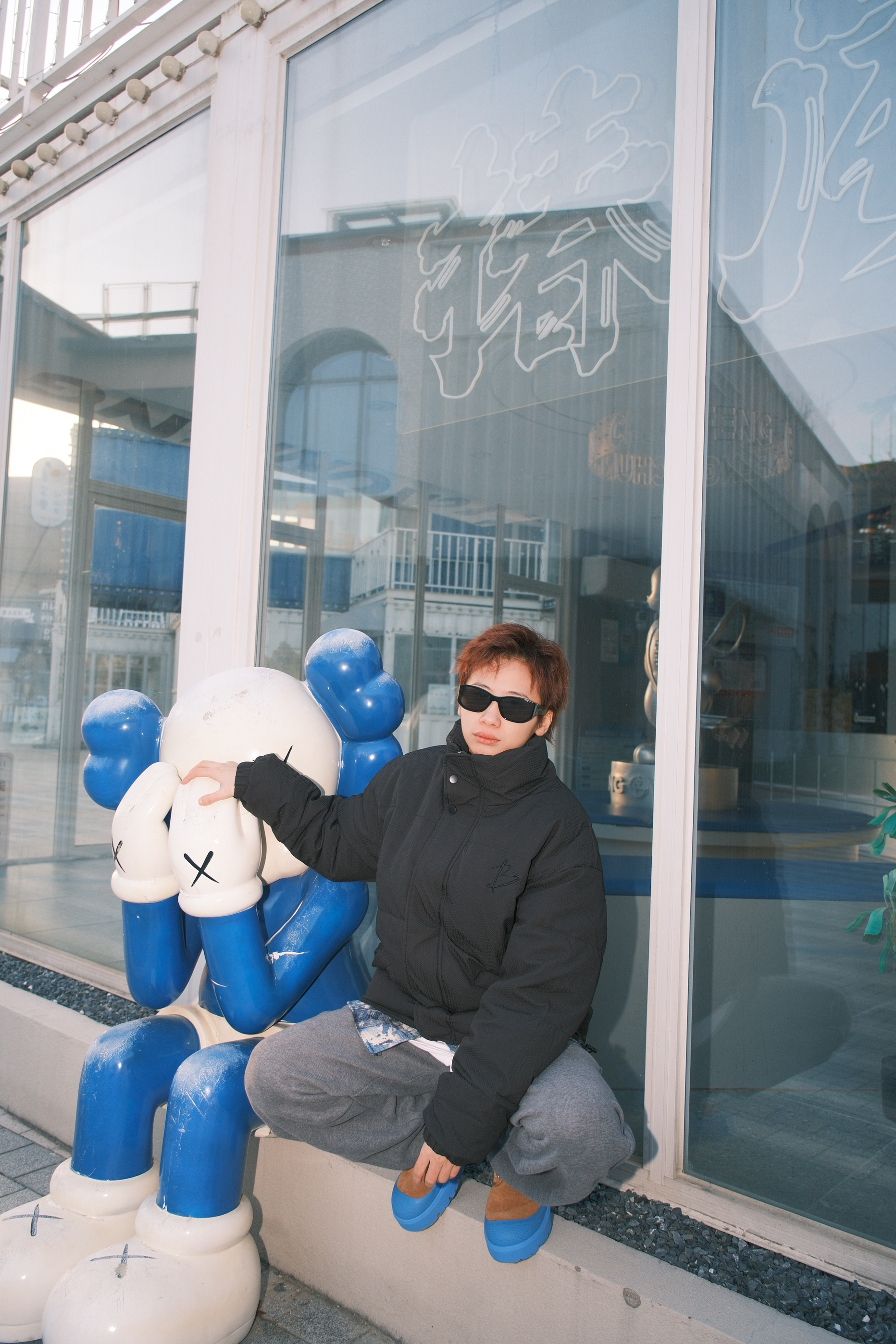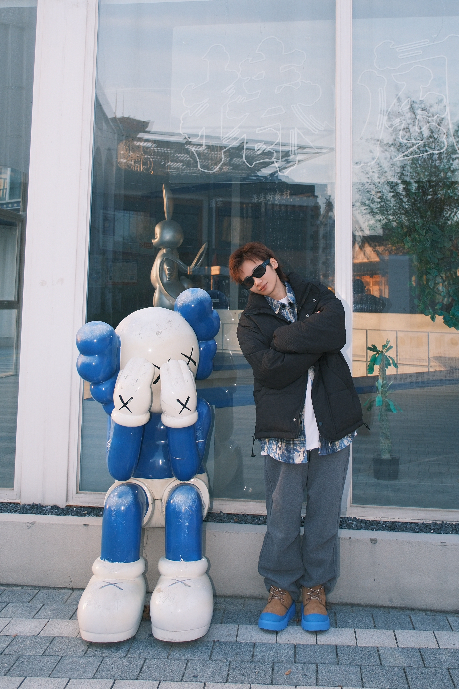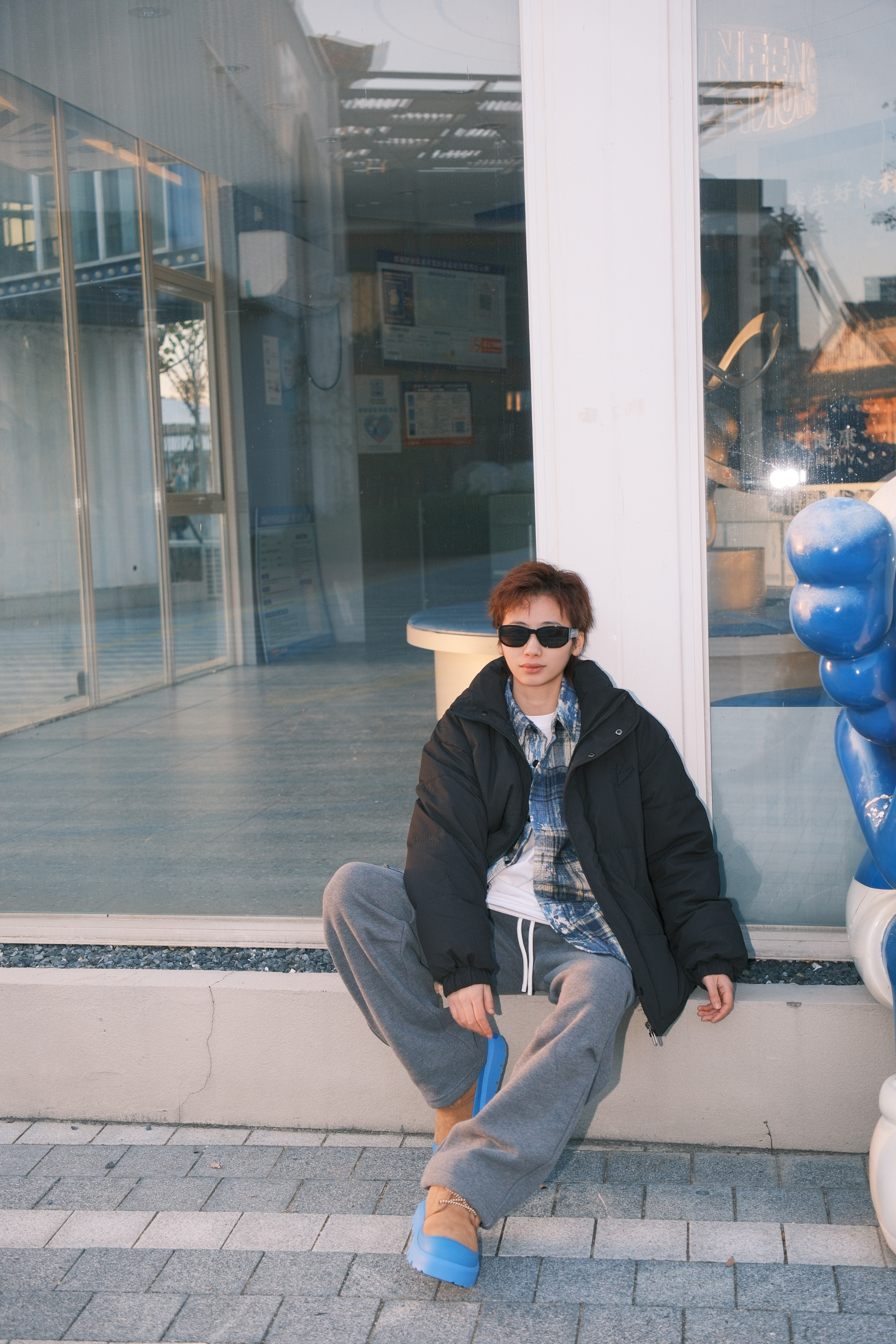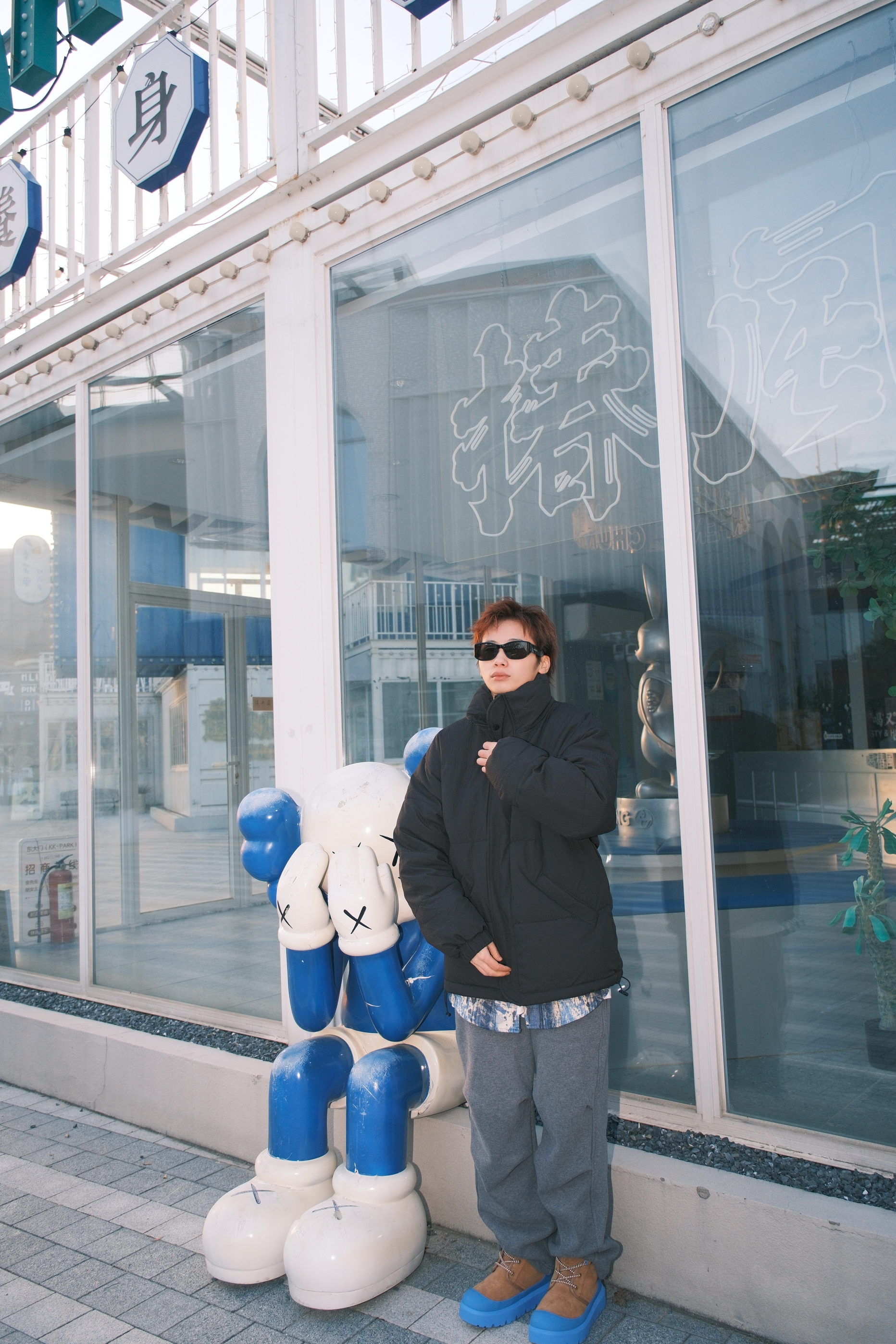 虽然冬天的衣柜里最多黑白灰色系的衣服 可以通过叠穿亮色系来增加色彩度 上身黑色的立领羽绒服 oversize的宽松版型很适合用来叠穿 里面搭配白T➕蓝色扎染衬衫 裤子选一条灰色直筒运动裤 加绒材质冬天穿一条就够了,保暖又不会显得很臃肿 最后穿双蓝棕撞色的UGG雪地靴 蓝色鞋头和上衣配色可以呼应起来 今天这一身风格就很干净清爽 尺码参考:163cm/45kg 上身S码