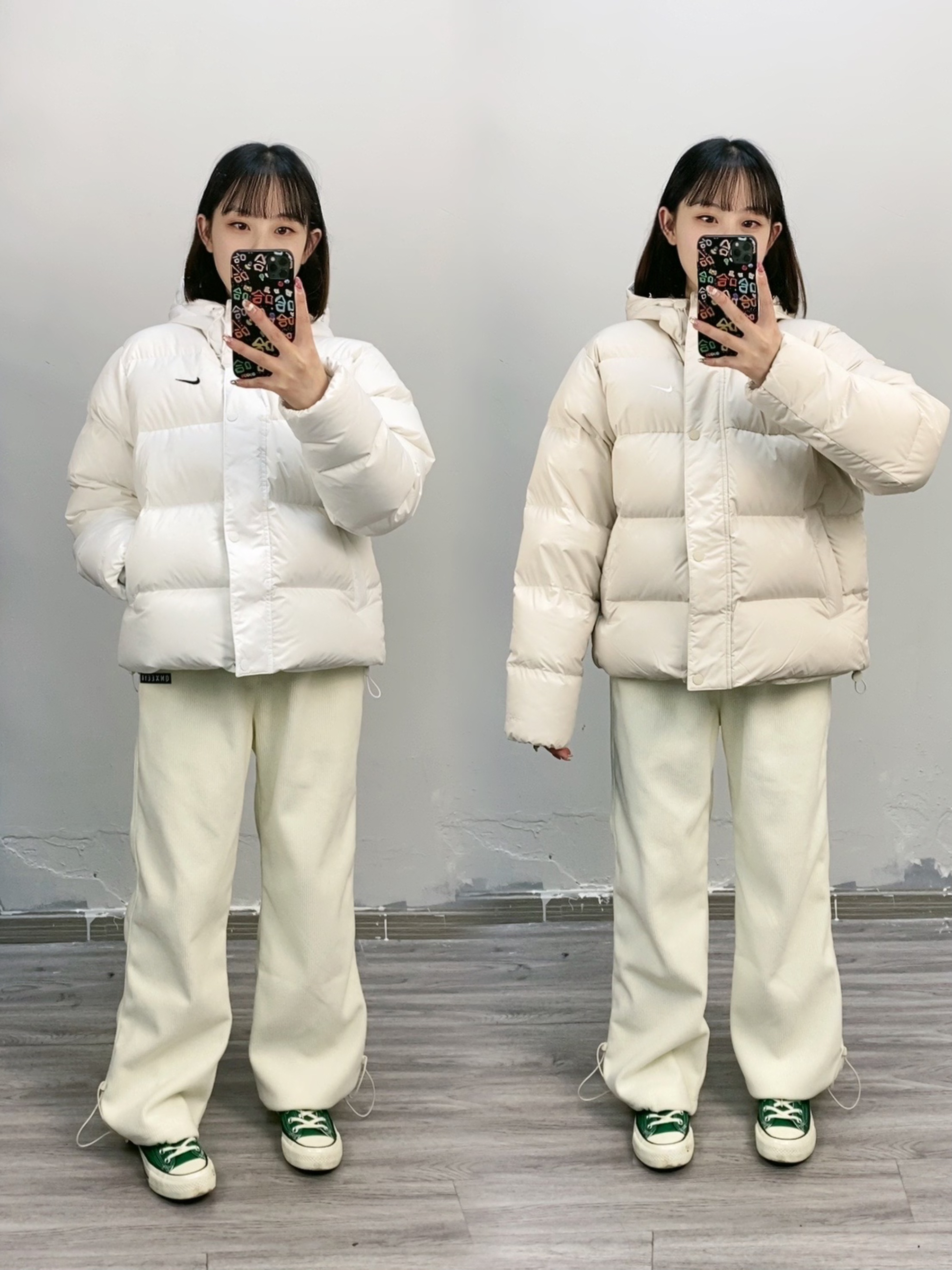 Nike这件羽绒服上身很暖和,面料也很舒适,虽然是浅色,但容易脏的位置做的是深色拼接,相对更耐脏,很人性化!颜色也很百搭,上身效果很好,细狗都瞬间支棱起来啦哈哈