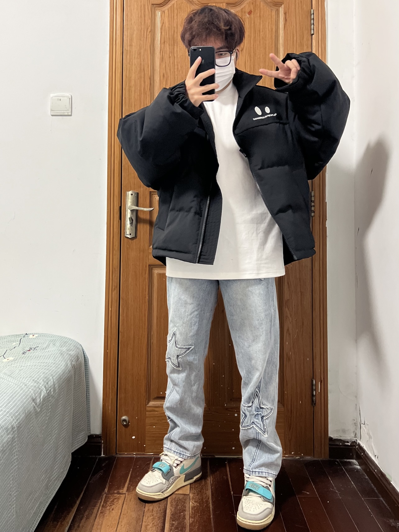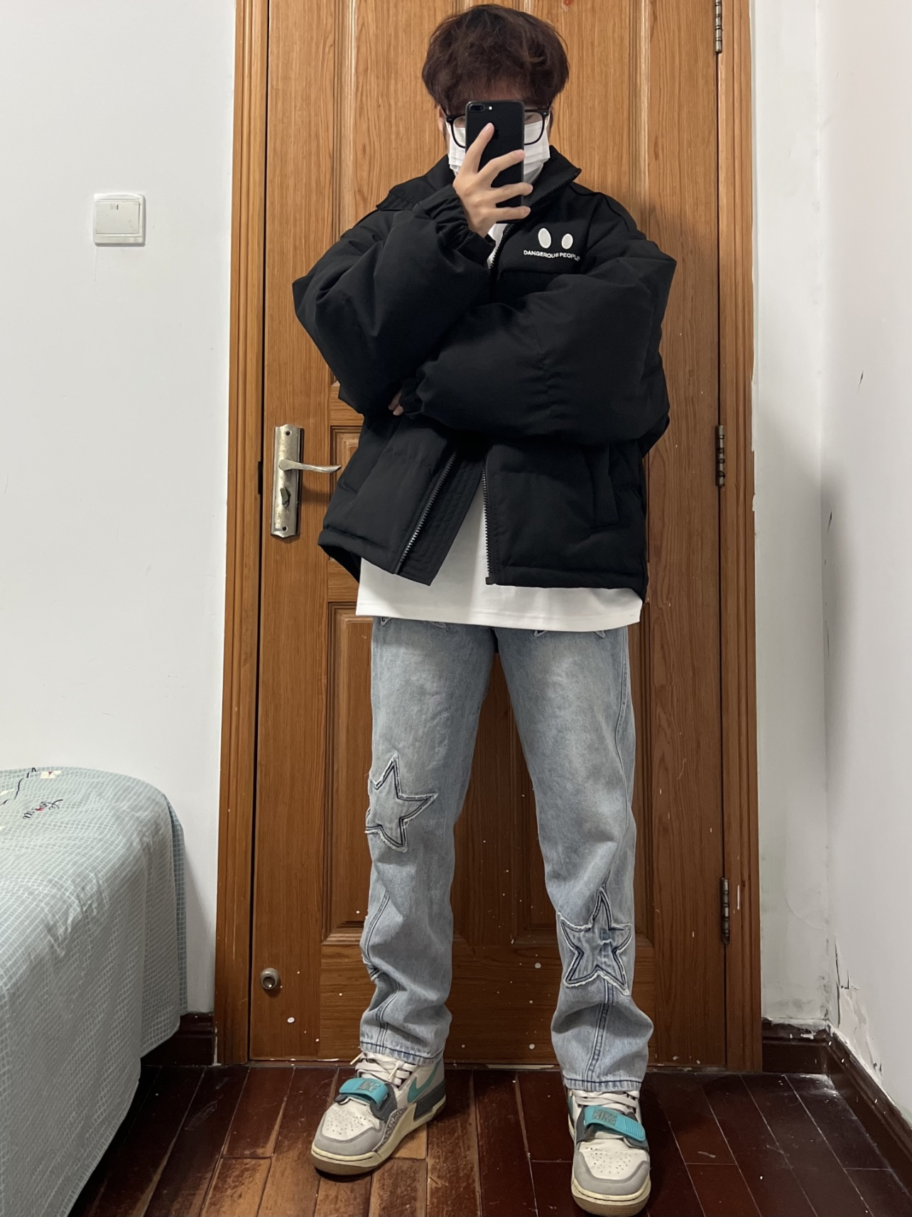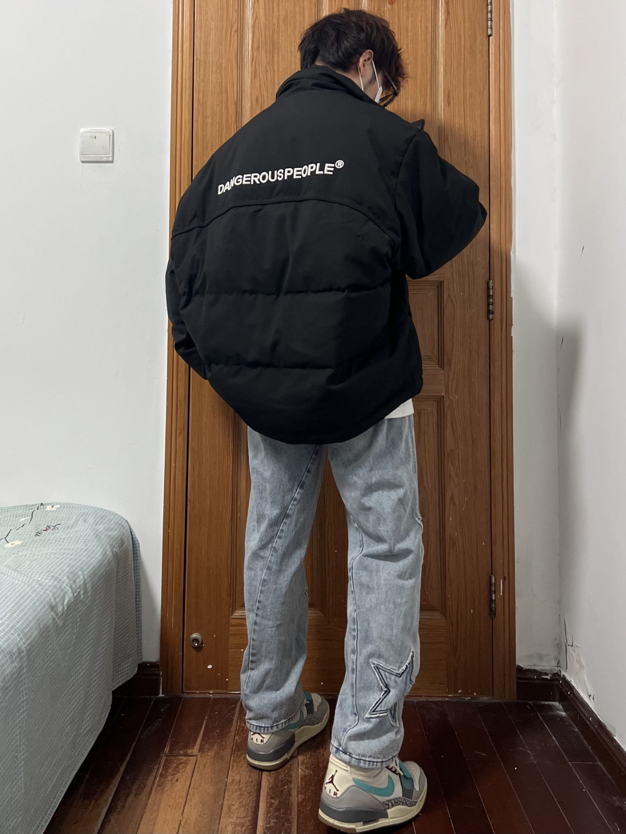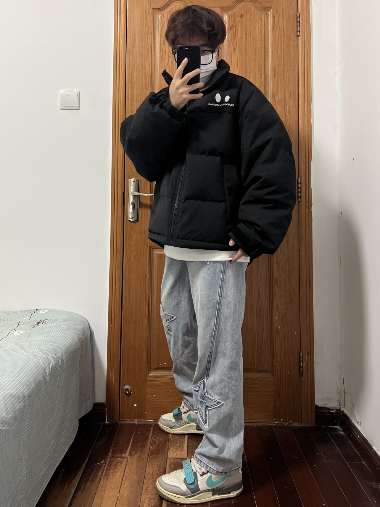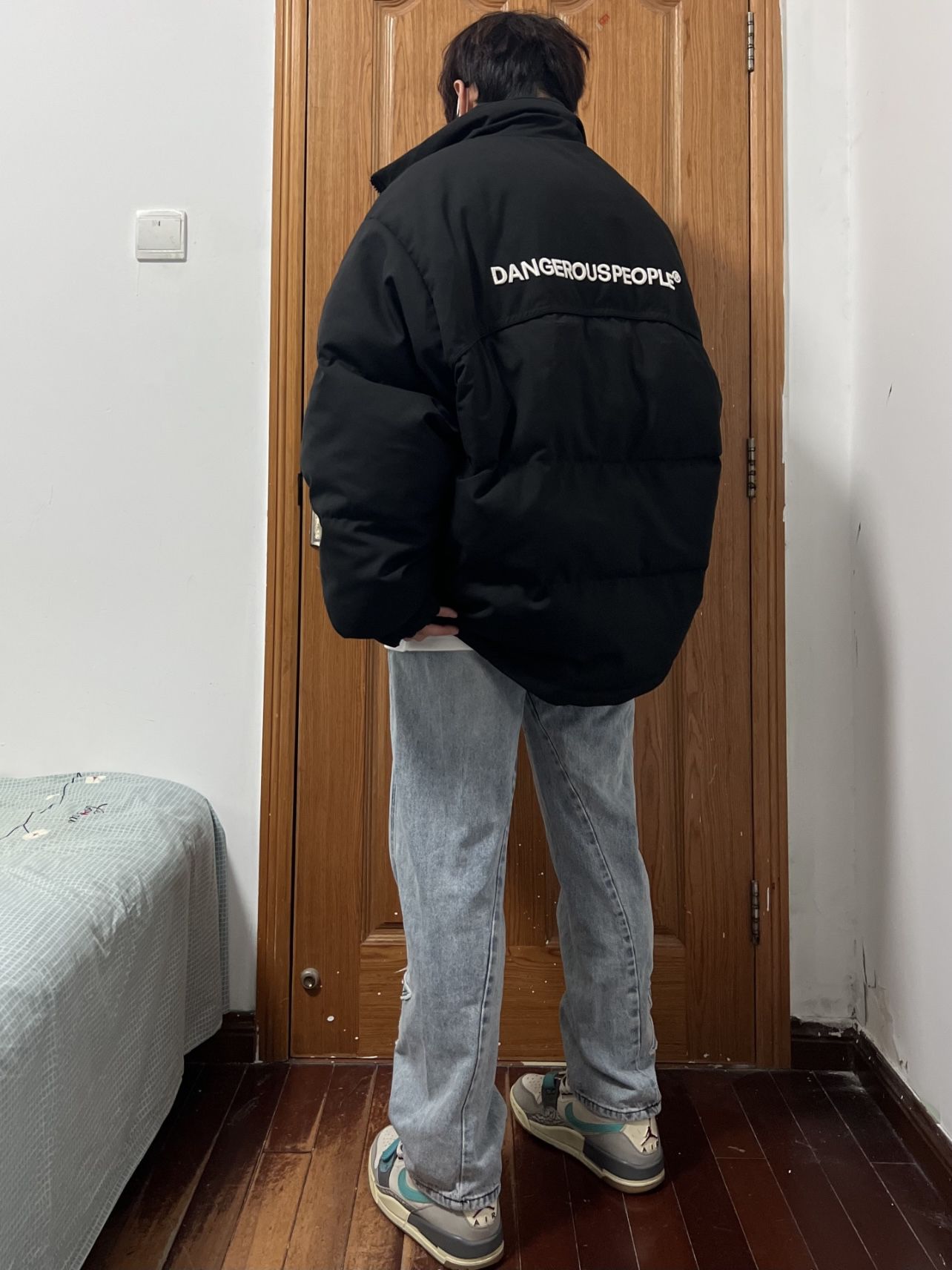 今日份穿搭分享🎉 DANGEROUSPEOPLE小眼睛刺绣基础款羽绒服 面料很厚实防风保暖性不错➡️M充绒177g 版型是自带工装风➕小燕尾设计有点小潮流🉑️ 正面刺绣小眼睛👀背后立体刺绣更帅 男大不会挑羽绒服直接all black就不会错👌 轻松拿捏成为学院最会穿的男人 内搭一件白色长袖比羽绒服稍微长一点点就好 裤子就是我去年最爱的🌟🌟裤➕AJ312 👔 DANGEROUSPEOPLE ...