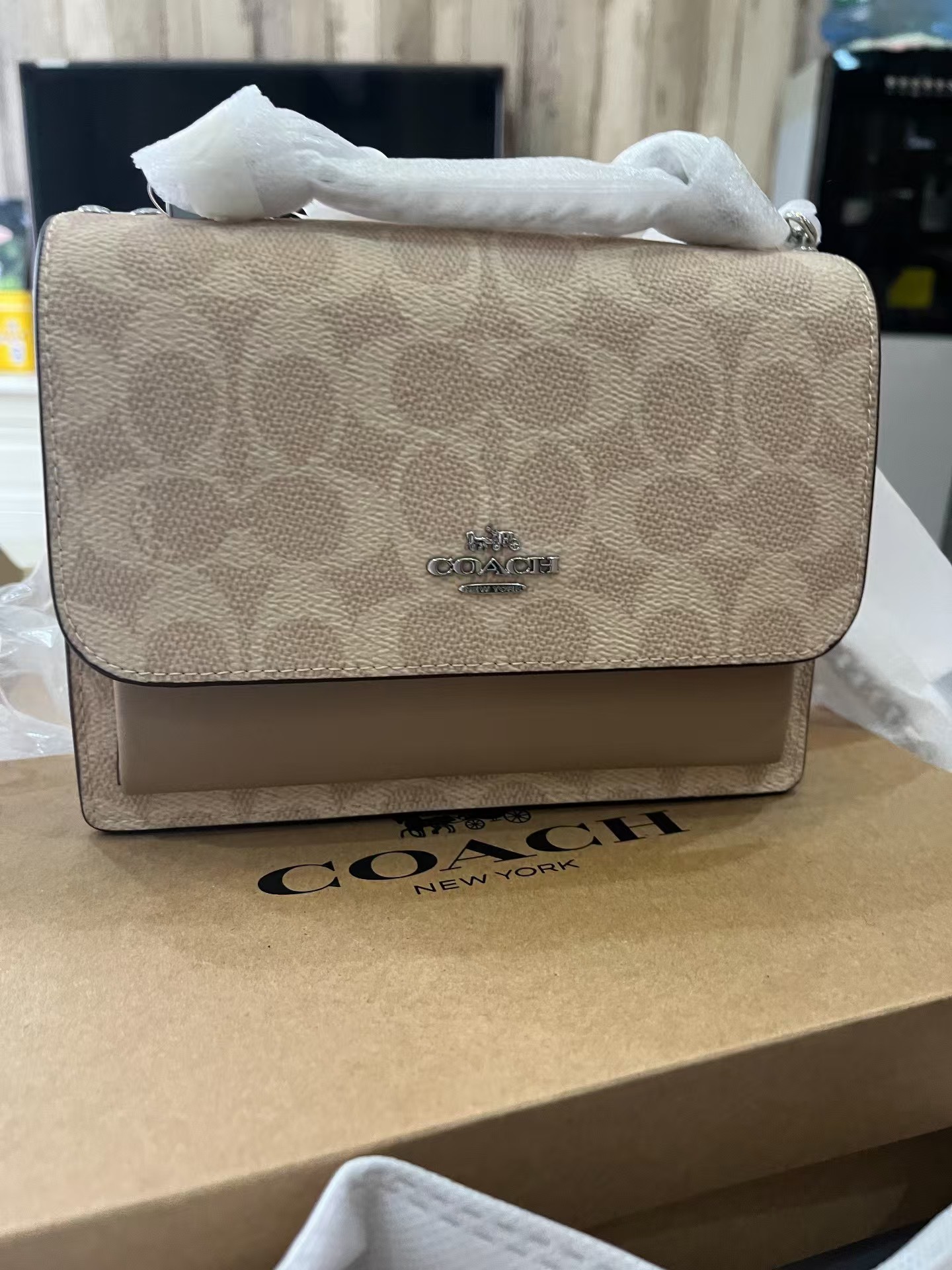 本篇笔记关联了Coach KLARE 18 迷你 品牌徽标搭扣开合单肩人造革牛皮革斜挎包 灰褐色等商品,为用户提供真实的使用体验和购买参考。