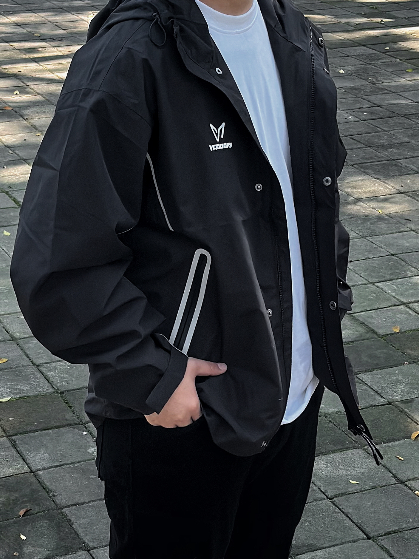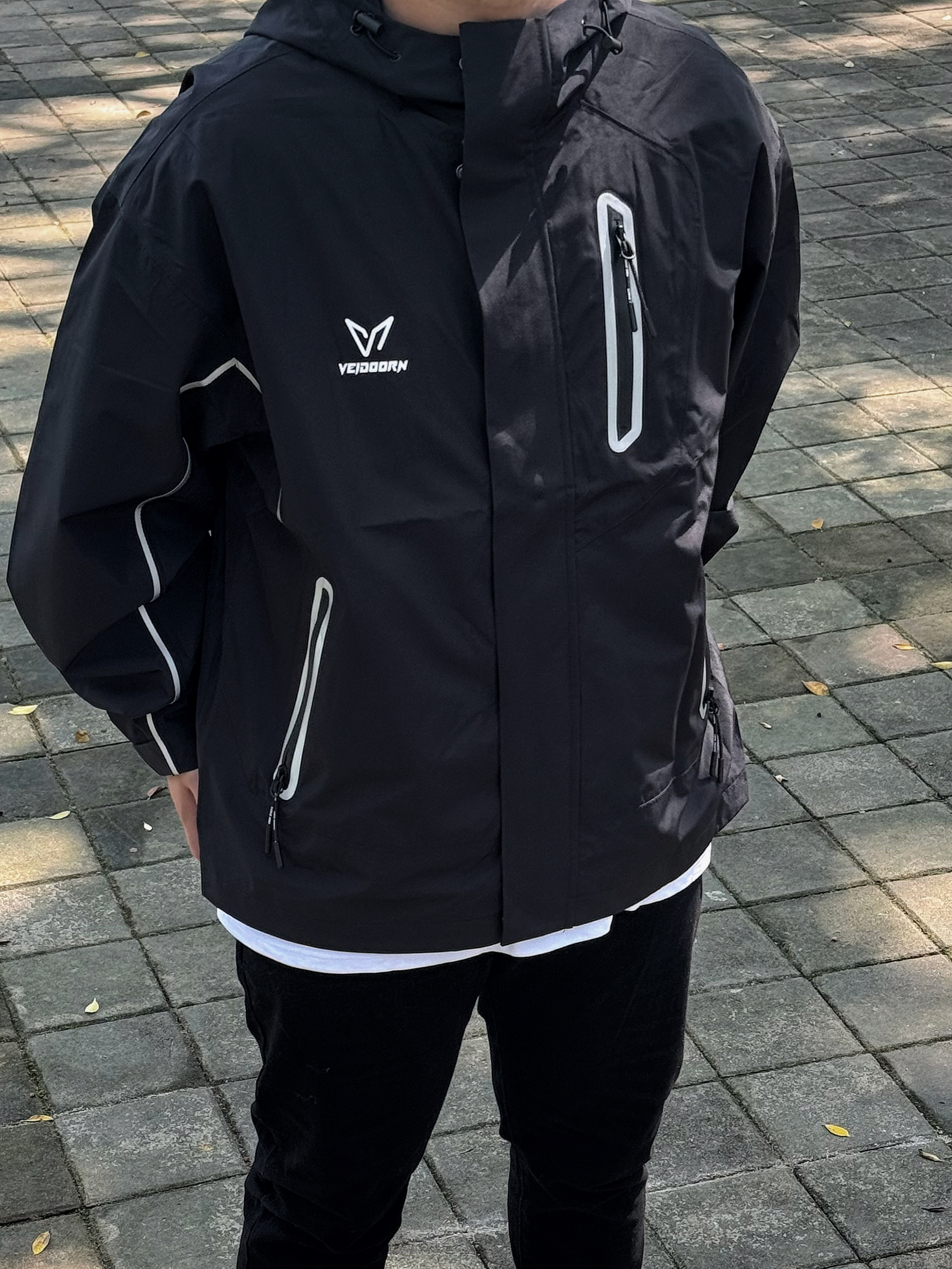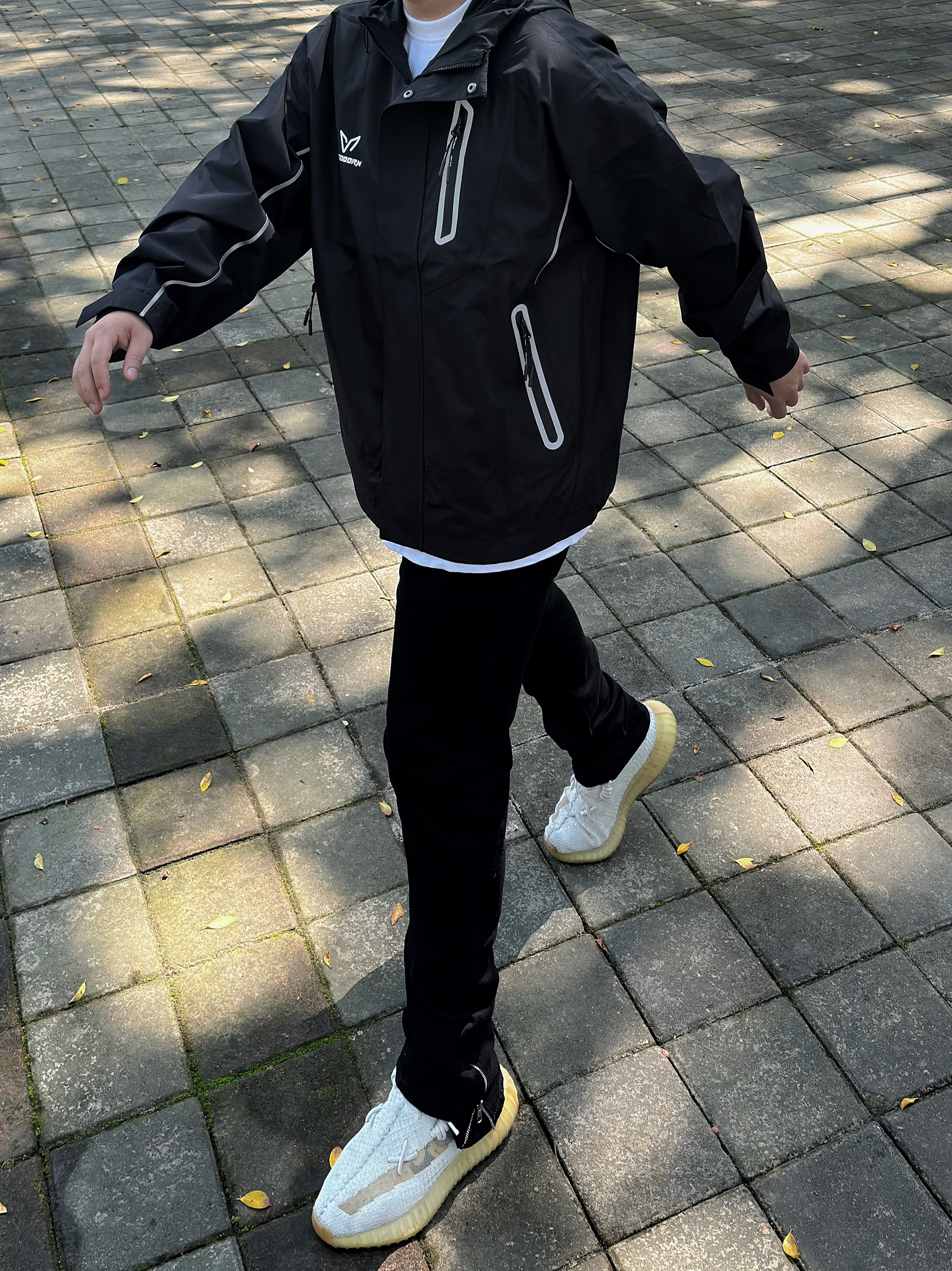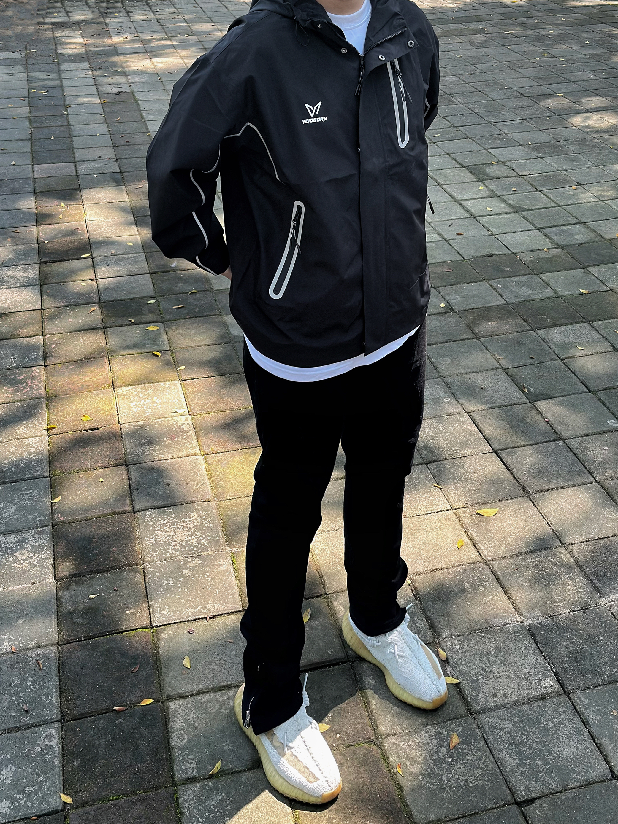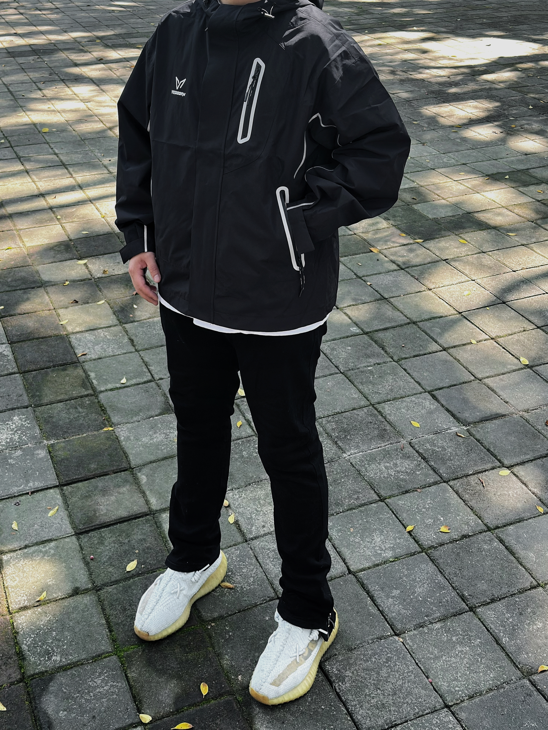 👔上身一件黑色冲锋衣 机能风的设计 版型宽松 防水防风面料 户外徒步登山都很合适 👖下身搭配了一条的黑色直筒牛仔裤 版型上身修身显腿长 百搭款式 身高丨体重丨尺码 : 178丨90kg丨2XL 👔 VEIDOORN 👖 Michael Rock 👟 ADIDAS