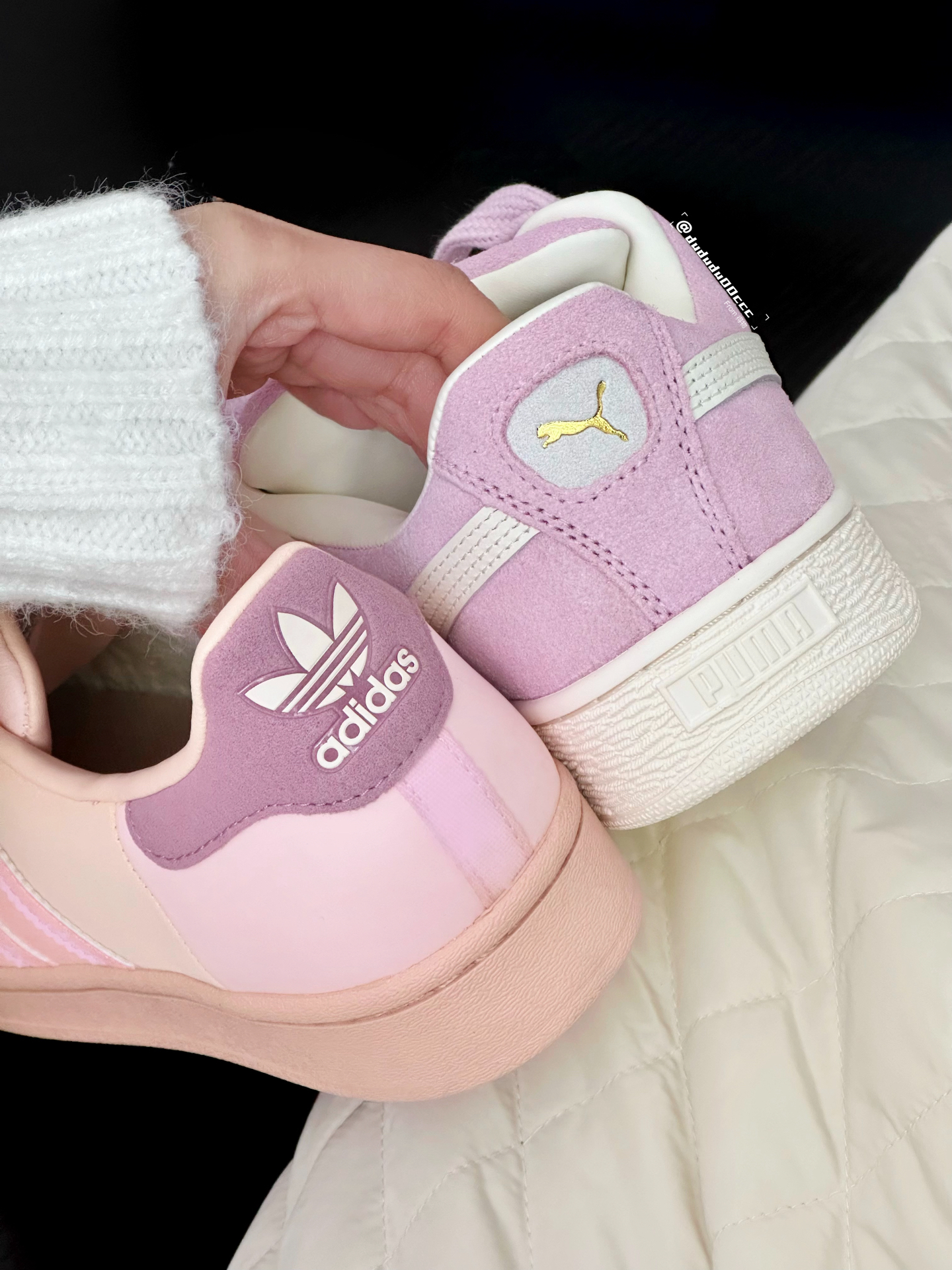 😍今天分享一款超美PUMA的德训鞋。 ✨这双PUMA的运动鞋简直是颜值担当。鞋面是浅粉色和白色的拼接,这种搭配超级清新,满满的少女心💕而且鞋底是梅紫色的,和鞋面形成了很有趣的撞色效果,独特又时尚。 🤩鞋舌和后跟处的PUMA标志性Logo,更是让这双鞋的品牌身份一目了然,品质感满满。穿上它,无论是日常逛街还是运动健身,都还不错,比较好搭配日常穿个工装裤或者浅色系裤子都可以搭配。或者搭配同色系卫衣也是...