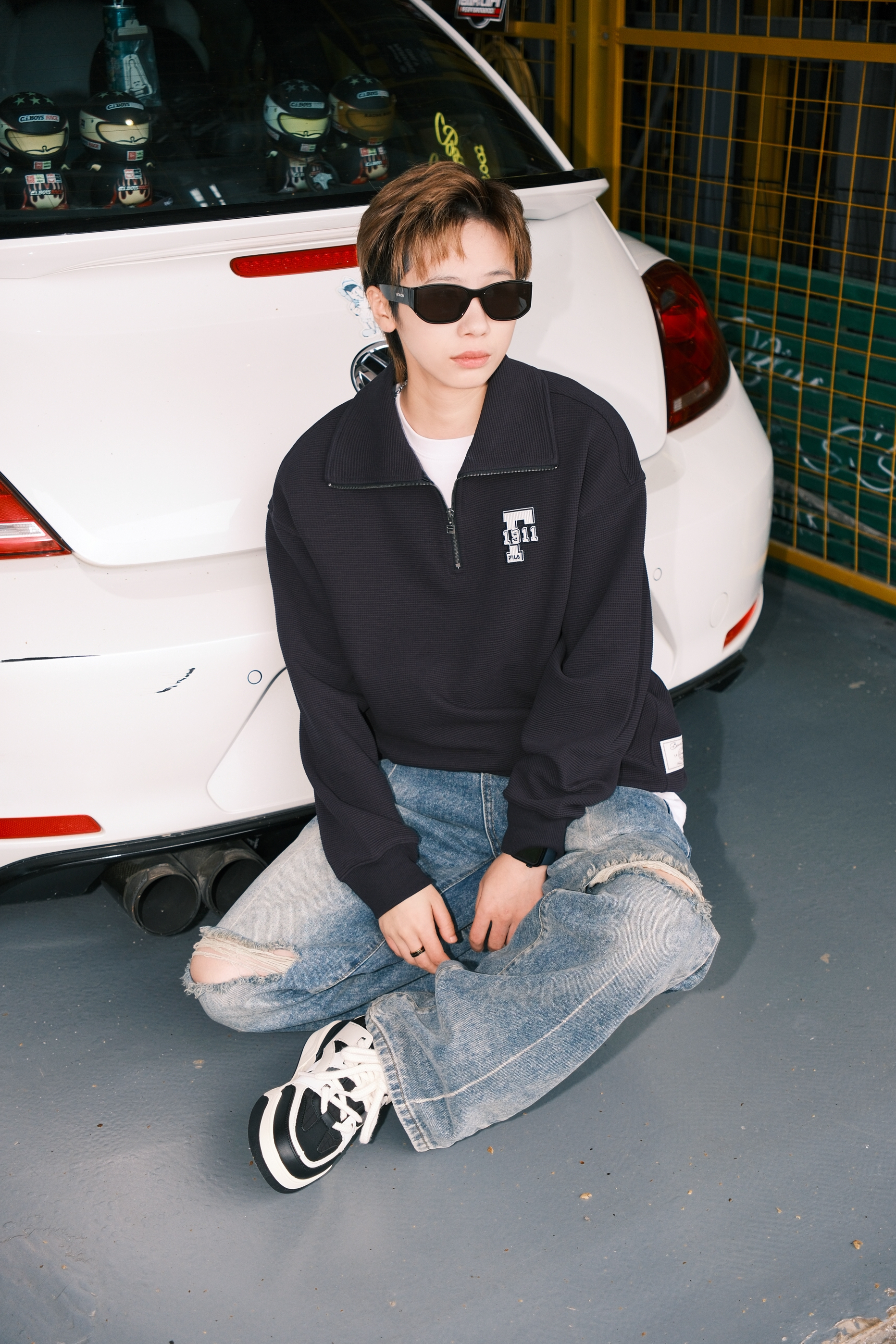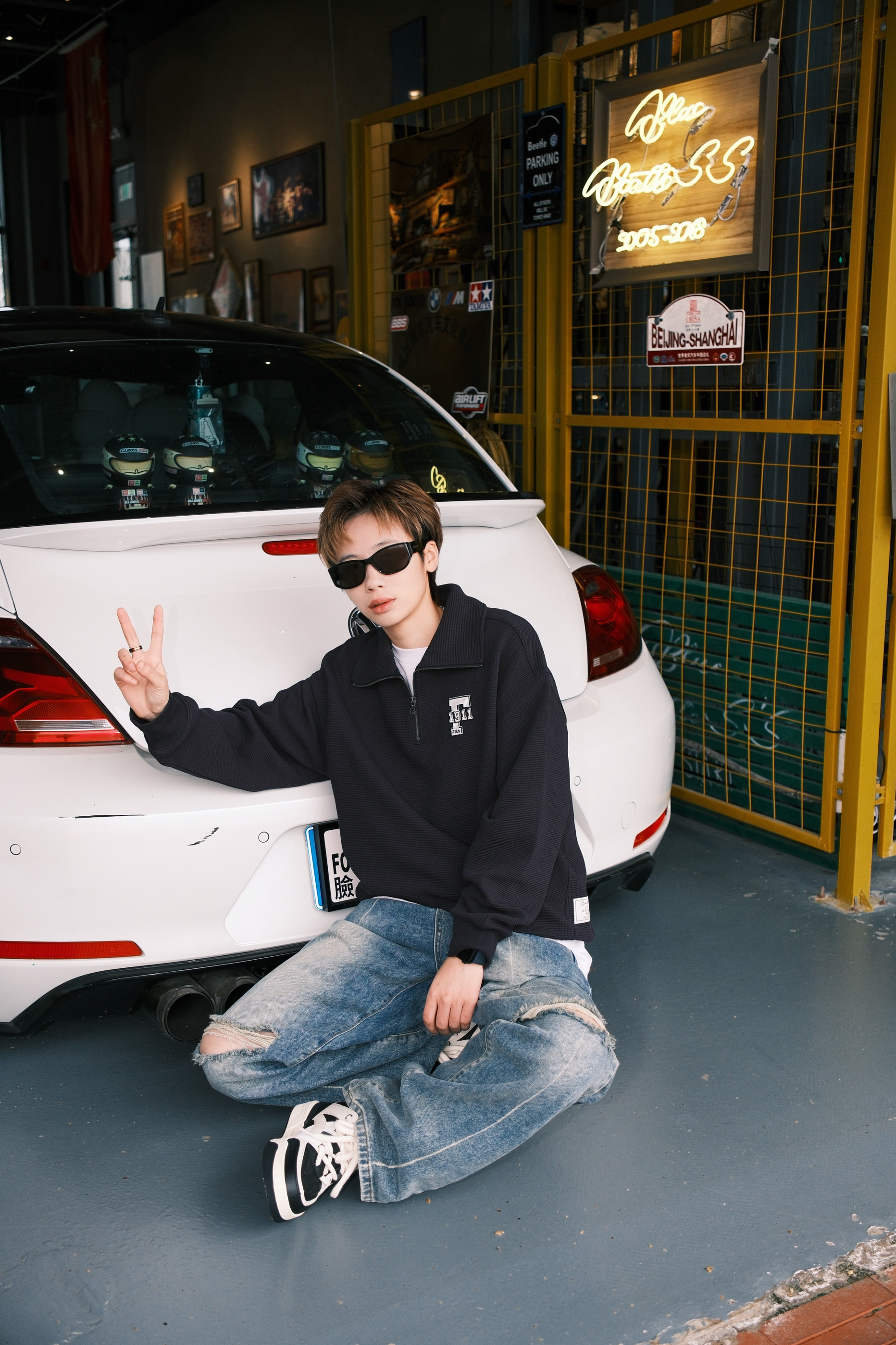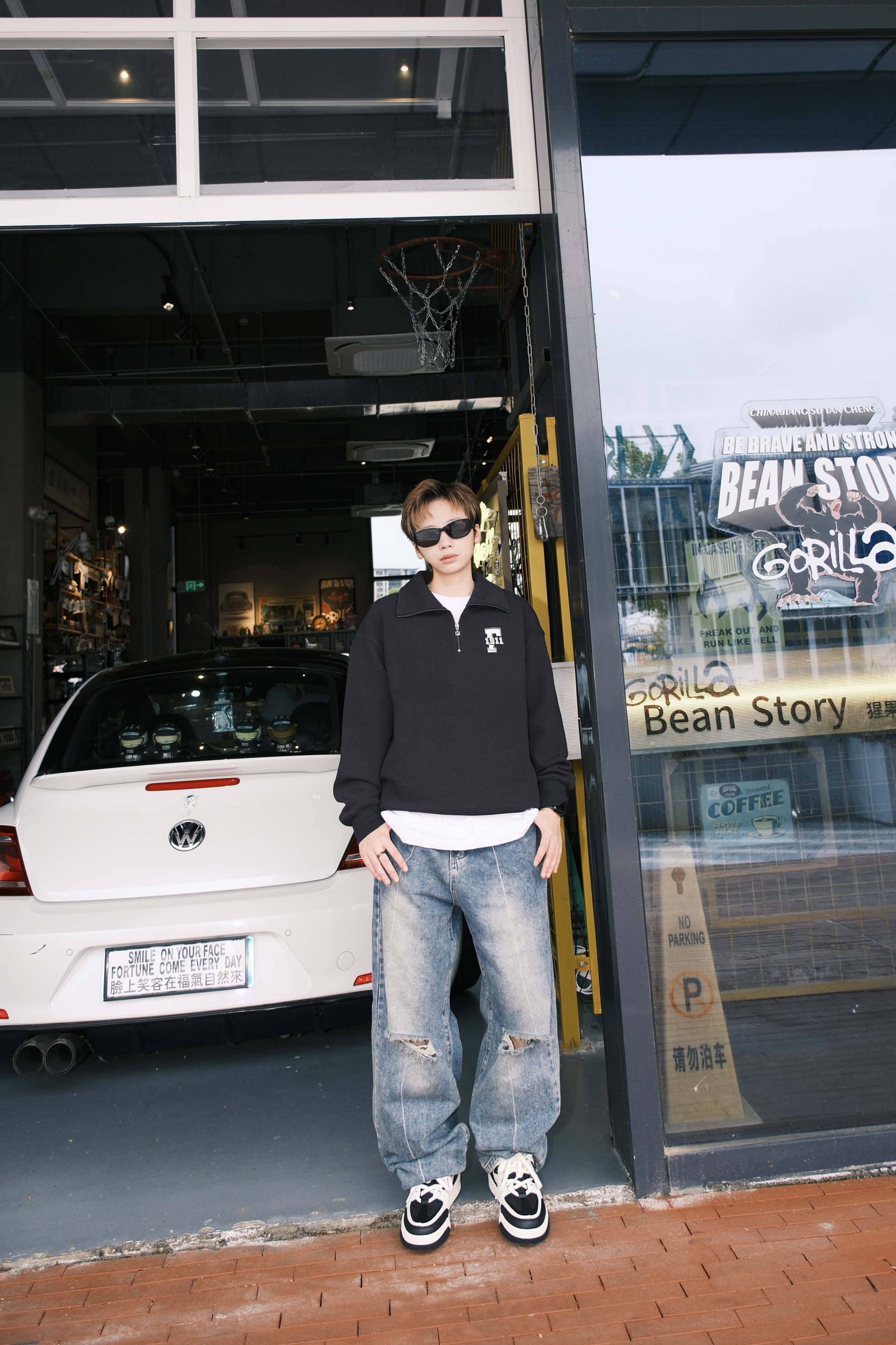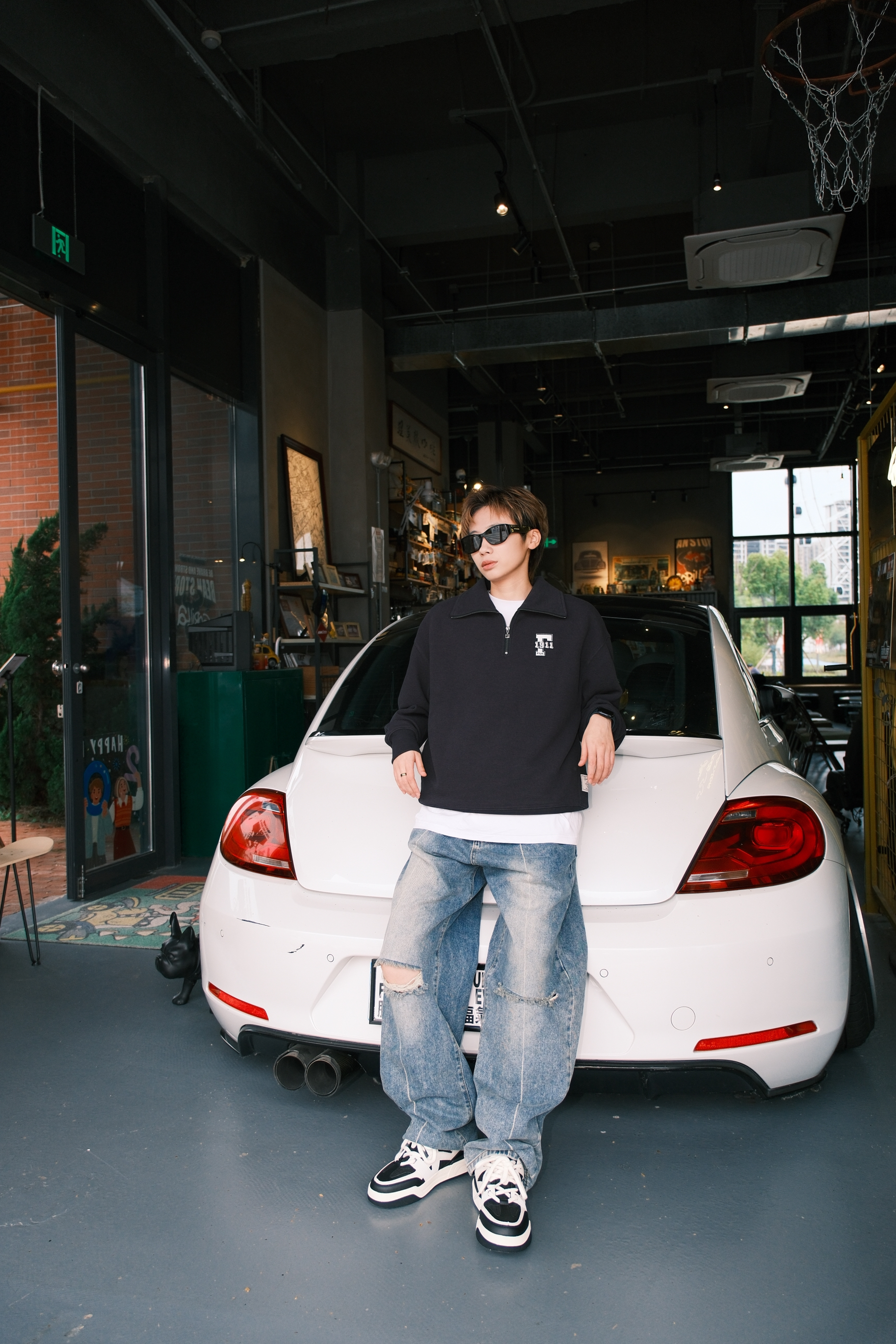 最近很喜欢的一套look👀 拉链领口设计的POLO衫 叠穿件白t就很有层次感 藏青色上身挺显白的 搭配破洞牛仔裤学院风满满 经典的黑白撞色板鞋清爽干净又百搭 拼接鞋面上脚自带层次感 尺码参考:163cm/45kg 上身S码