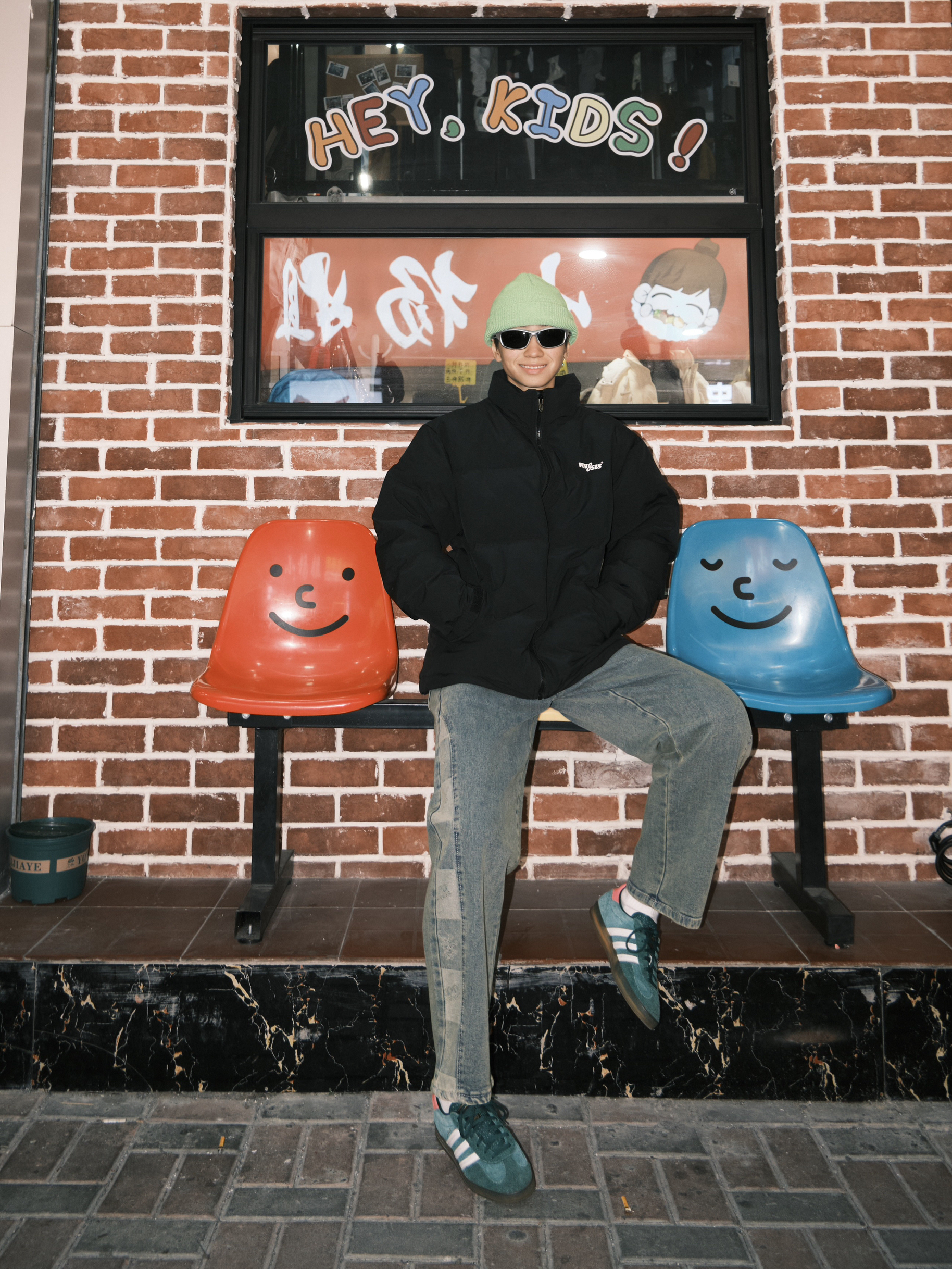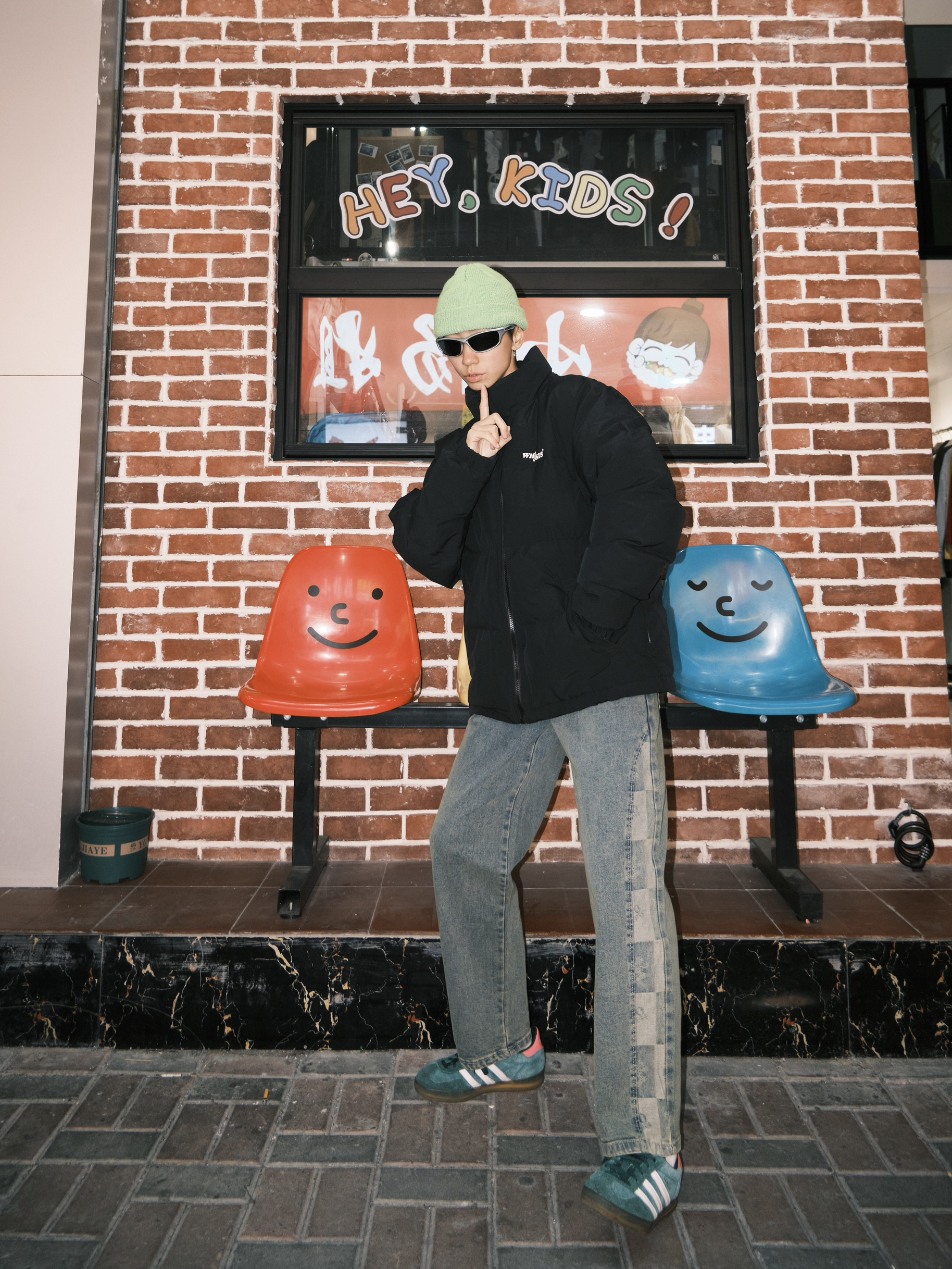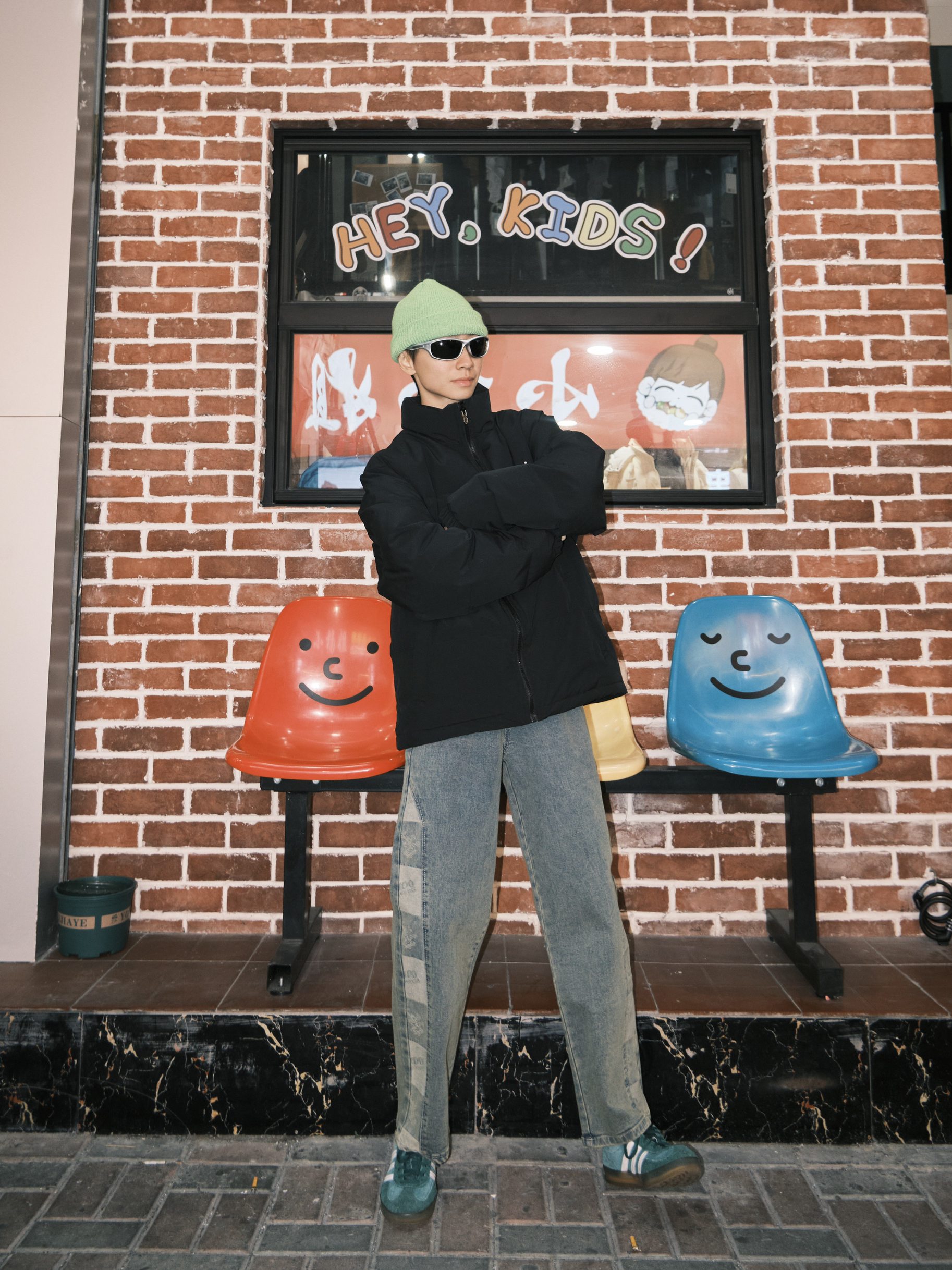 哈喽 欢迎来到哇哇哇穿搭分享频道! 172CM|55KG|👔:M 👖:m|👟:39码 有没有人和我一样 冬天出门懒得出门思考穿什么 一件百搭黑色羽绒服 直接穿它 安全感💯 日常通勤一键式穿搭 根本不用担心搭配哟 下半身搭配个做旧复古牛仔裤👖 今日戴上了绿色系冷帽 一定身上要添加一些亮色单品 过冬咯!