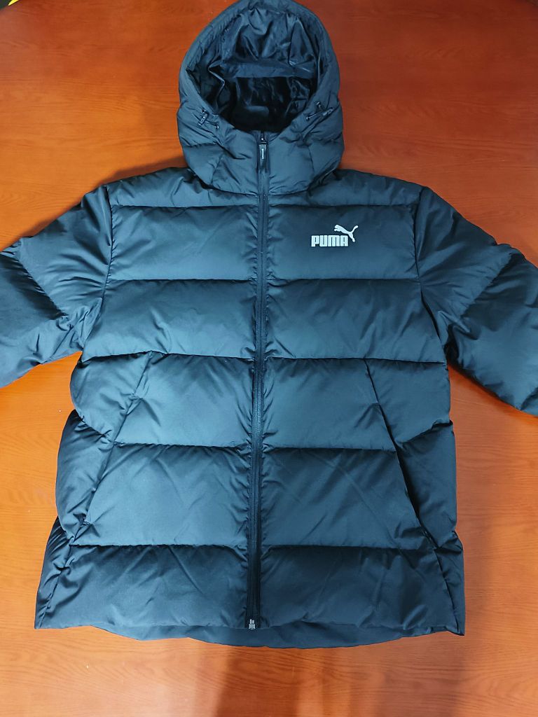 彪马PUMA 字母印花休闲连帽保暖羽绒服 男款 黑色 80%的绒子含量 填充物为鸭绒 L码为174±2g充绒量 M码166±2g充绒量 版型修身 上身不显臃肿 尺码合适按照自己正常尺码购入就好 衣服重量很轻 衣服面料柔软 御寒防风 锁温保暖 适合日常休闲 上学上班通勤穿着 螺纹袖口的设计也不跑风 蓄热保暖 让运动也舒展灵活 斜开拉链的口袋设计能更好的修饰衣服的版型 衣服也有一个内置小口...