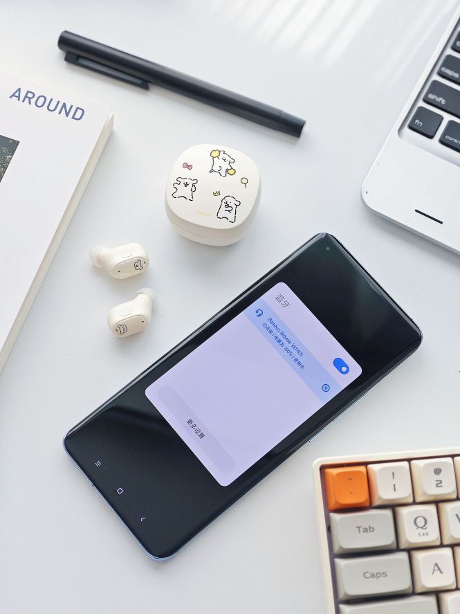 就是介个倍思的线条小狗联名耳机哇 充电仓上面是奶fufu的线条小狗耶 耳塞式的隔音降噪都hin好 有送小耳帽对小有道也很友好 听音乐音质还蛮不错滴 还有手机APP和AI助手 才几十R~谁能拒绝这么可爱的耳机啊~