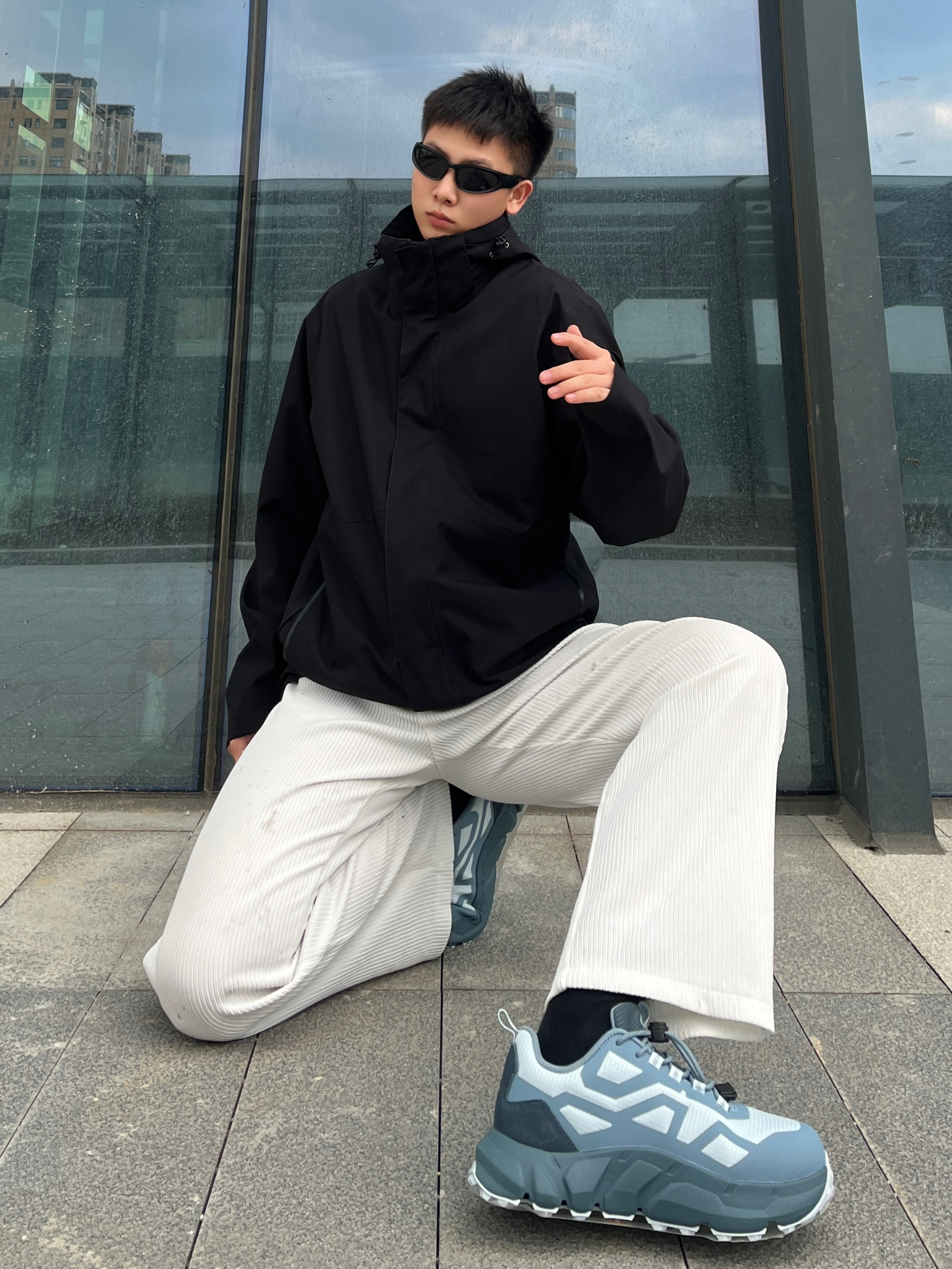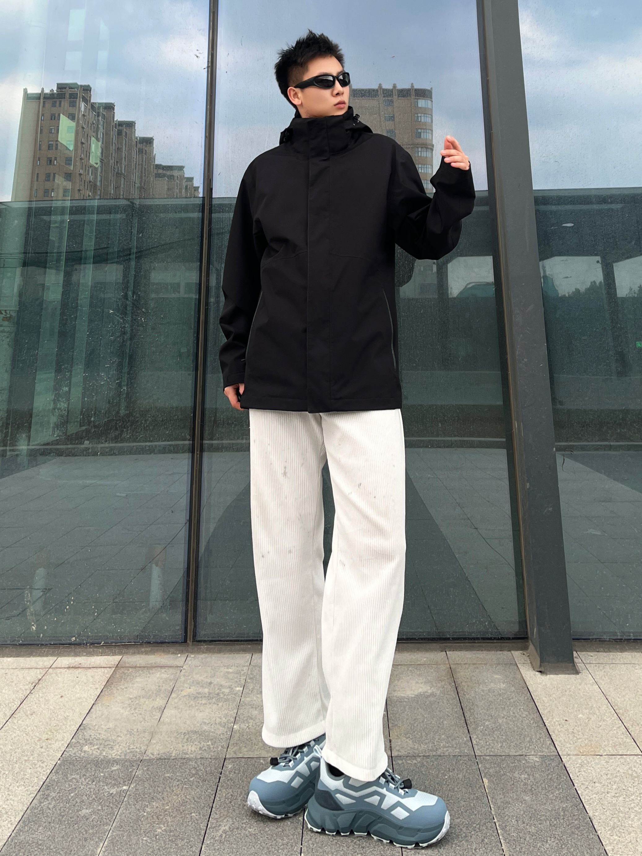 hello 大家好 我来分享今日穿搭了💗 今天是帅气男孩哦👦 上身一件时尚冲锋衣 搭配一条纯色长裤👖 一身的休闲感直接穿出来 秋冬氛围感十足 一身搭配时尚感满满 日常通勤完全OK 户外运动也是不错滴 直接穿出一身的时尚气息哦 推荐给大家哦