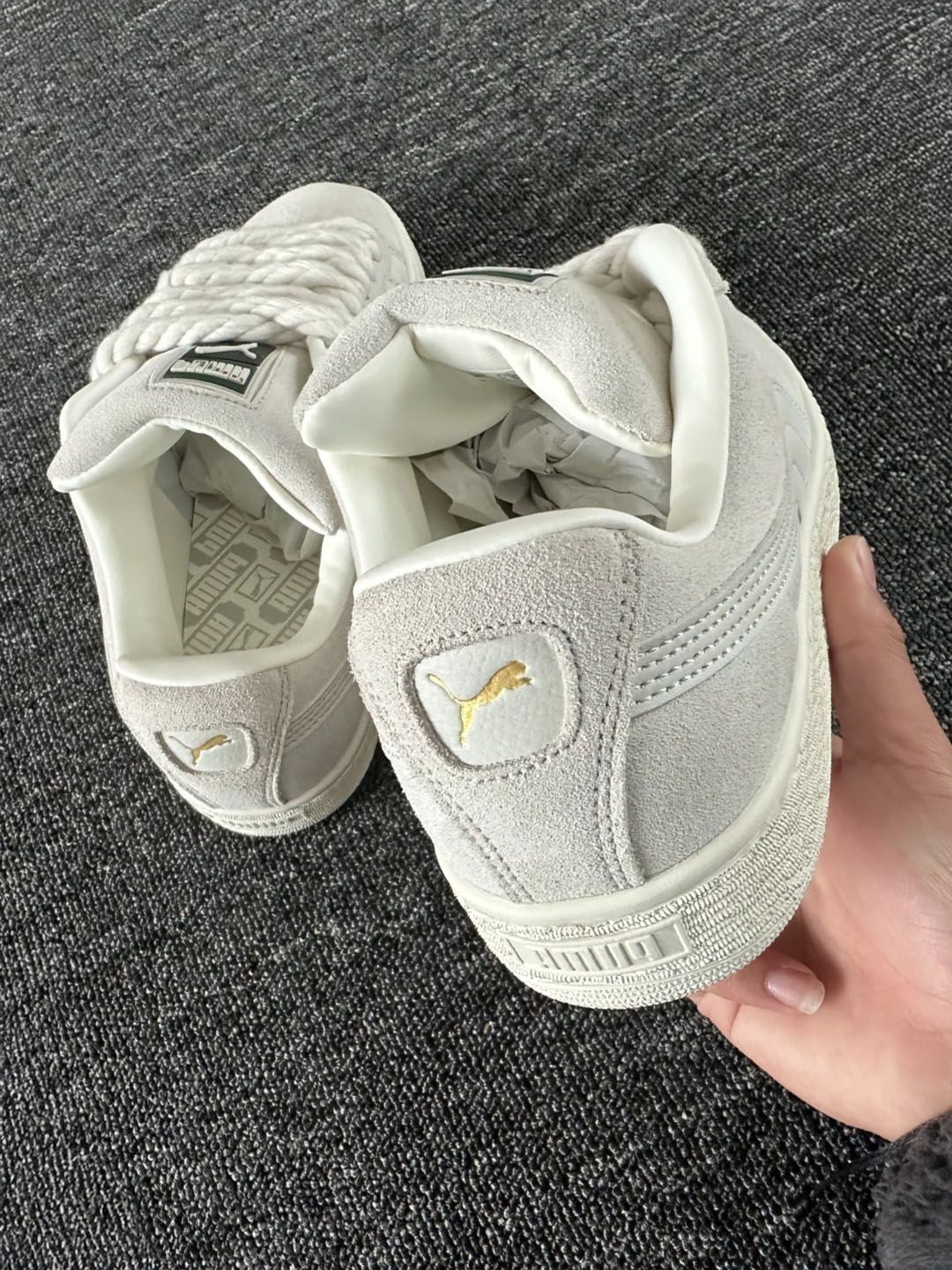 经典的黑灰,真嘟穿不腻~ 秋日氛围感也挺不错的 双鞋带的设计,小细节manman 平时搭配工装裤就吼cool 黑色也比较好打理,不容易脏 尺码的话不偏哈