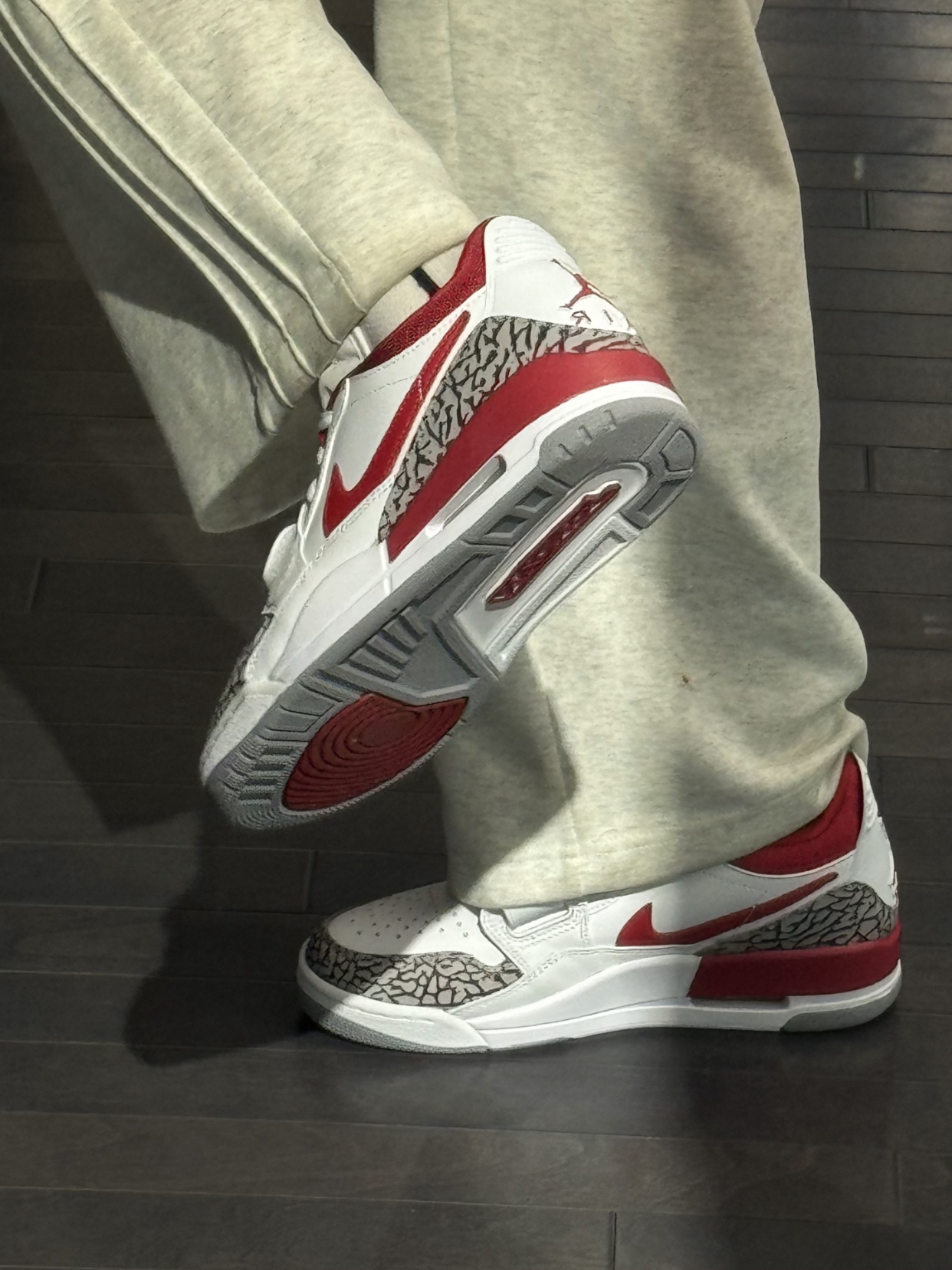 本篇笔记关联了Air Jordan Legacy 312 板鞋 运动休闲鞋 三合一魔术贴缓震复古回弹合成革 白色/红色等商品,为用户提供真实的使用体验和购买参考。
