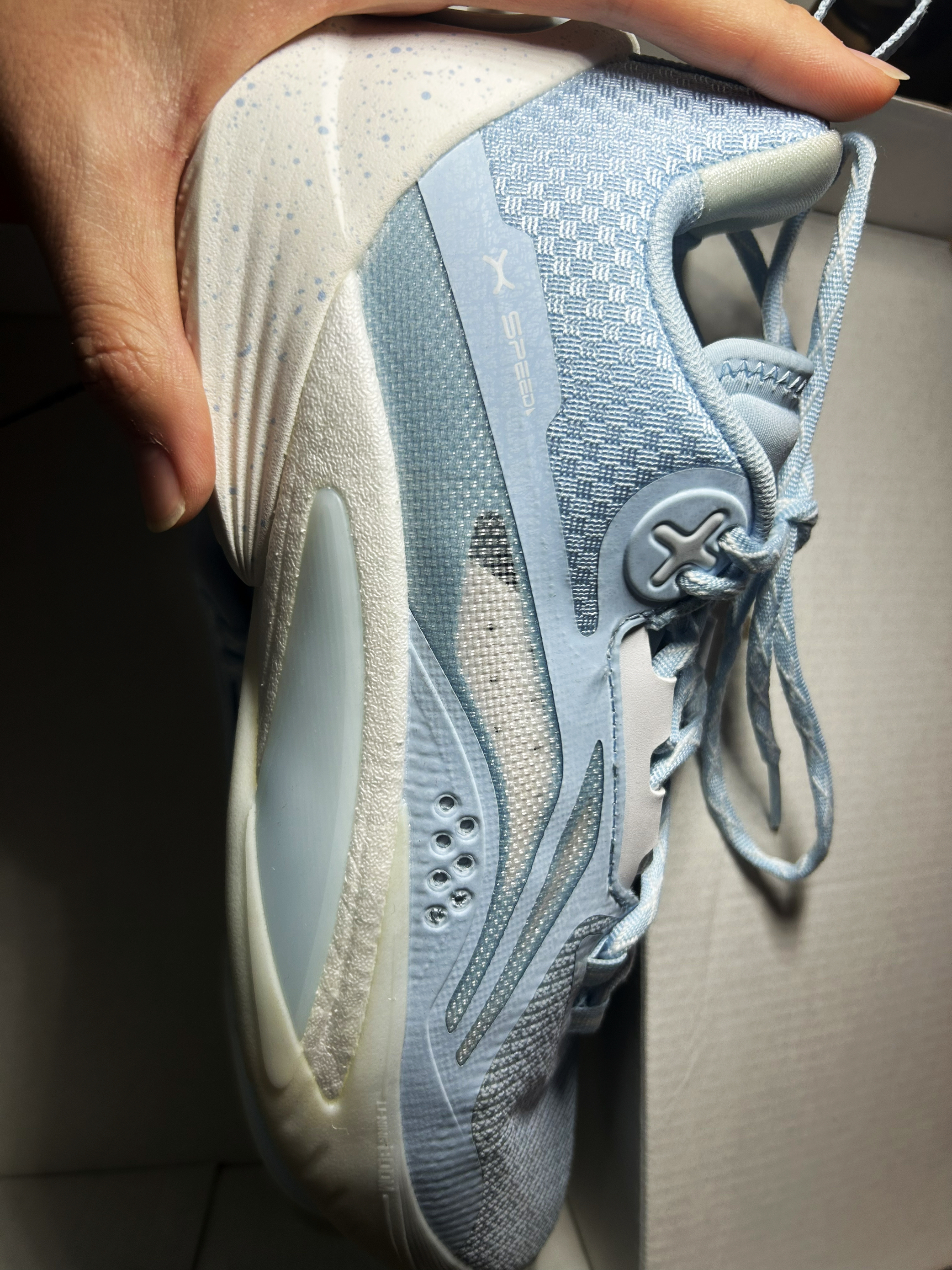 家人们家人们我又来,今天分享是一款实战好鞋,这款配色真的是众多配色中我最喜欢的,它不仅可以作为日常穿搭,实战效果也是嘎嘎的好! 李宁闪击10北卡蓝配色真的是看到图片的时候我一整个爱住了,清新的蓝色给人以一种自在而又舒适的气息!当我拿到这双鞋的时候鞋子给我带来的质感特别的爽!接下来我来说说这个双鞋给我带来的感受! 首先是鞋底的做工方面采用的是中底全掌䨻科技,鞋底采用的是后掌蜂窝止滑科技+前掌GC...