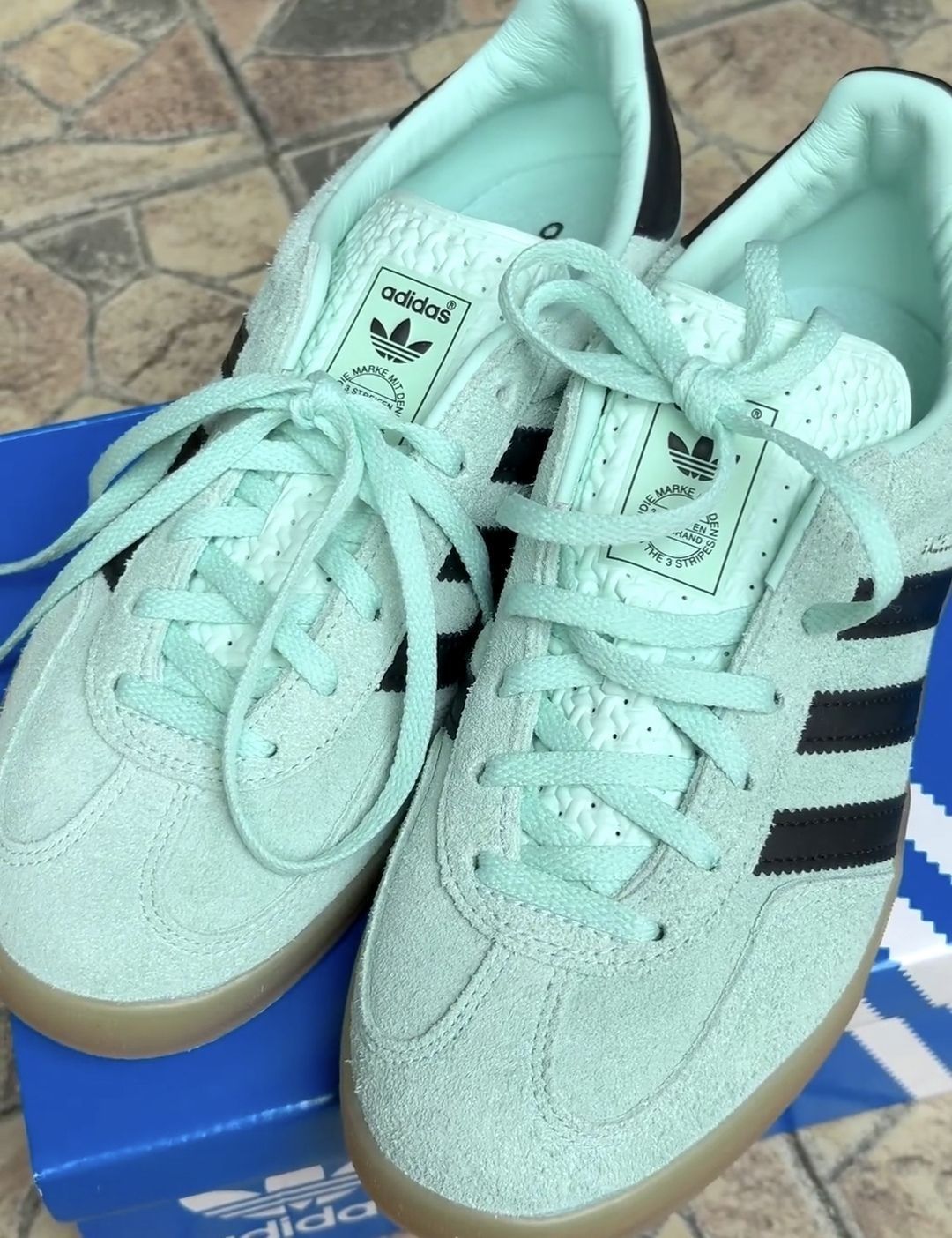 本篇笔记关联了【马思纯同款】 adidas Originals Gazelle Indoor T头鞋 德训鞋 板鞋 舒适缓震防滑耐磨 黑色/绿色等商品,为用户提供真实的使用体验和购买参考。