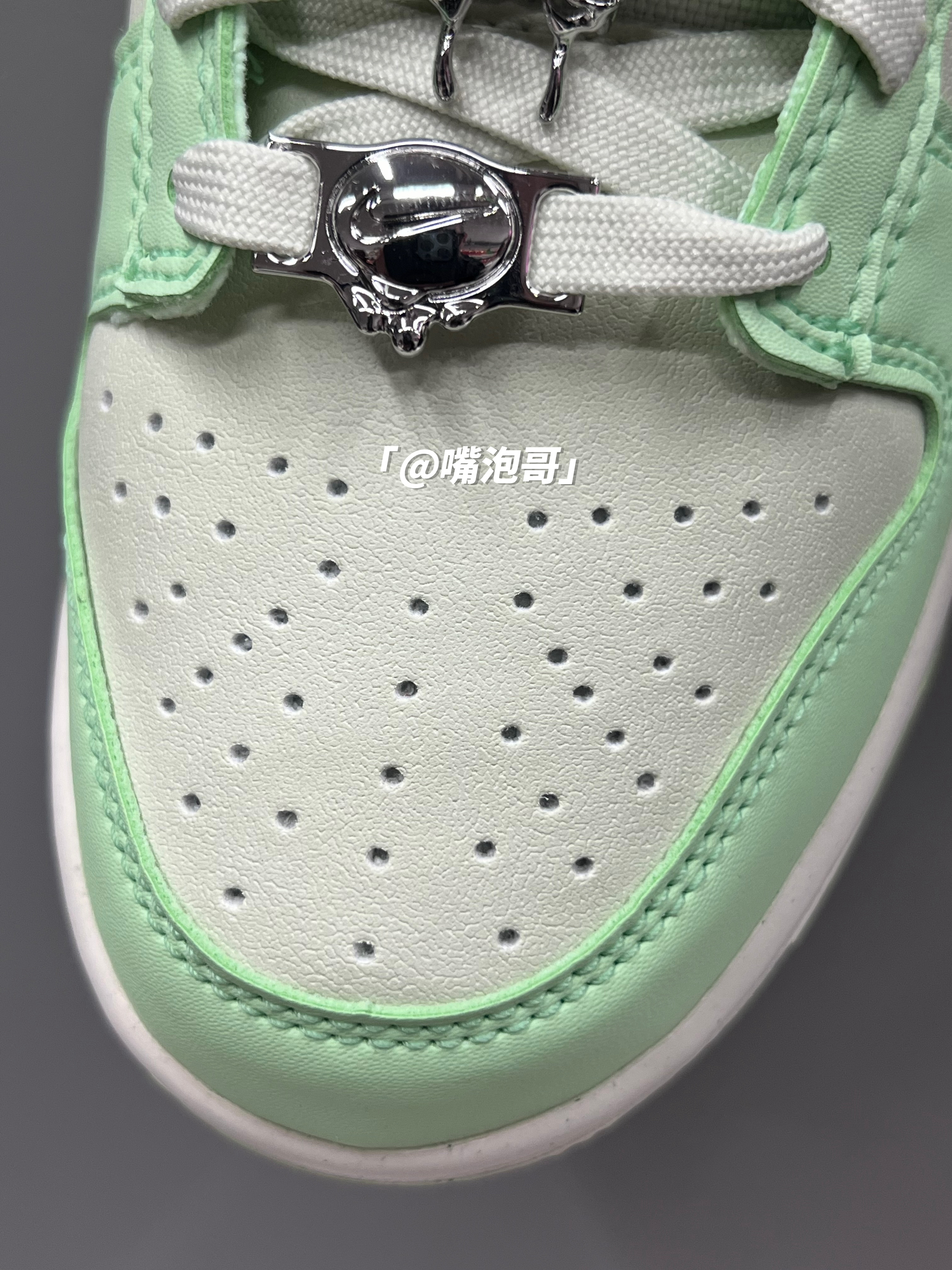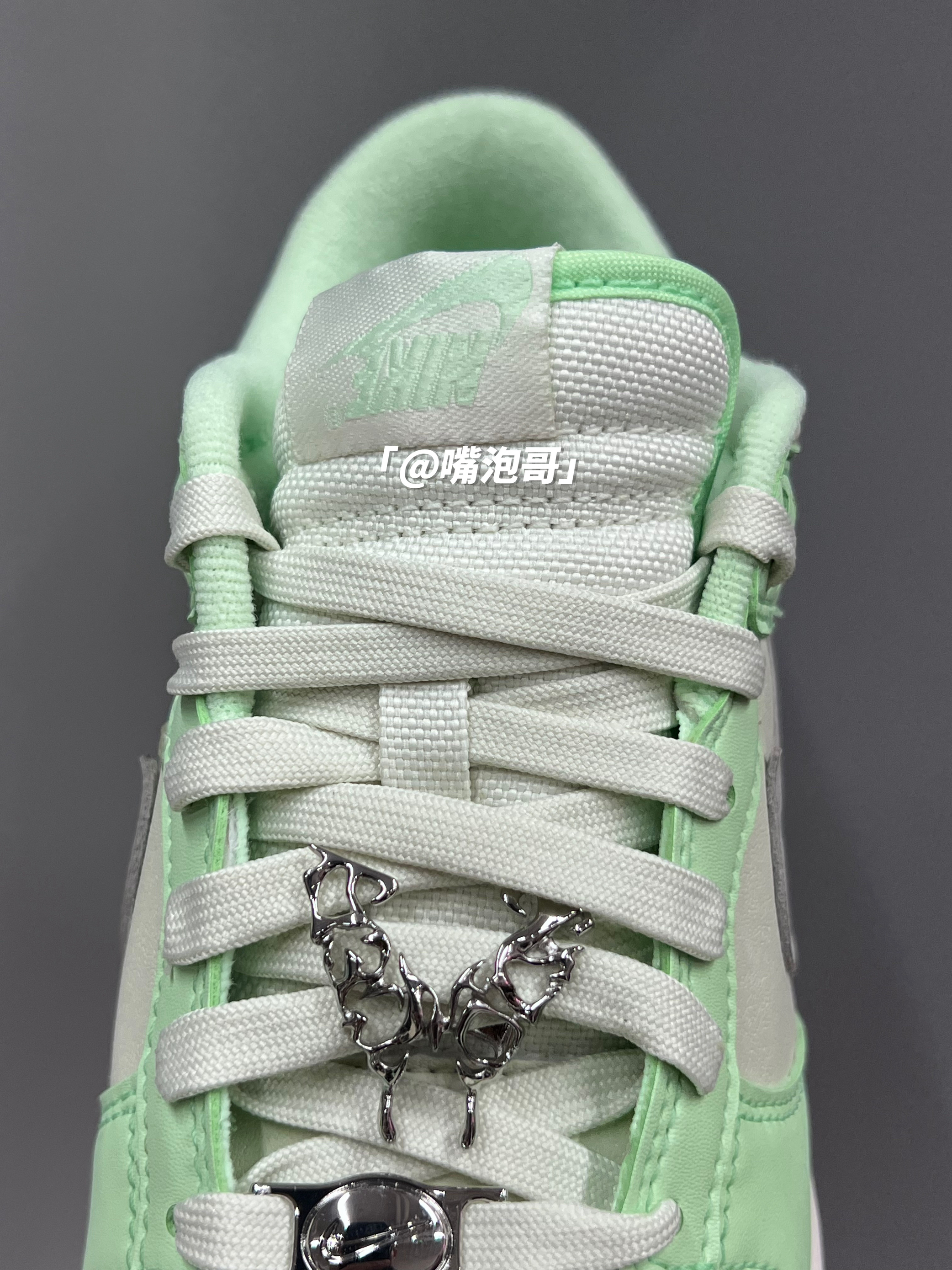 哈喽大家好! 今天跟大家来分享一双比较亮眼的板鞋,这双低帮的Dunk板鞋,外观设计依旧是经典的样式,但在配色上选用了灰白色与翠绿色的组合,所以整体在穿搭中还是很亮眼的,皮革的鞋面质感也不错,织物鞋舌也确保了透气性,但中底依然没有使用泡棉材料,所以脚感会偏硬些,日常刷街穿还是要注意使用时长。