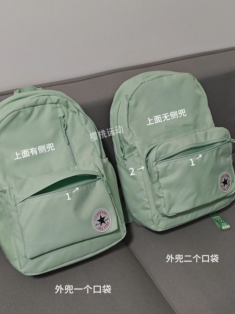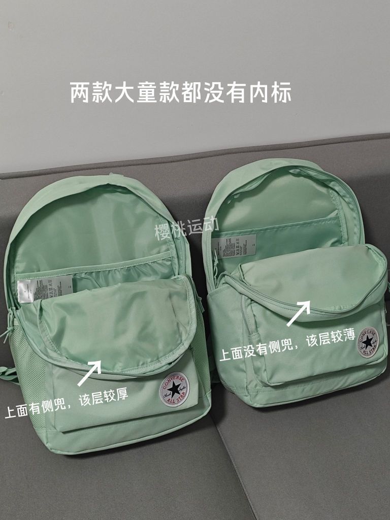 图中展示的都是大童款!适合小个子!容量适中 ★匡威经典款(侧面网兜版)芦荟绿vs匡威大童go款芦荟绿(不懂款式看合集 ! ! ! !) ★实物两款绿色几乎没有区别,官方宣传图拍摄有差别,两款大小也几乎一样 主要区别在:logo字体,款式造型,背部肩带设计,侧面水杯兜,肩带,具体参考图片
