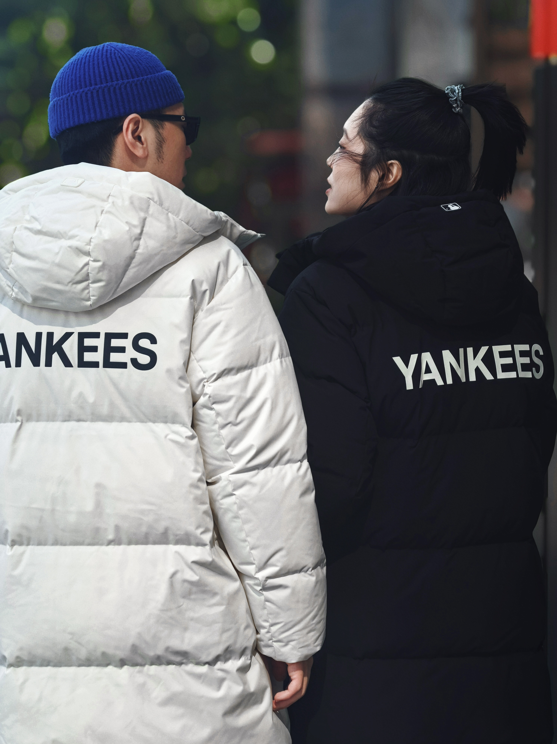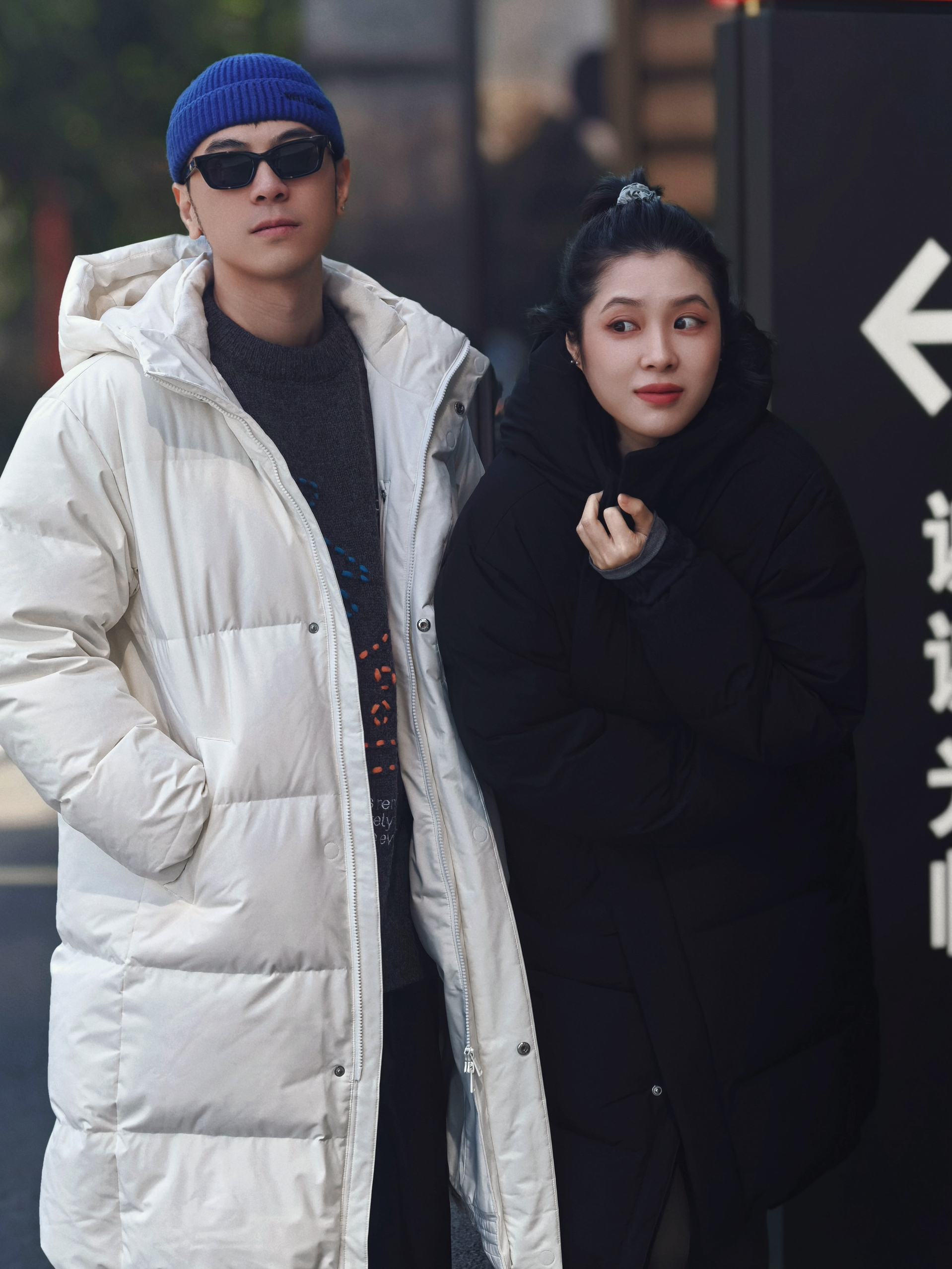 冬日的街头和他一起漫步🚶 特意穿的既保暖又时尚 忍不住拍几张和大家分享一下👇 - 以前在北京上大学的时候 就喜欢穿这种超长羽绒服 几乎所有艺术生人手一件 因为里面穿什么内搭在寒冷的室外依然保暖 黑色白色长款羽绒服都好看我俩简直是黑白配 背后的“YANKEES”印花彰显潮流 - 这样走在街头 既能抵御寒风也可以轻松吸引路人目光