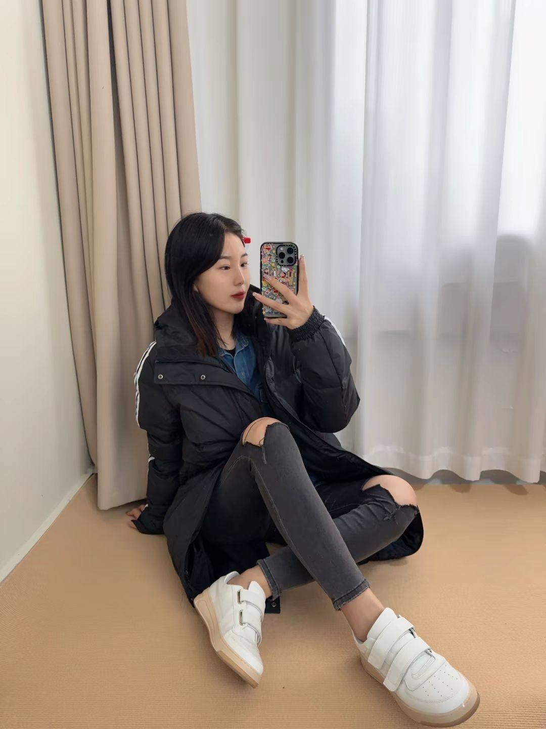 超级百搭的一款羽绒服呀韩韩嘟 很好搭配 还很耐脏! 特别适合学生党和早八人群~