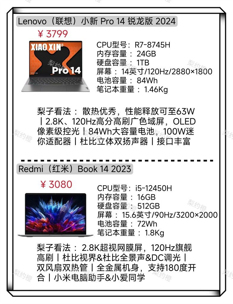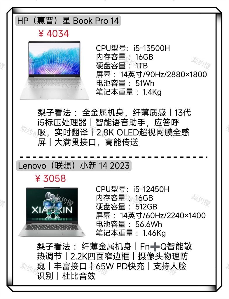 本篇笔记关联了Lenovo/联想 小新14 酷睿版 2023款 14英寸 笔记本 高色域 网课 轻薄本 高性能 标压 学习 办公 卷云灰、HP/惠普 星 Book Pro 14 酷睿版 2023款 14英寸 笔记本 超轻薄本 标压 微醺粉、Redmi/红米 Redmi Book 14 酷睿版 2023款 14英寸 笔记本 轻薄 高刷 星光银等商品,为用户提供真实的使用体验和购买参考。