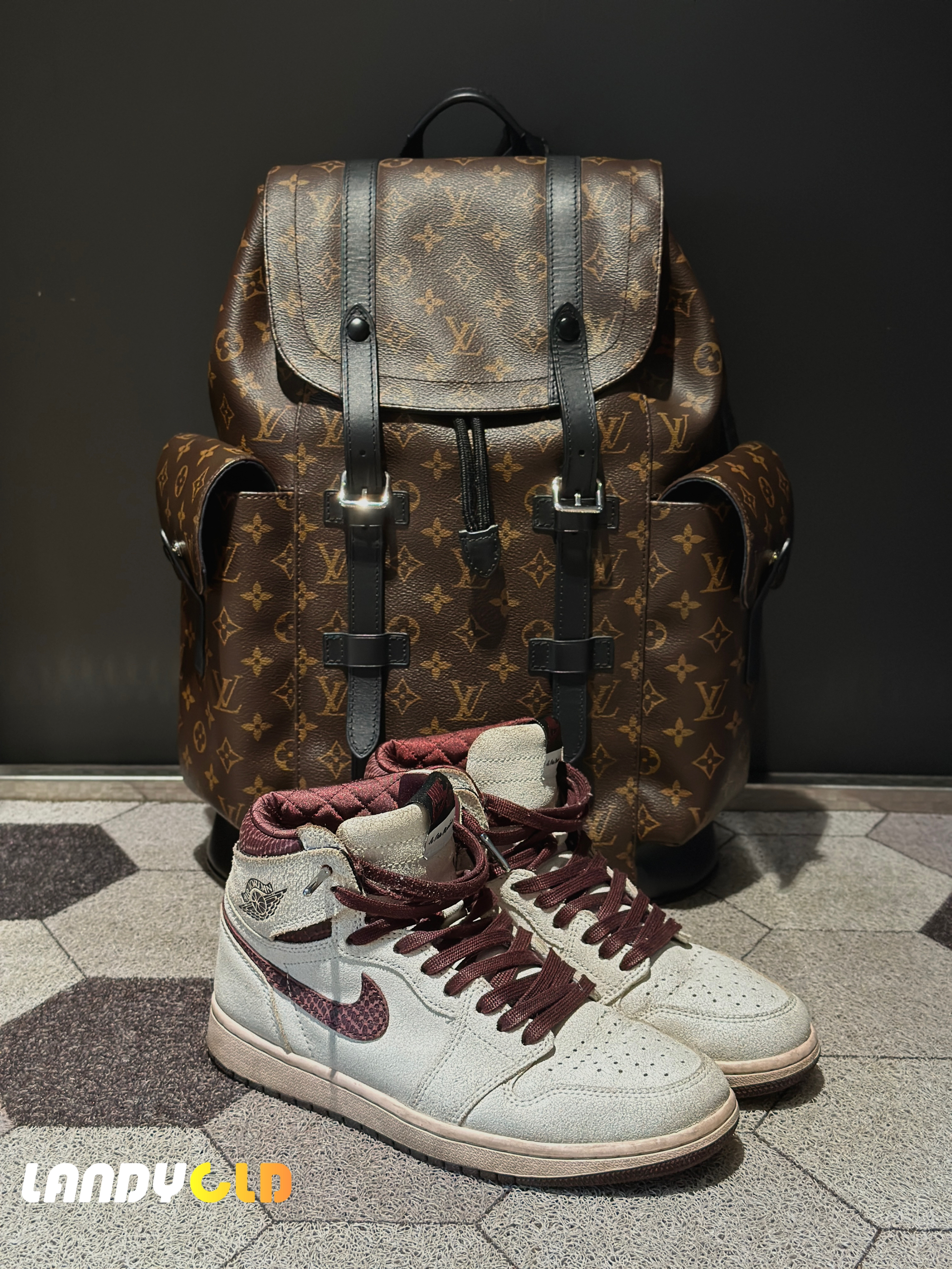 👟:AJ1荆棘玫瑰 🎒:LOUIS VUITTON 双子星 👠鞋子选择这双AJ1荆棘玫瑰,这双鞋是我非常喜欢的百搭款式,而且整体的细节和层次比较丰富,拿来配这套,我觉得挺合适的。 🎨包包选择lv双子星,这个包,简直是我上课好搭子,舞鞋一装,两部手机一扔,车钥匙一扔,提包走人。哈哈哈