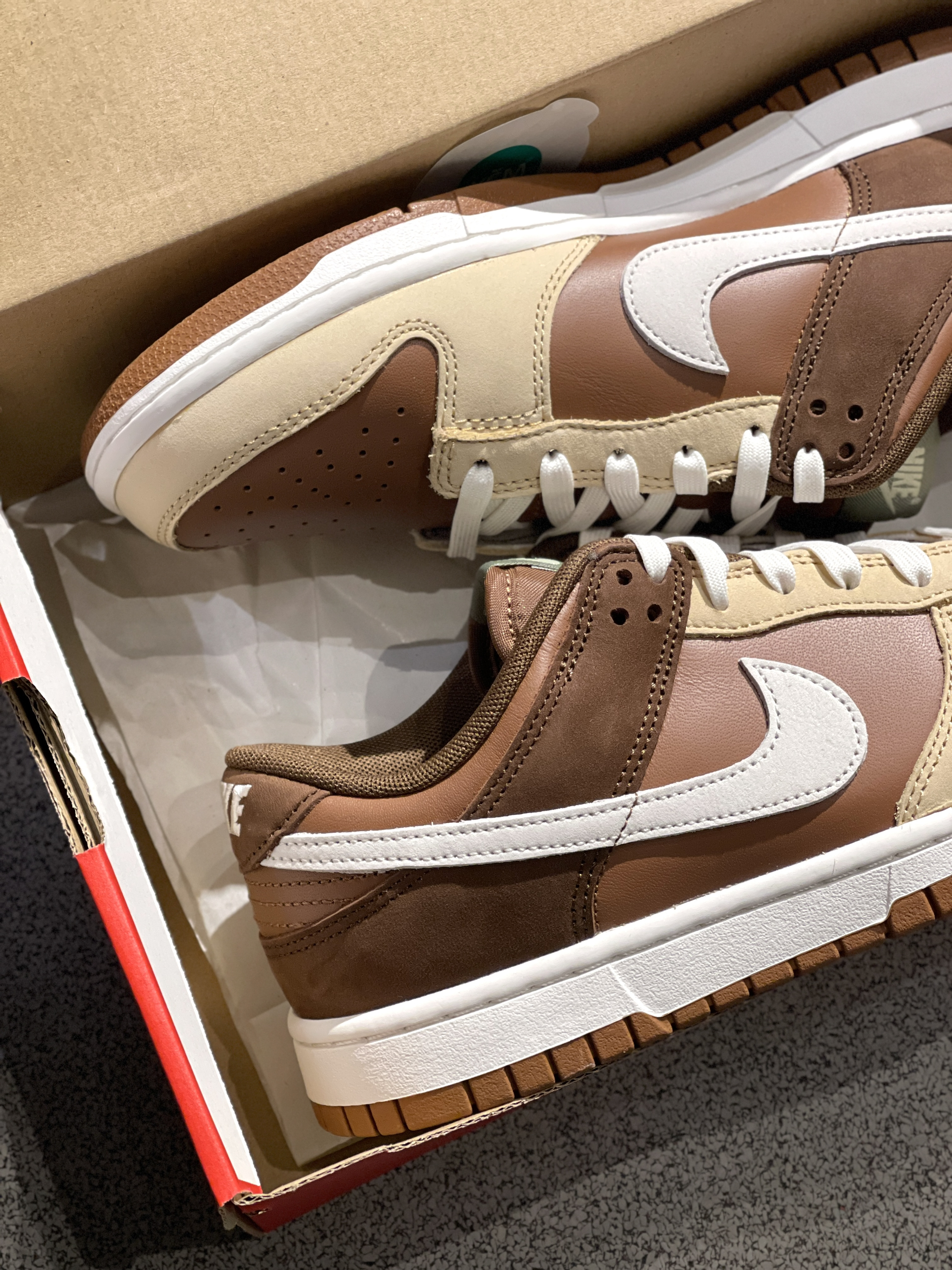 秋冬季节还得是美拉德能打!🤩 Nike|Dunk Low 低帮板鞋“棕色”🏾,开箱经典的低帮Dunk鞋型,轻便又舒服~🉑️棕白拼接设计,整体层次感满满!热门大火的美拉德风格,穿搭起来也是很简单~😍