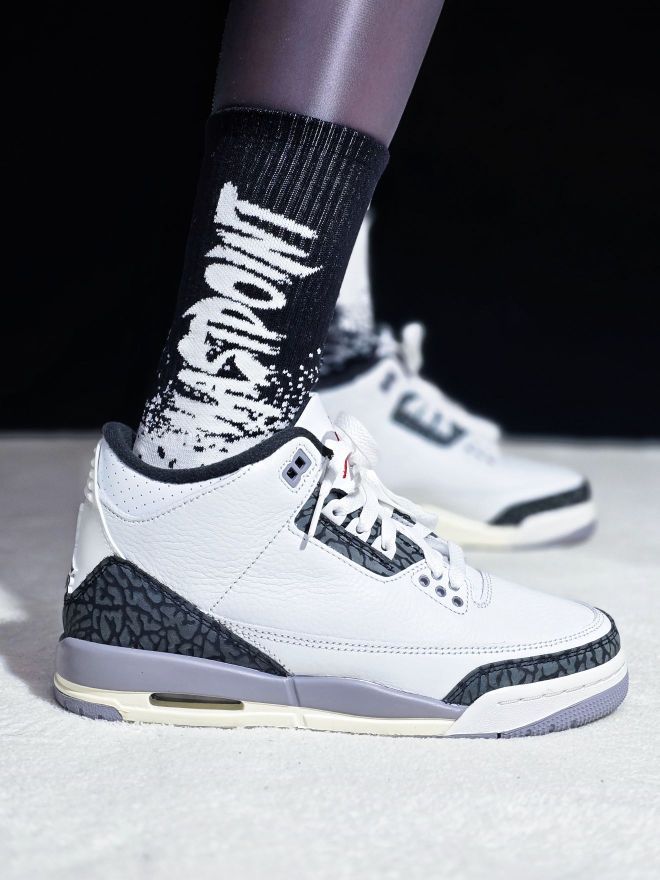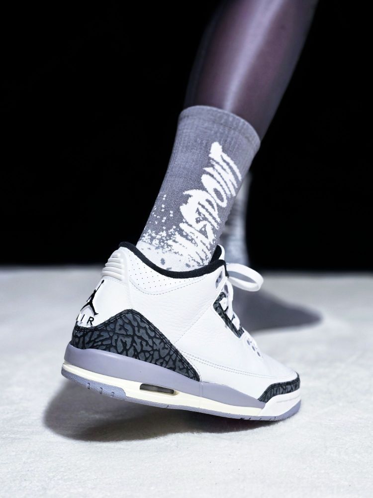 本篇笔记关联了Air Jordan 3 运动休闲鞋 潮流复古抓地支撑缓震合成革圆头 GS/顶峰白/火红/水泥灰/黑色、Mast point/麦左 潮流百搭中筒袜 S2W131 1黑1灰2白 4双等商品,为用户提供真实的使用体验和购买参考。