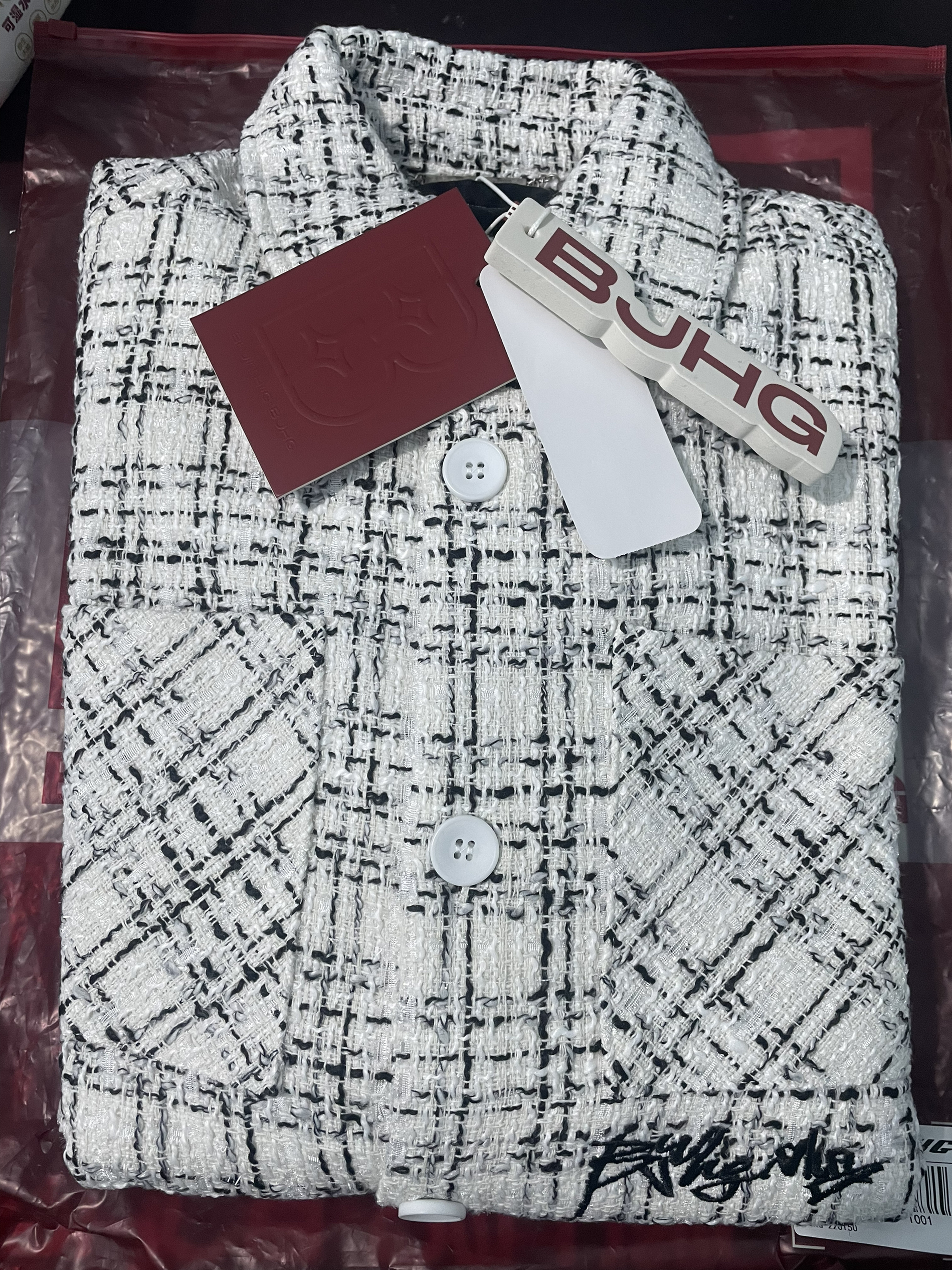 本篇笔记关联了BJHG 美式高级感小香风格纹翻领毛呢长袖夹克 男女同款 BJHG-22J150 霜白等商品,为用户提供真实的使用体验和购买参考。