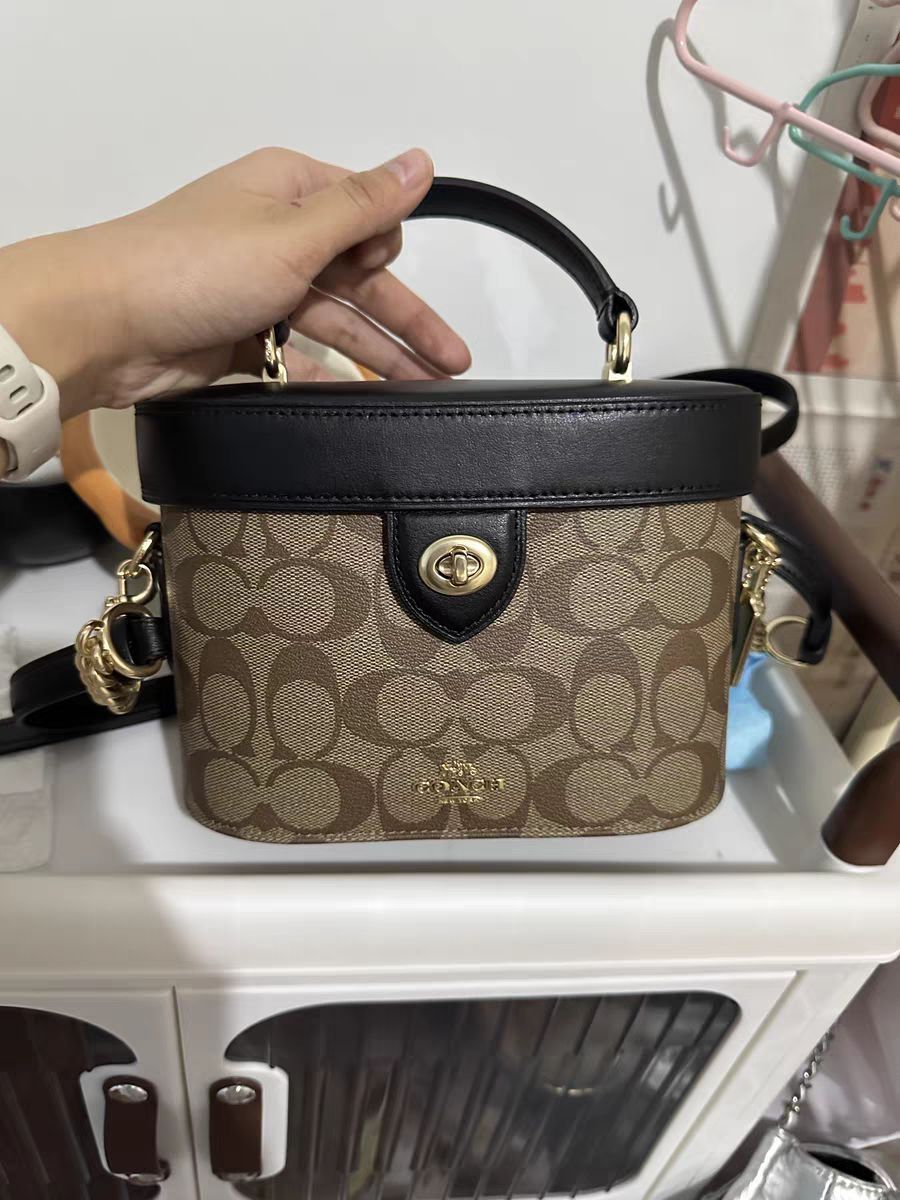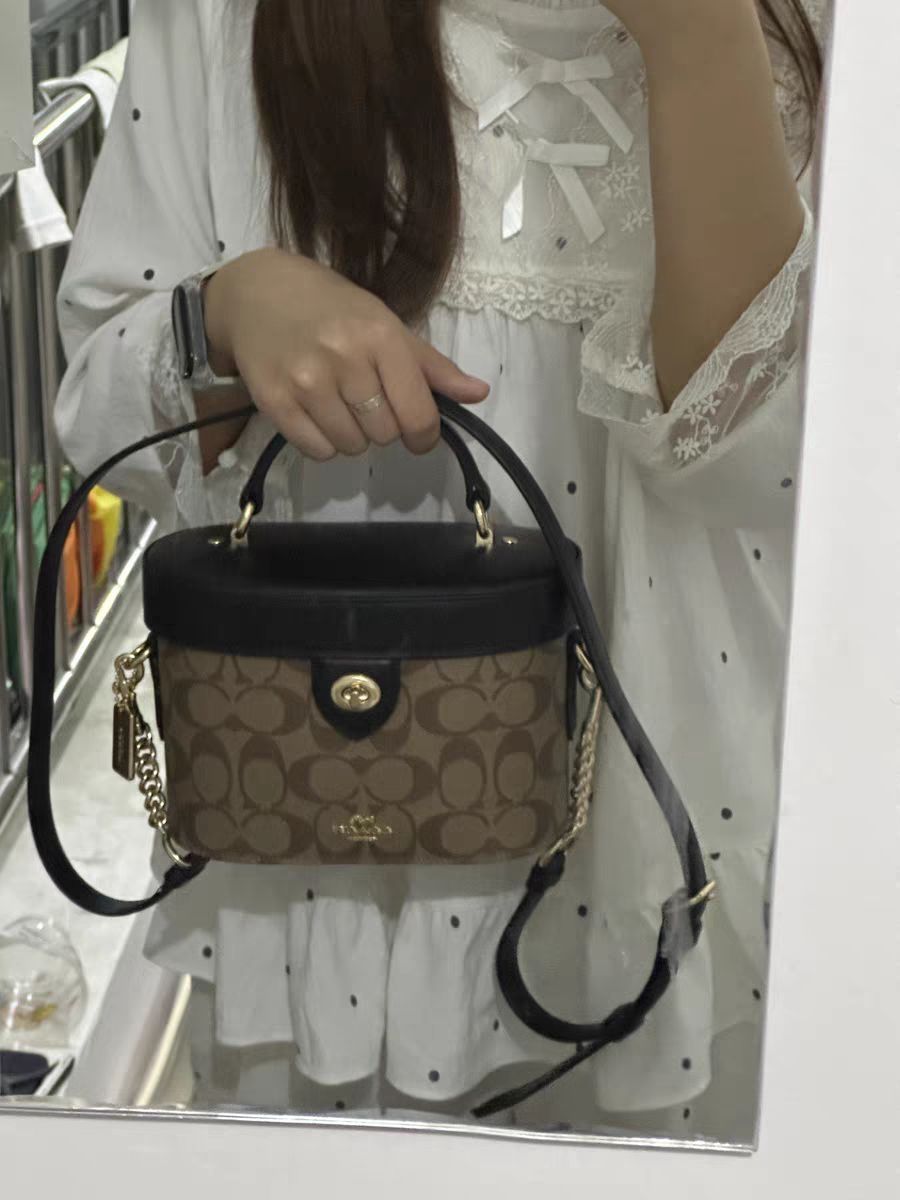 本篇笔记关联了Coach Kay 20 小号 经典老花满印徽标Logo帆布配牛皮革手提桶单肩盒子包斜挎包 深棕配黑等商品,为用户提供真实的使用体验和购买参考。