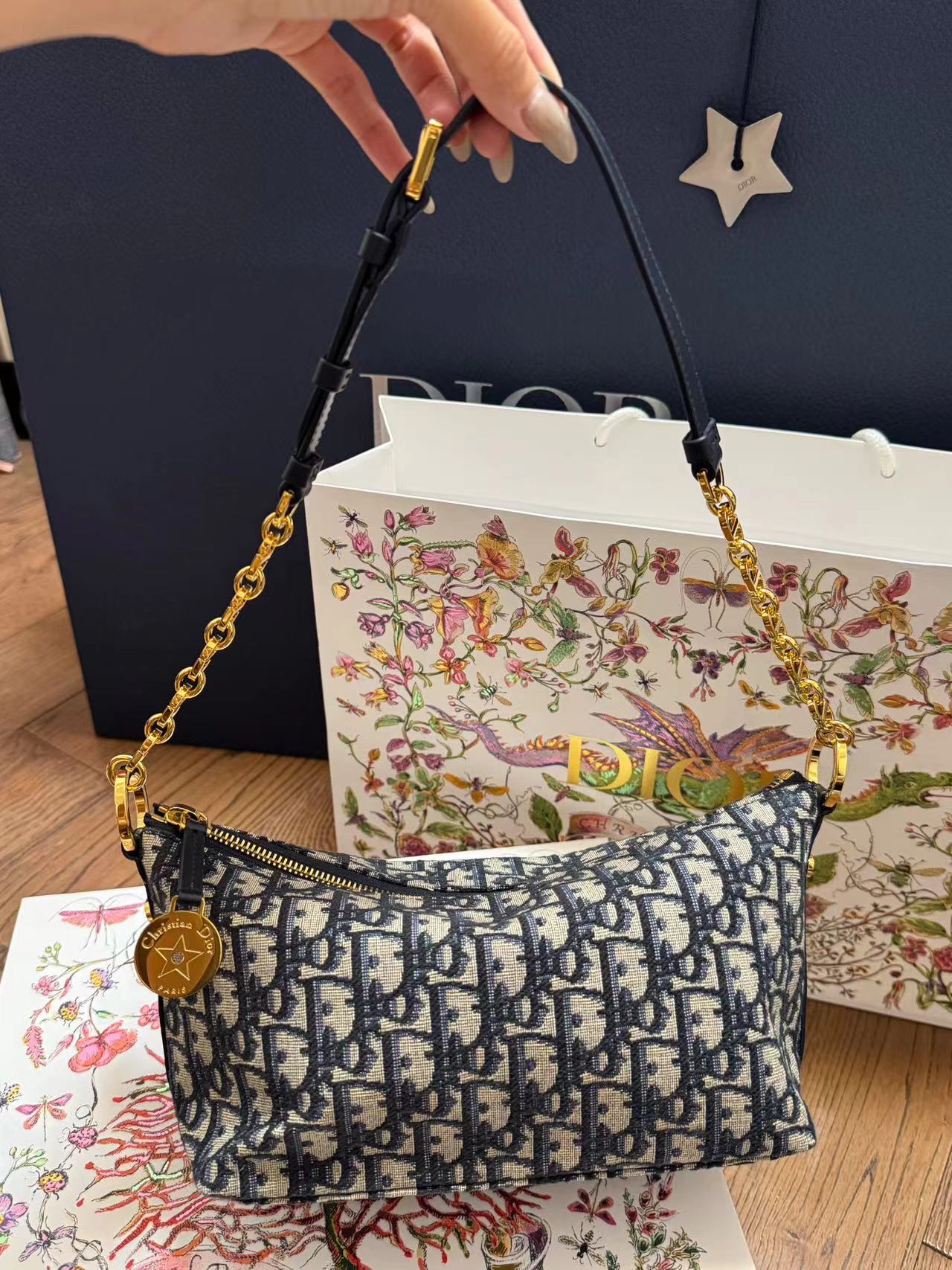 本篇笔记关联了Dior/迪奥 Diorstar Hobo 可调节肩带星星圆形饰牌Oblique印花提花面料手提单肩包 蓝色 等商品,为用户提供真实的使用体验和购买参考。
