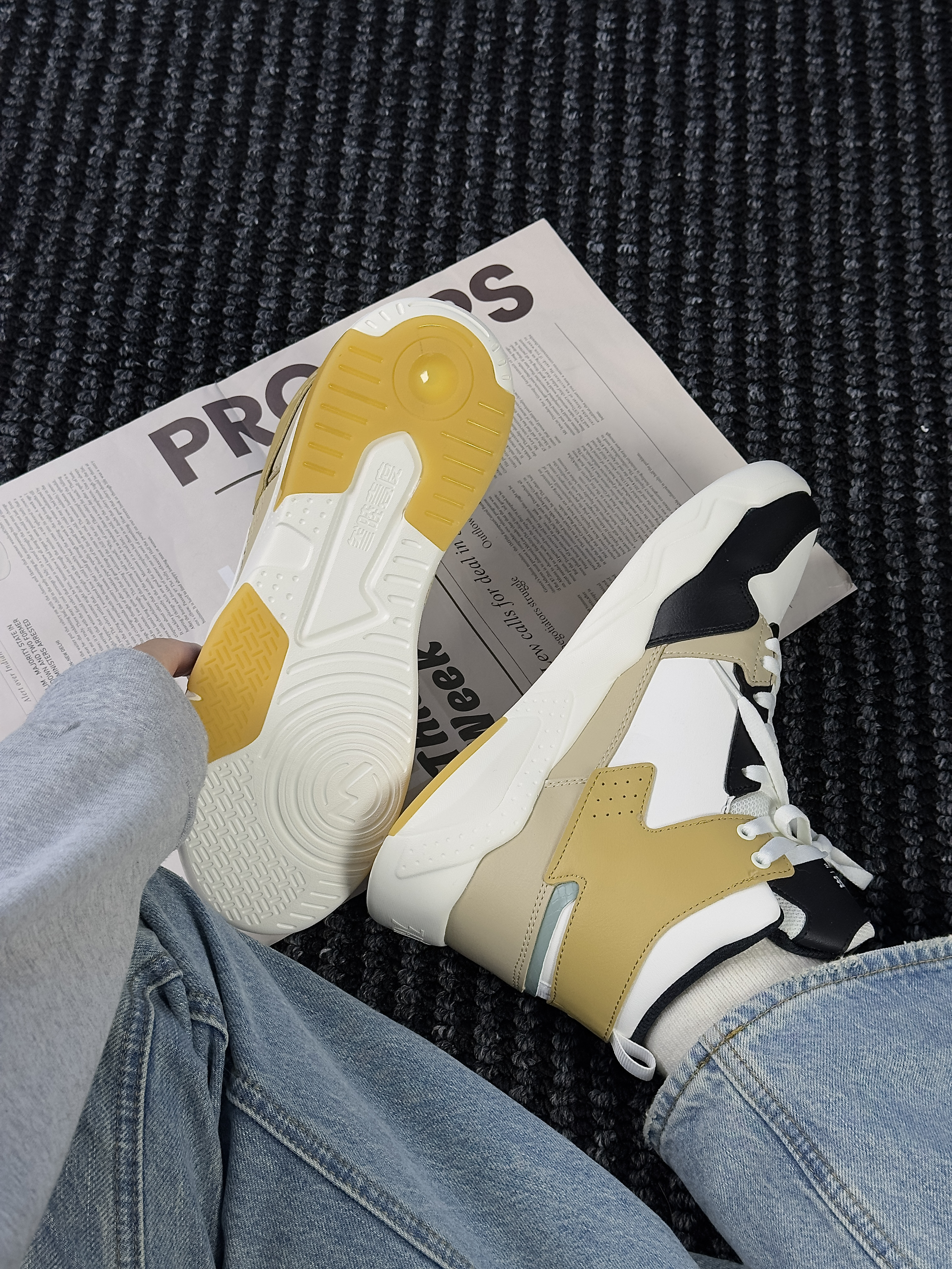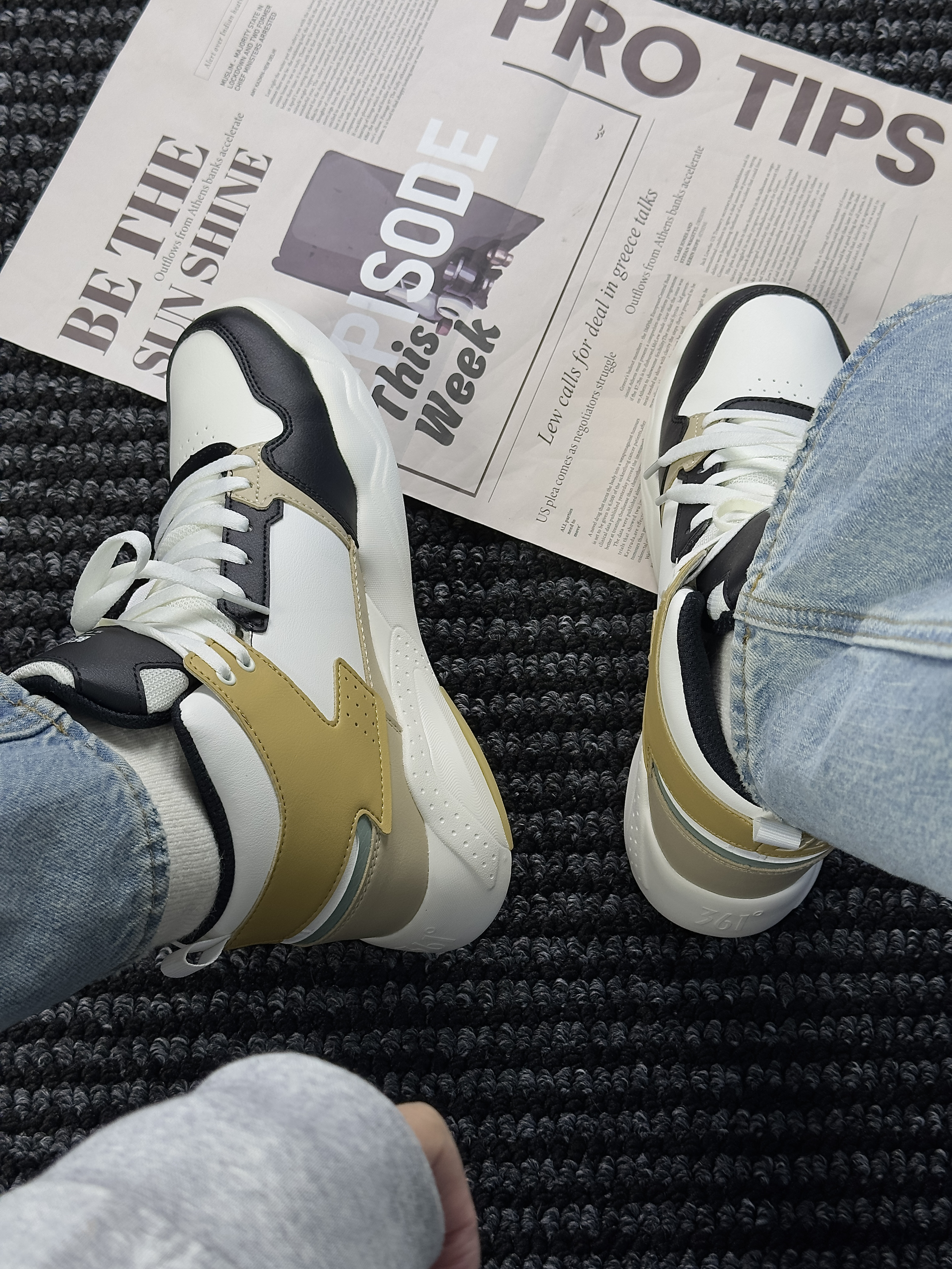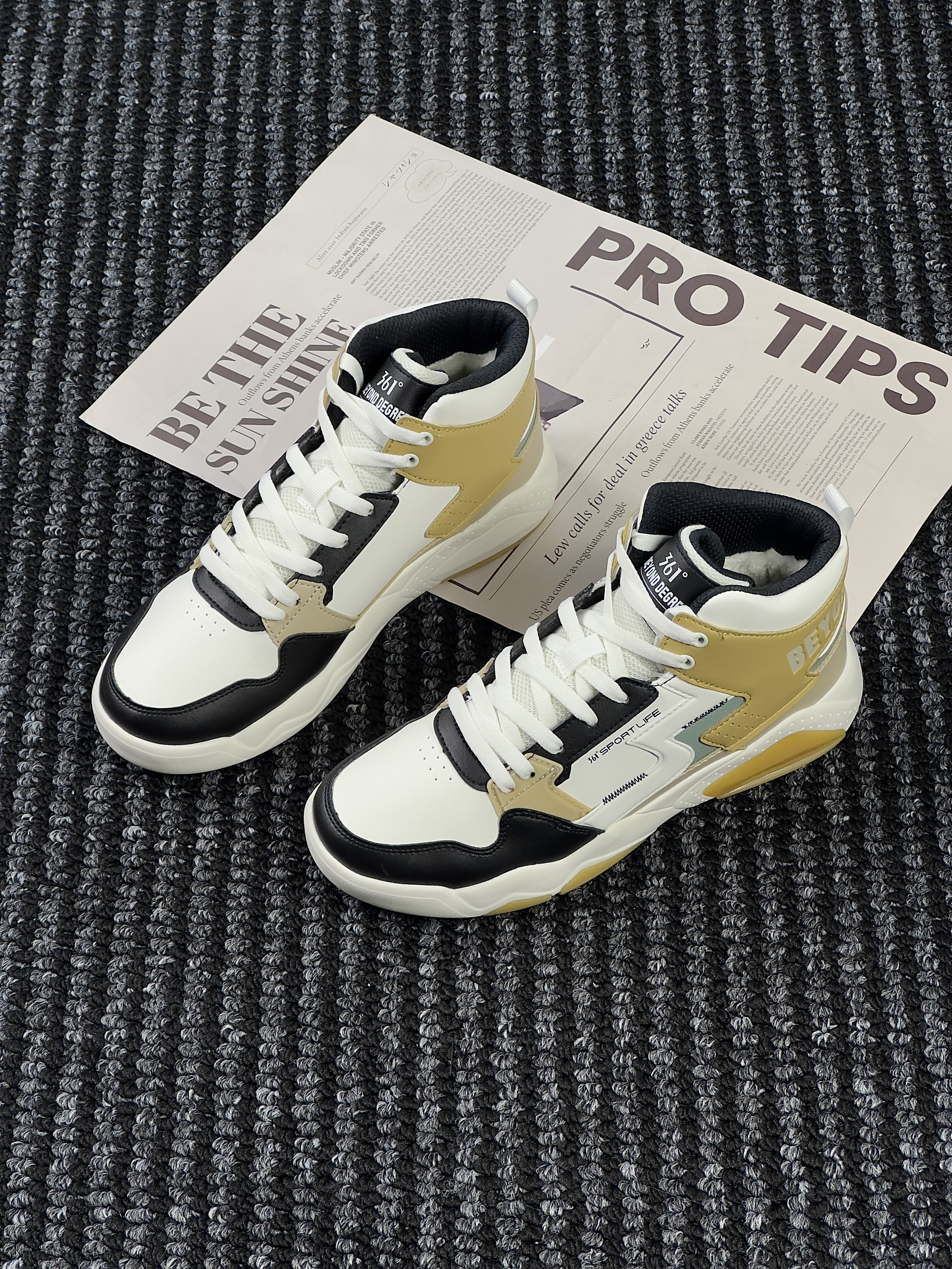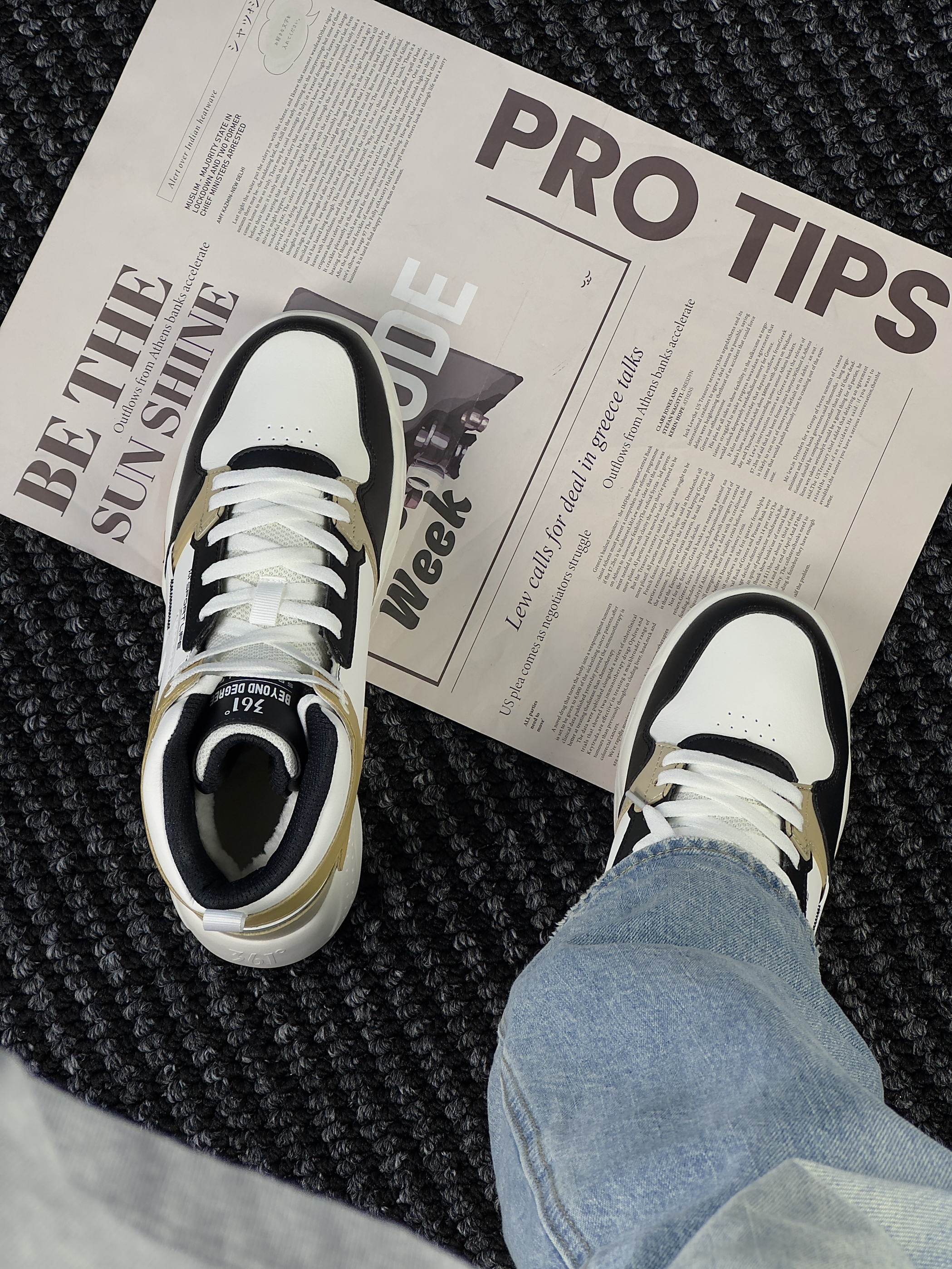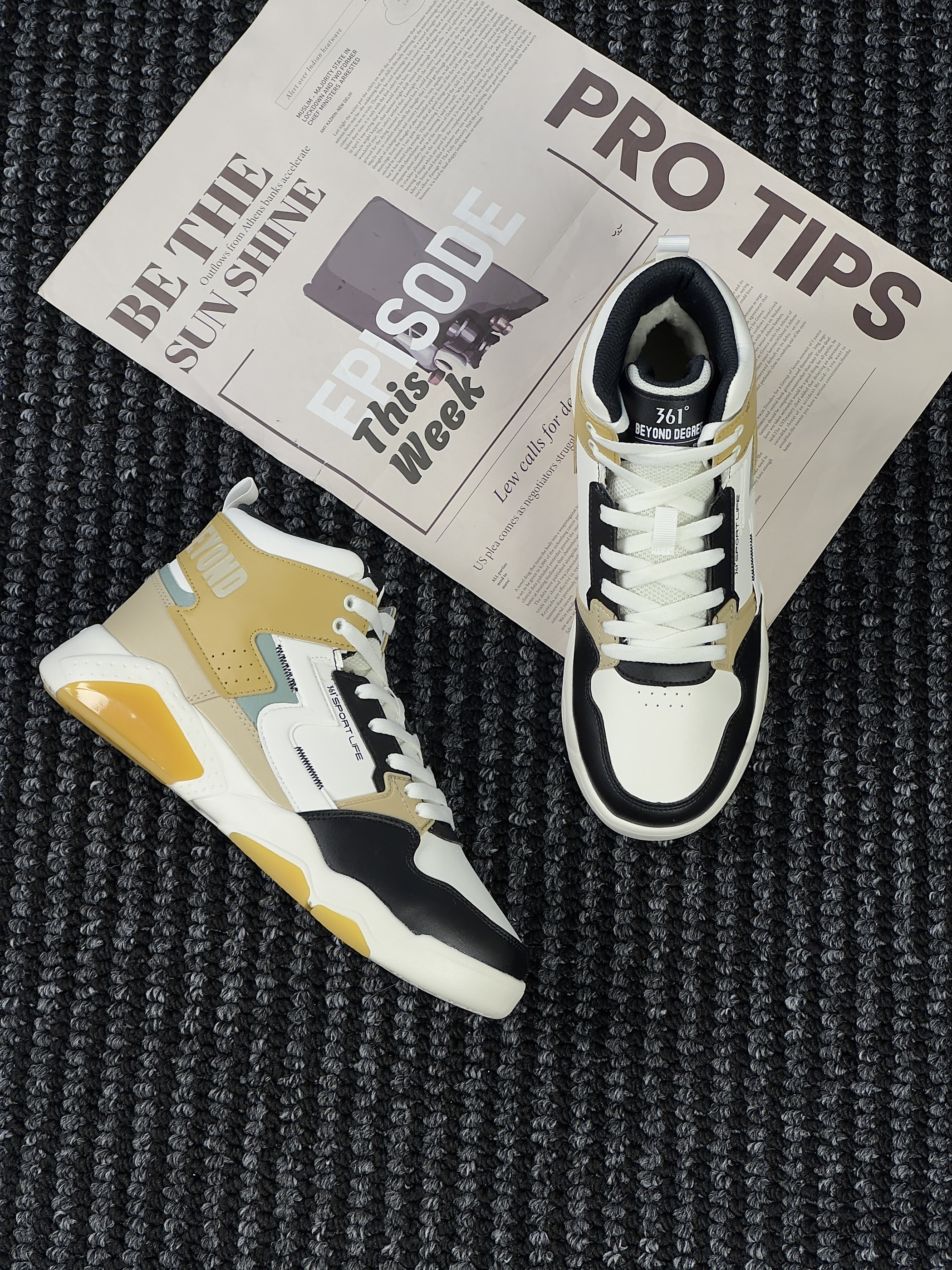 hello,这里是陈白羊🐑! 今天给大家分享一款361°的高帮板鞋 经典黑白色系的组合,再加上黄棕色🟡的细节 复古感一下子就上来了 还蛮适合秋冬的配色~ 皮革线条的拼接鞋面,不仅好打理也丰富了层次感 内衬的话还填充了厚实软糯的绒毛💭 冬天穿个薄袜子上脚也是暖暖呼呼的 而它的中底则是由轻量化的发泡☁️材质构成 踩起来软弹舒适 还有着3cm的增高效果 日常通勤拿去搭牛仔裤👖和工装裤都吼吼看…