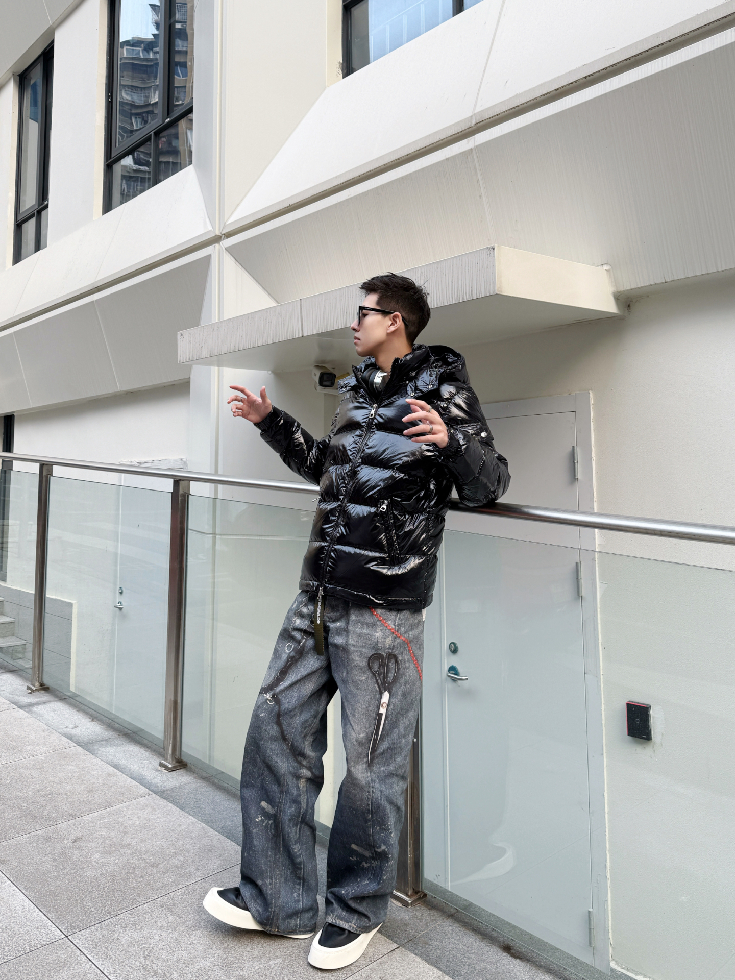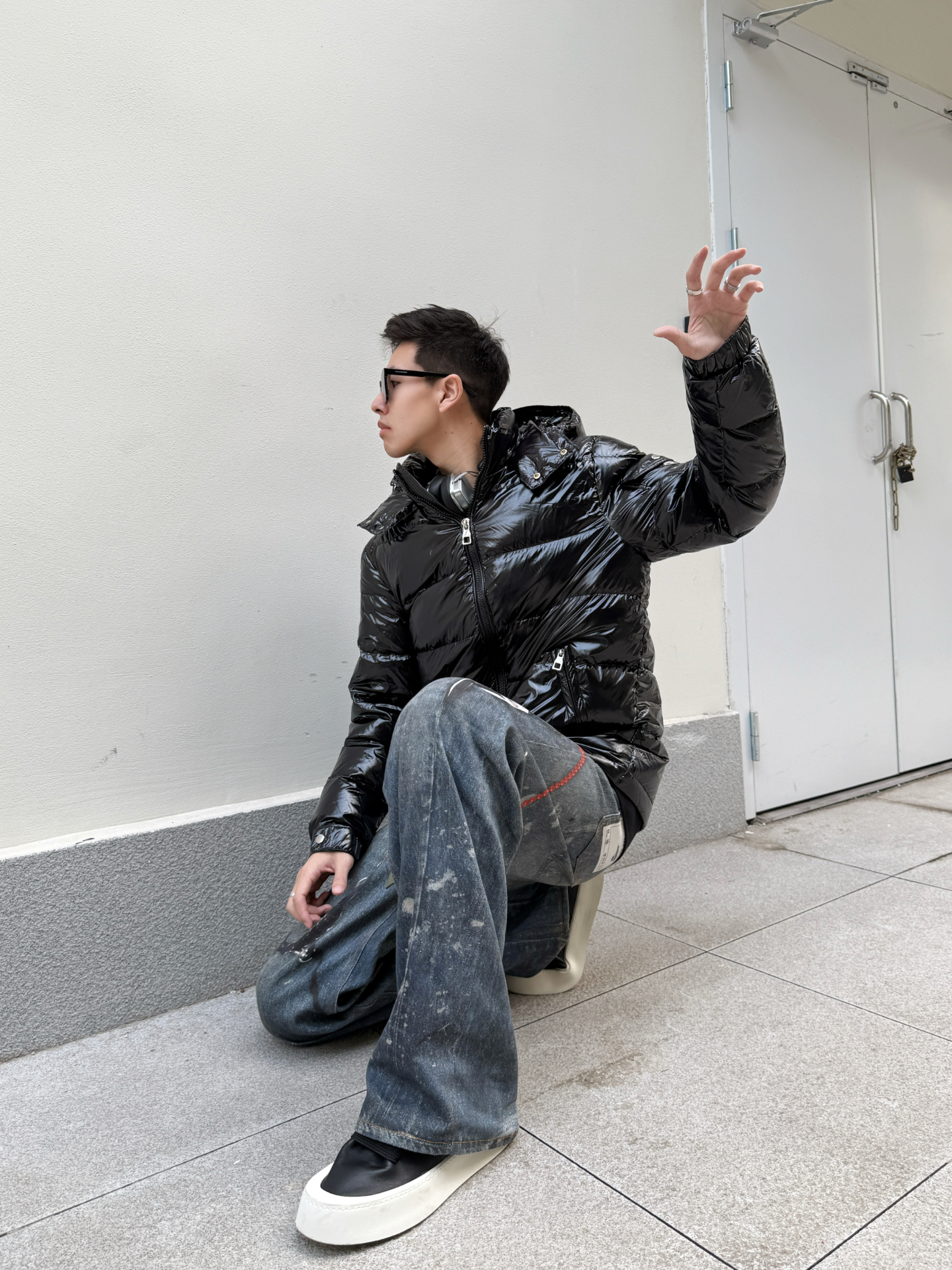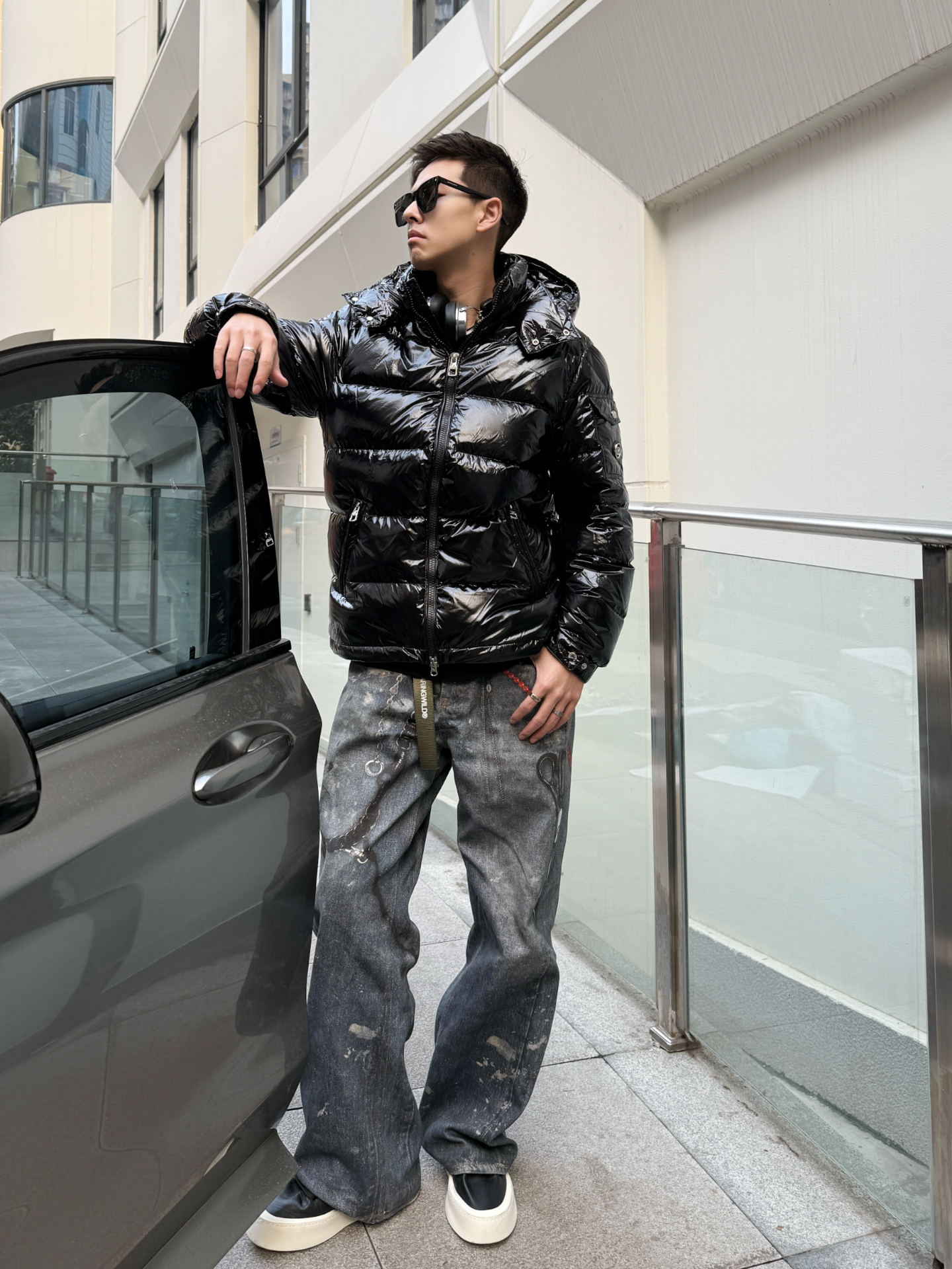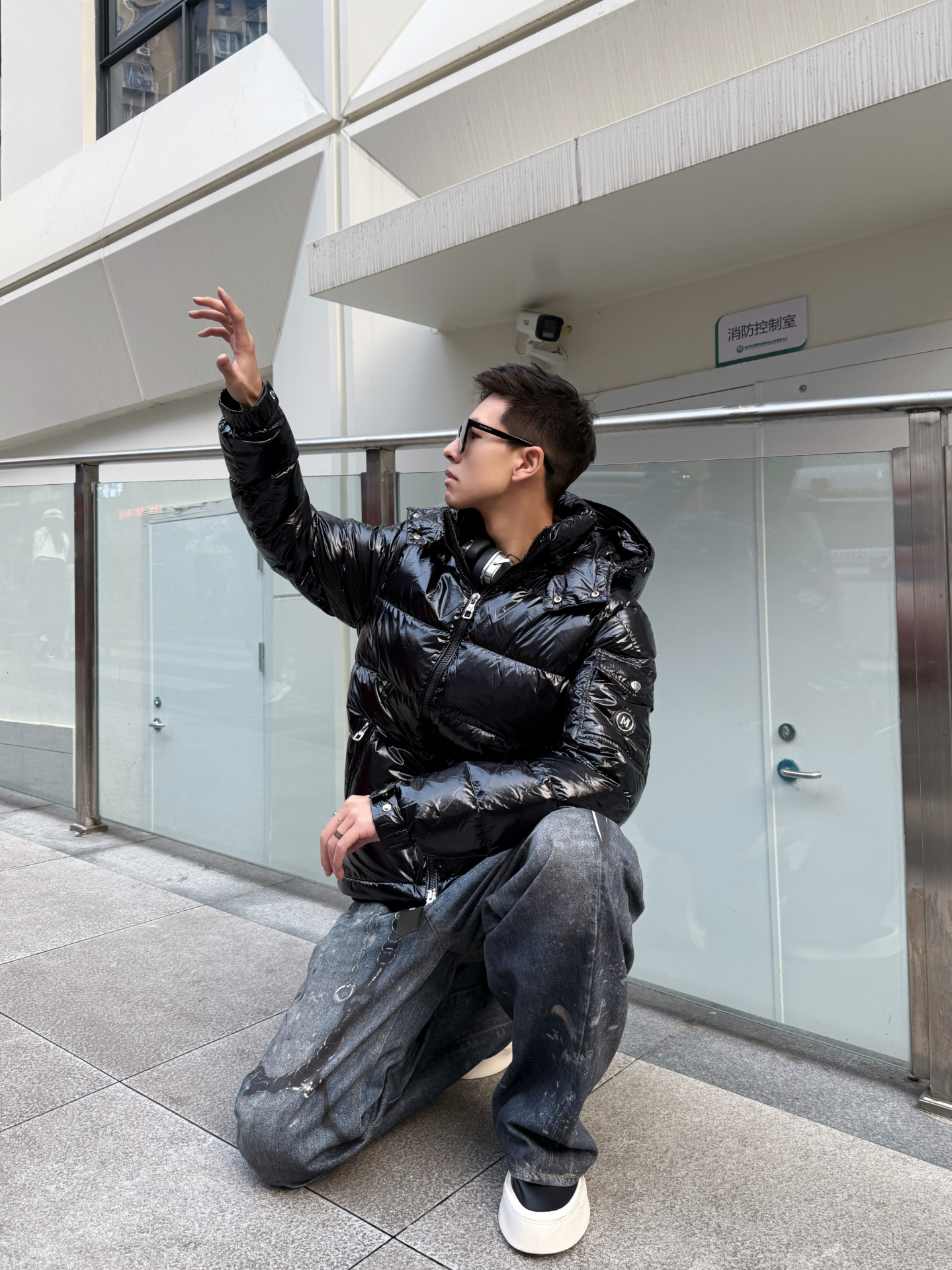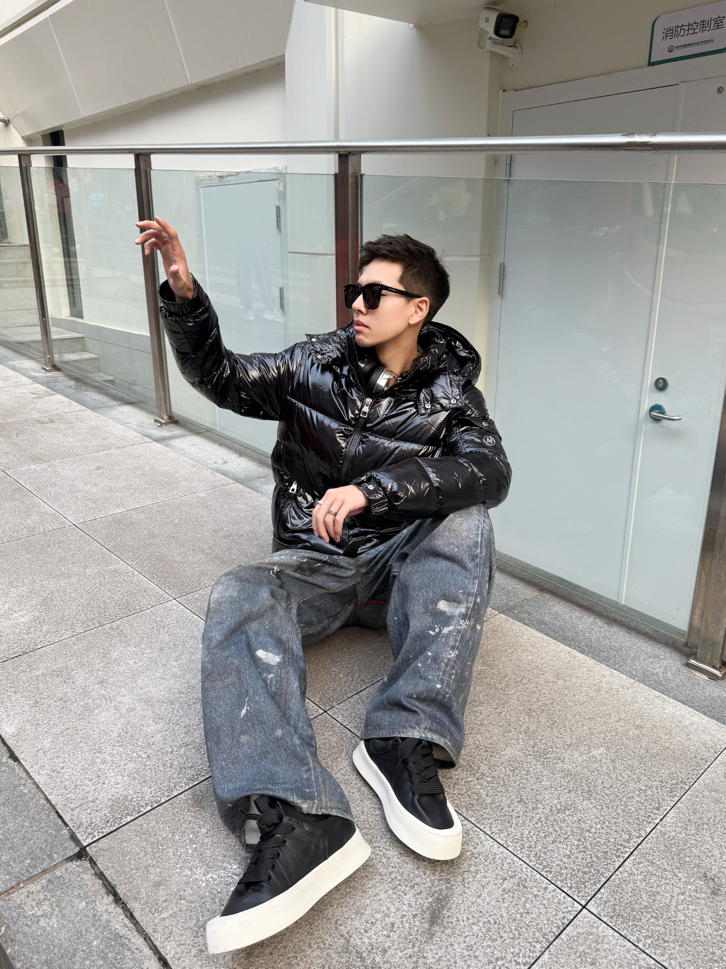 OOTD今日份休闲风穿搭 黑色亮面羽绒服搭配蓝色数码印花牛仔裤 鞋子则是搭配了一双黑白板鞋 整体超级简约 衣服来自 #MANGANO 亮黑色真的超级高级的配色 整体看起来黢黑靓丽 上身效果真的赞 衣服整体版型偏宽松 充绒量也很足 蓬松的质感真的超级暖和 冬日保暖直接安排上啦 袖口的小口袋和小徽章的设计也是超级细节 看起来层次感更加丰富 也让整体看起来更加高级 #ootd冬季穿搭 #今日份oot...