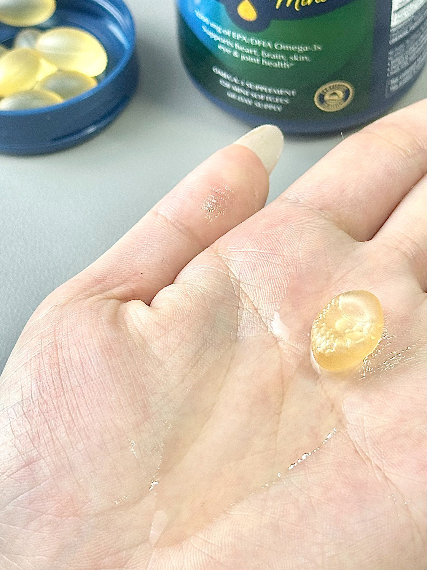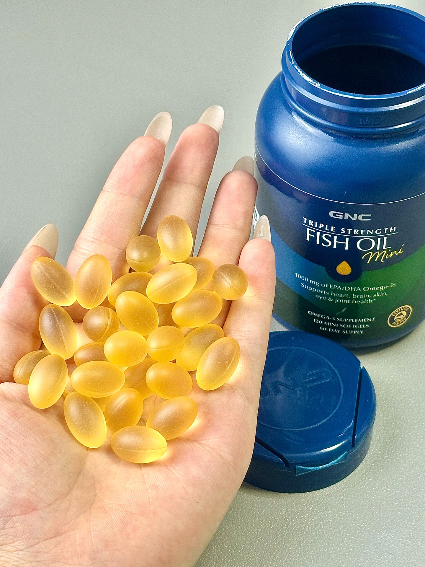 明明自己才20 来岁就觉得自己每天都累累的 上班坐久了 ,手脚还是有点麻木的感觉~ 眼睛也是迷迷糊糊的 没有精神! 后面妈妈叫我尝试试一试鱼油 就是这个GNC97鱼油 鱼油纯度高达97% 每天都会吃2颗 坚持使用下来确实感觉到在睡眠变好了 人也精神了!主要是眼睛都润润的~ (图源网络侵删)