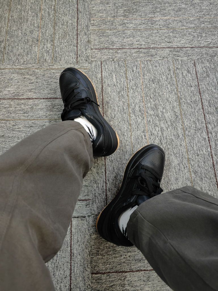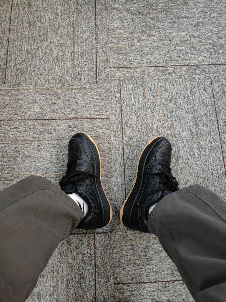 拥有一双黑色板鞋就拥有一件百搭神器,样式和脚感都很好,价格也不贵,日常通勤运动都可以。