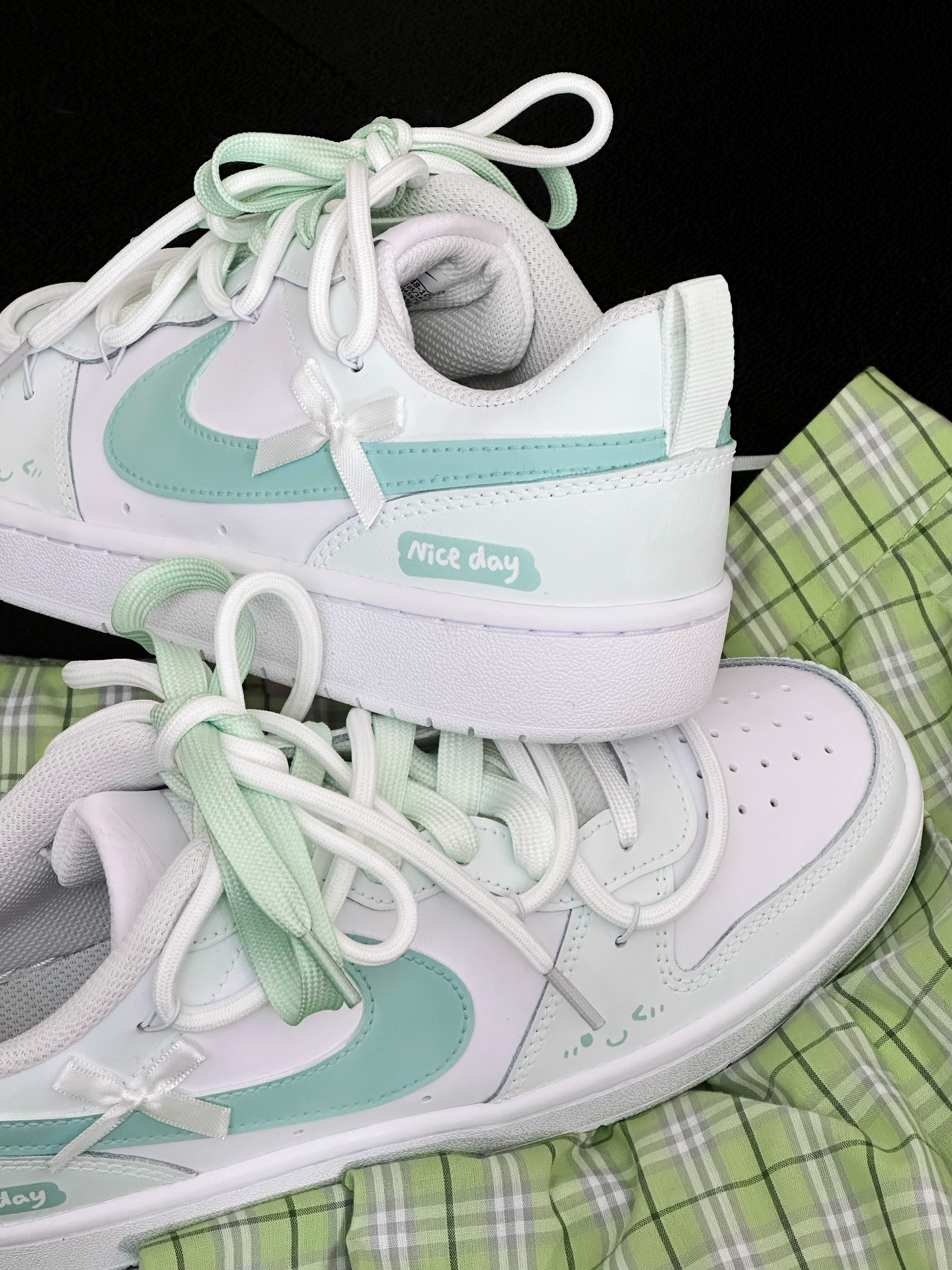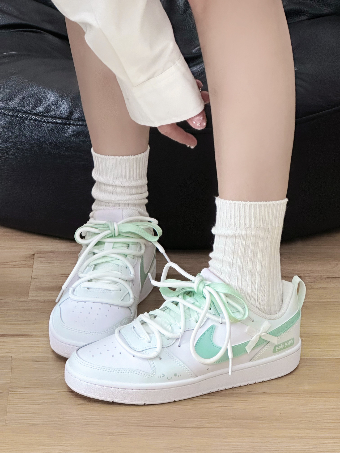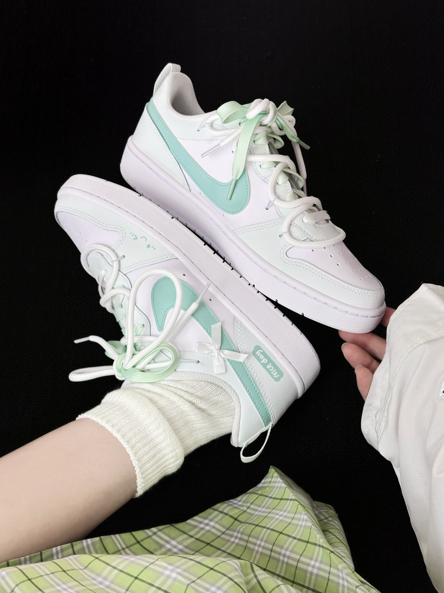 寻找到一双炒鸡清爽的nike court 渐变绿双鞋带搭配白绿鞋面 狠好看~ 奶呼呼的配色还叠加了少许蝴蝶结🎀 是一双青春又少女nike诶!建议按正码入 #秋冬鞋柜大焕新 #更新我的秋冬日鞋柜 #公主请收鞋 #绿色系鞋子 #白绿配色鞋子 #关于秋冬的买买买 #一双鞋打造秋冬氛围感