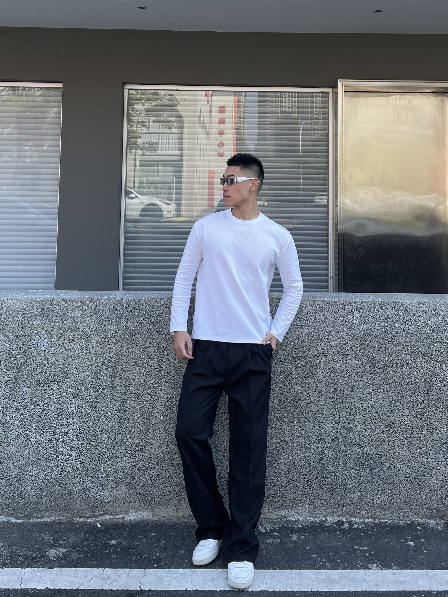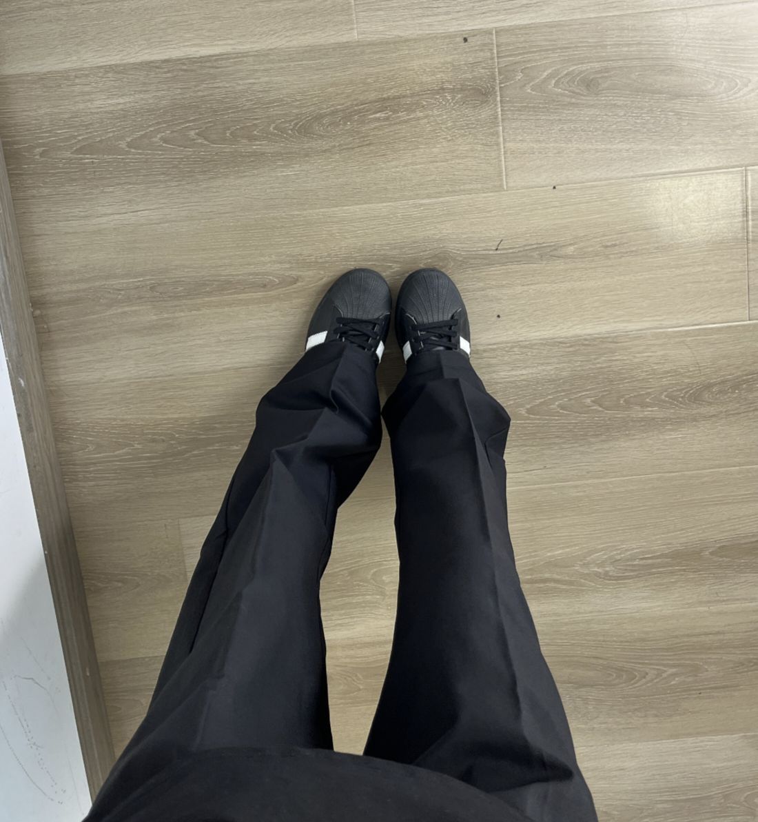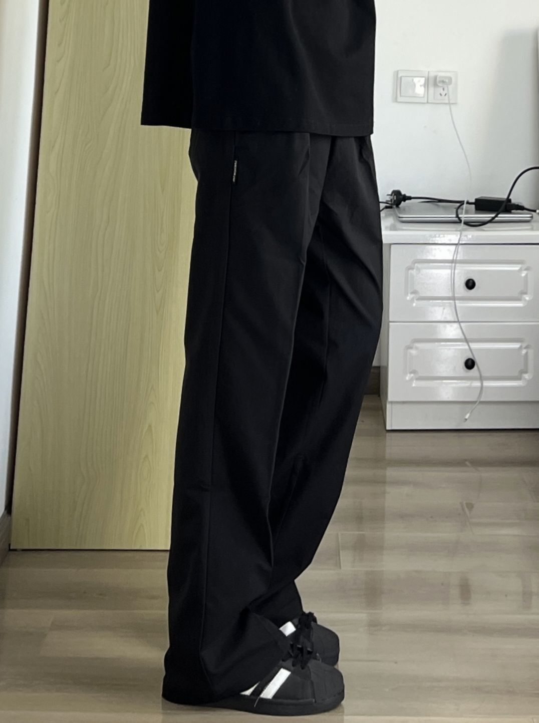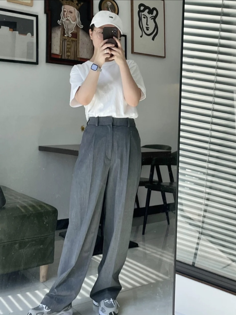 头一次尝试黑色西装裤耶 质感是真的好!软软的很舒服的感觉 垂感更不用说啦!!版型正 巨显腿穿 黑色穿上就干净清爽哪里还有班味儿啊心早八人都可以穿!!约会出去玩也很适合的 喜欢的兄弟可以冲!