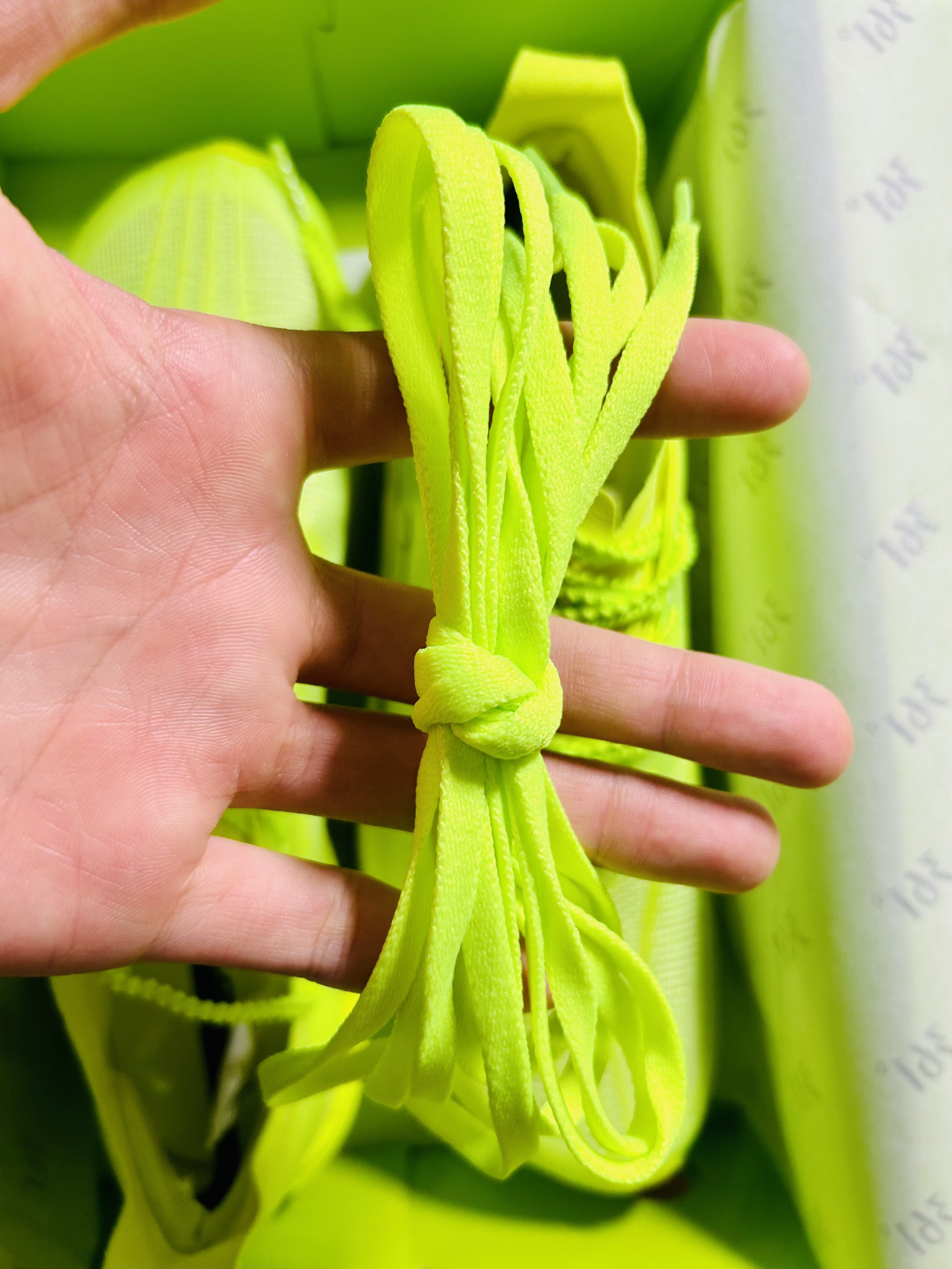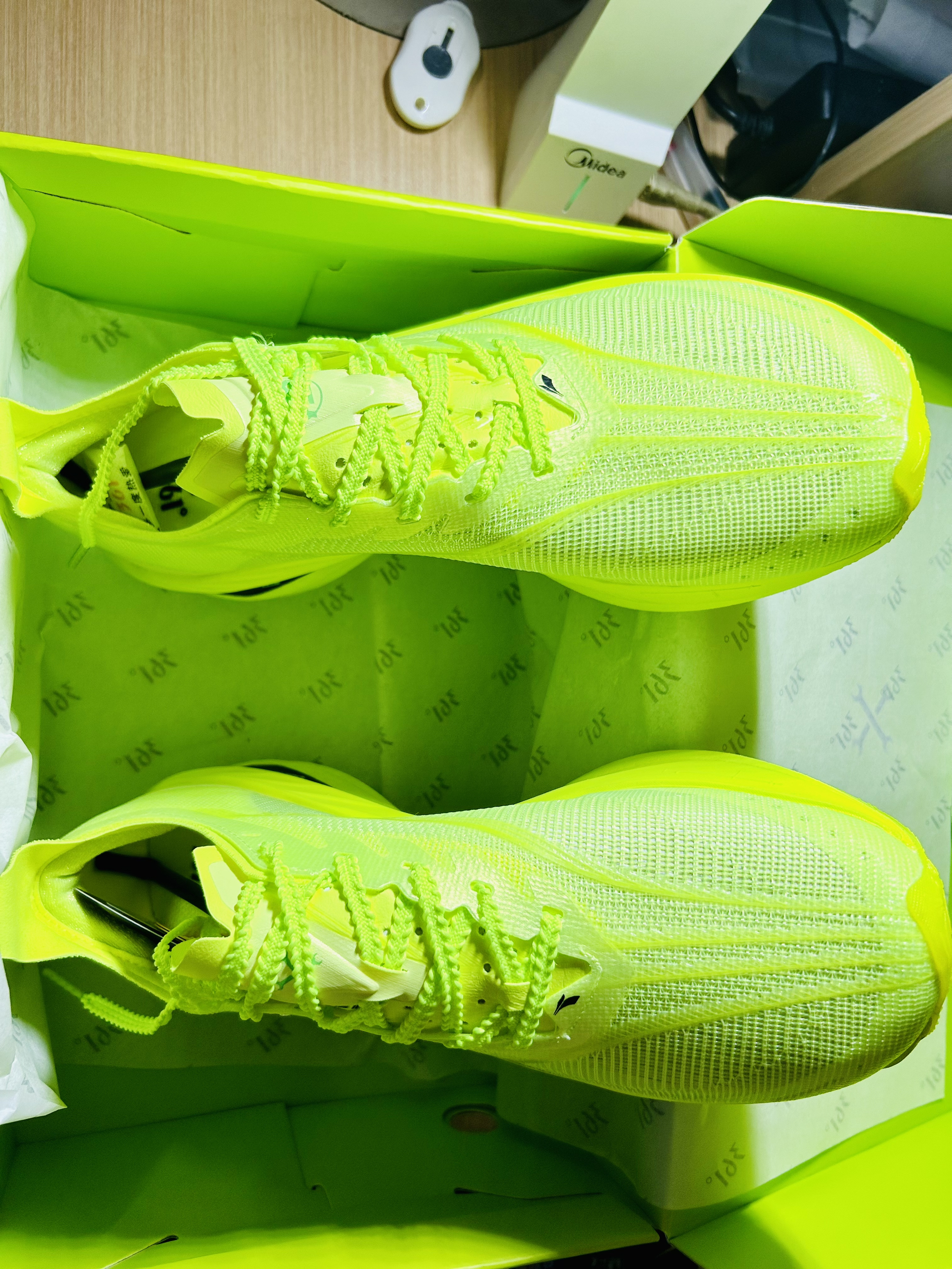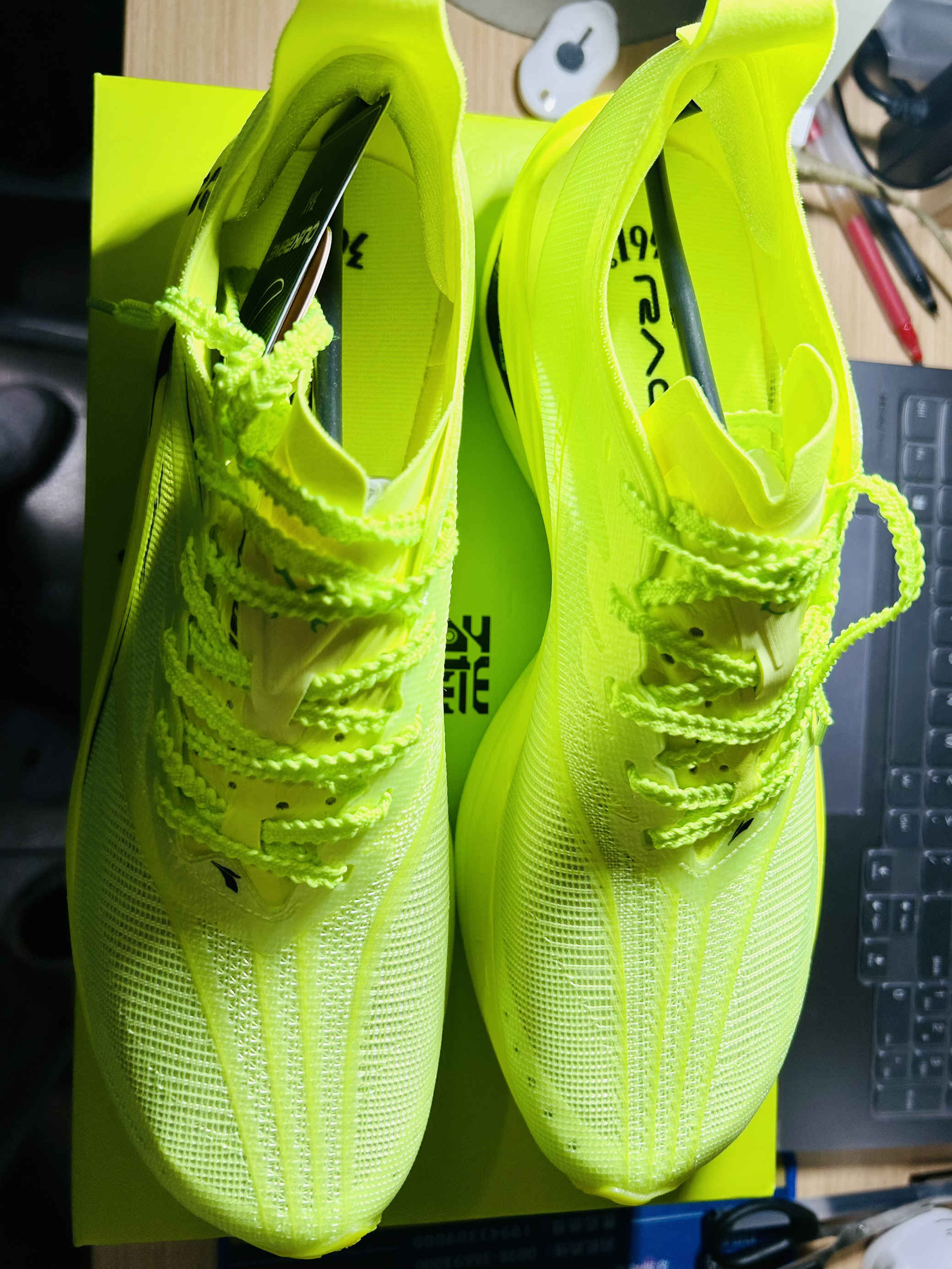 朋友们朋友们,今天分享的这款宝藏球鞋真的是继飞燃3之后的又一双非常不错的跑鞋、整体设计风格全部都是绿色的元素,真的是给人一种清新又温暖的气息。 打开鞋盒首先映入眼帘的是一个全绿色的鞋盒,上面显现了一个“碳”字,真的特别好看,打开鞋盒,一对满满绿色元素的鞋子呈现在眼前,以及非常贴心的两对鞋带让你随意切换!这是鞋整体绿色非常吸晴啊,无论是在跑步、出街、日常穿搭都是非常显眼的感觉!这个绿色真的是太有味道...